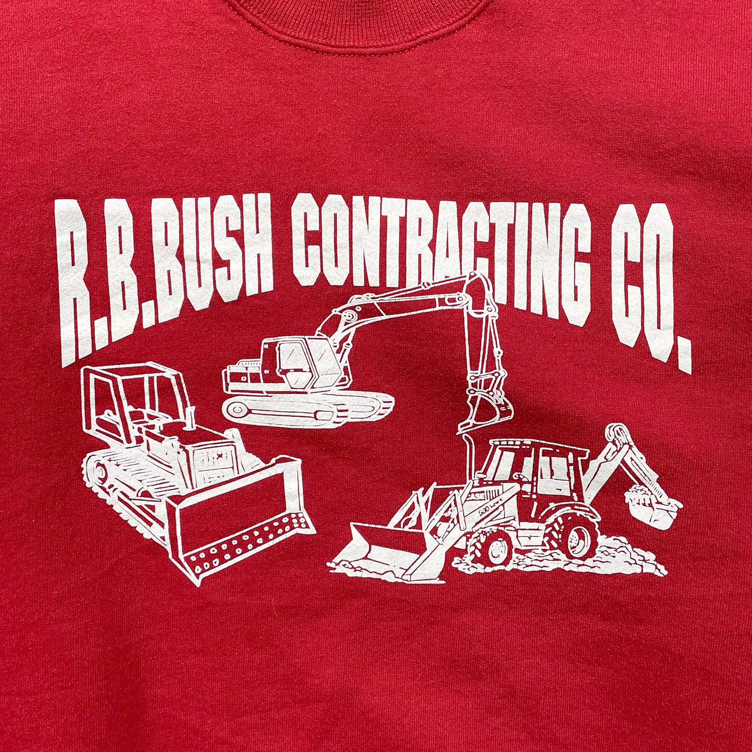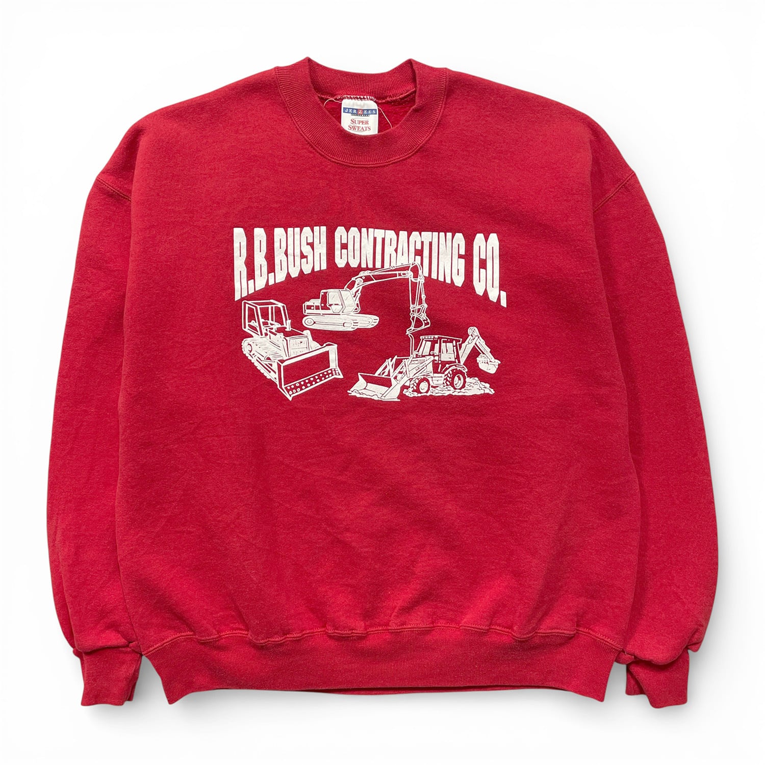 USA 古着 JERZEES 企業系 ヘビーウェイト スウェット トレーナー 重機 ブルドーザー ショベルカー プリント レッド メンズXL BD3517