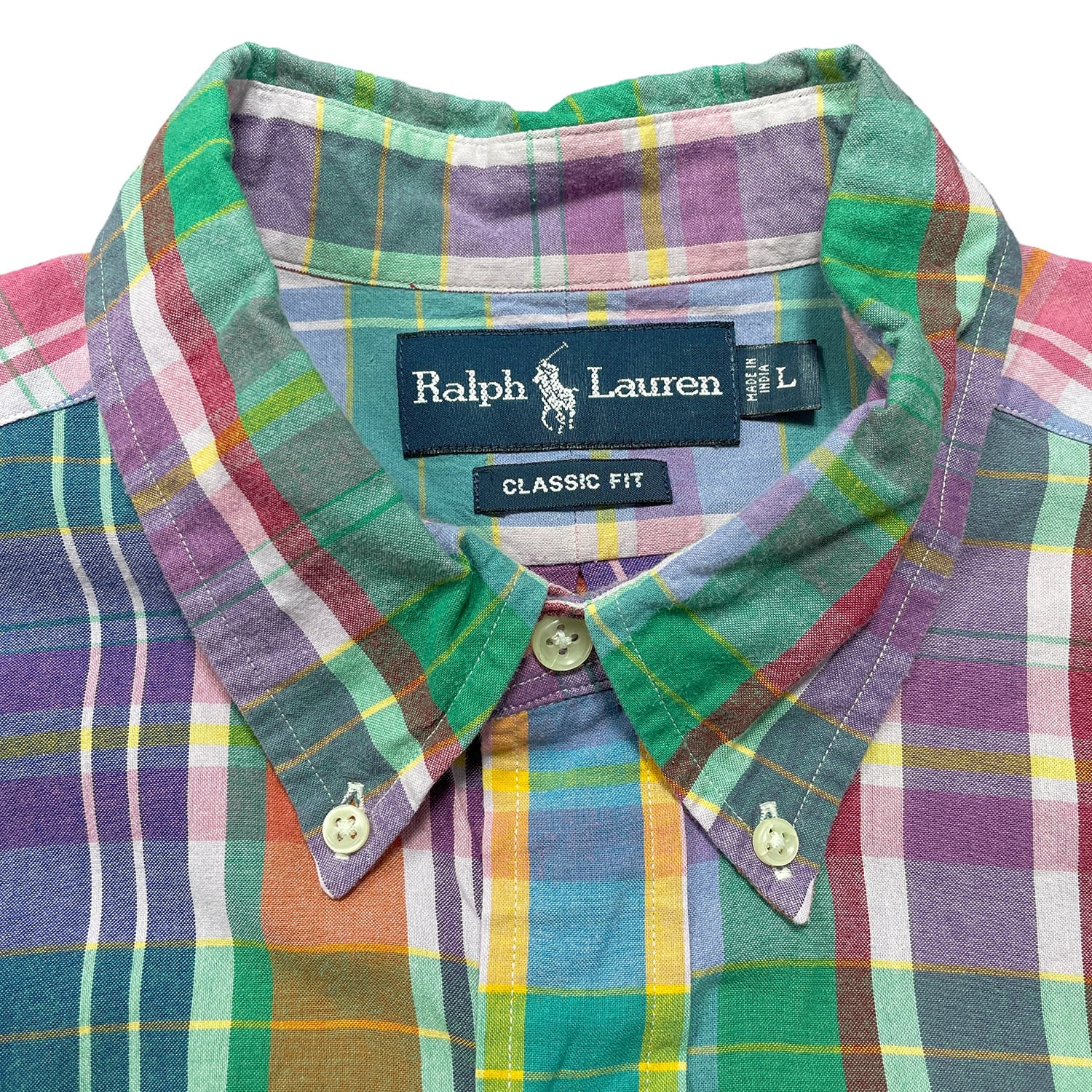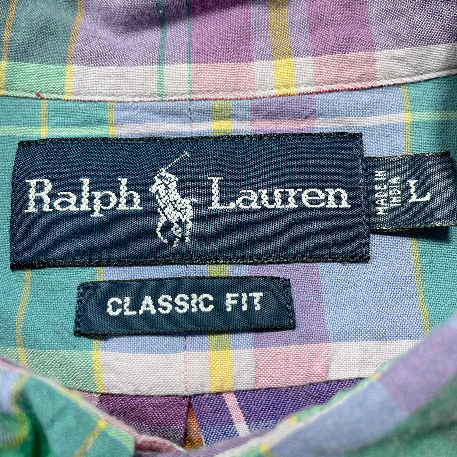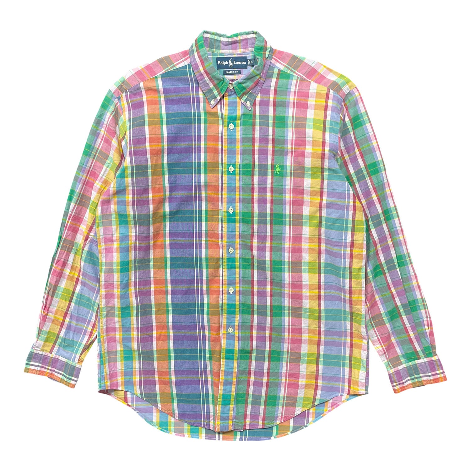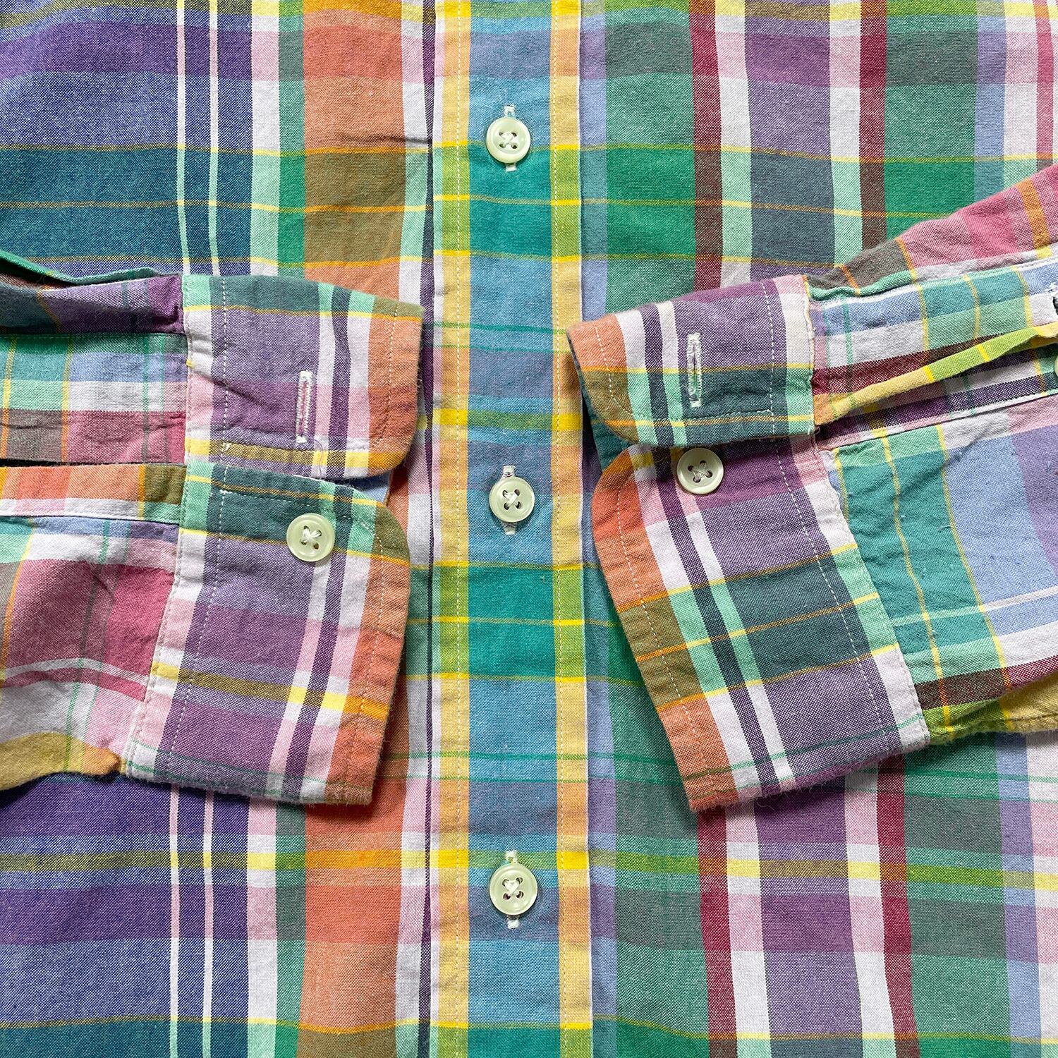 USA 古着 Ralph Lauren ラルフローレン コットン マドラスチェック 長袖シャツ BDシャツ メンズL カジュアルシャツ BG1359