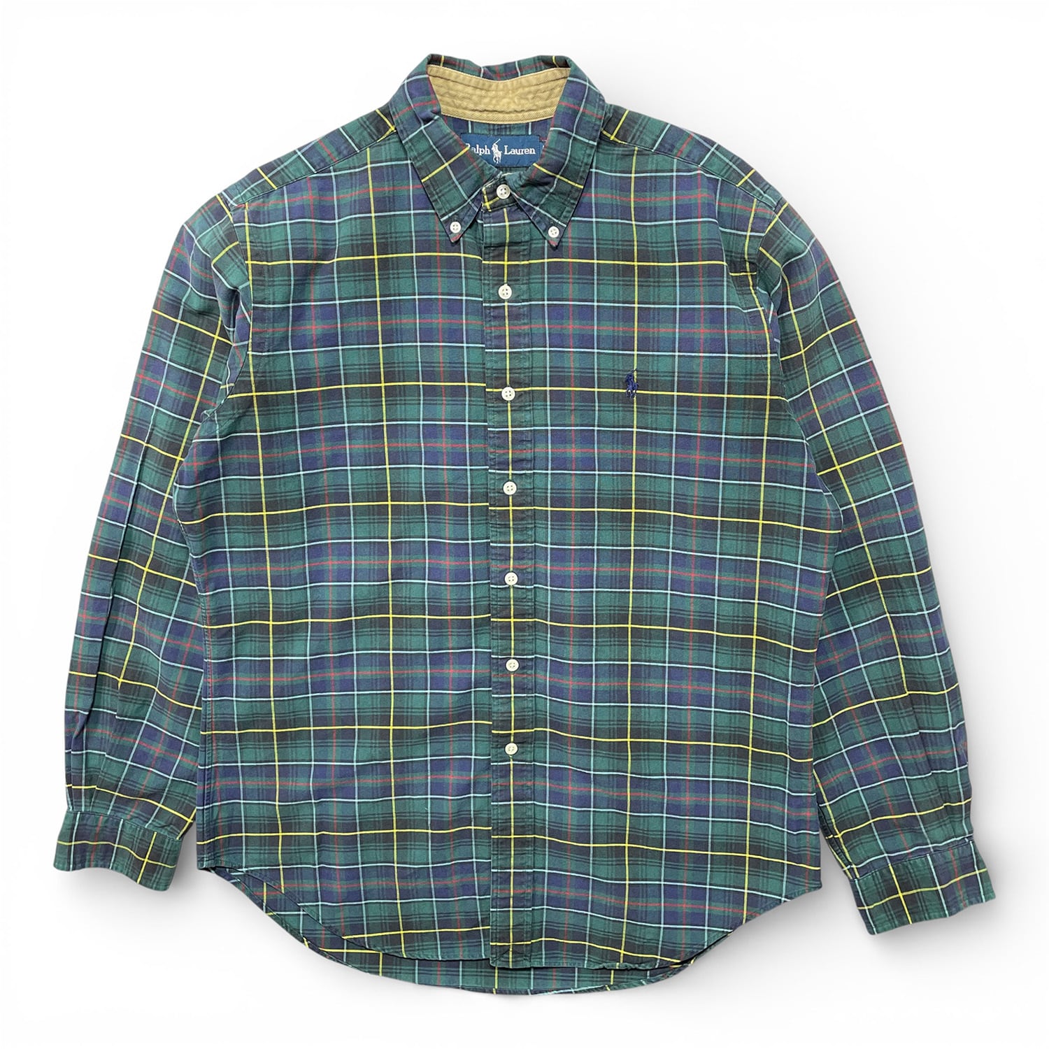 USA 古着 Ralph Lauren ラルフローレン コットン タータンチェック柄 長袖シャツ メンズM カジュアルシャツ BG1365