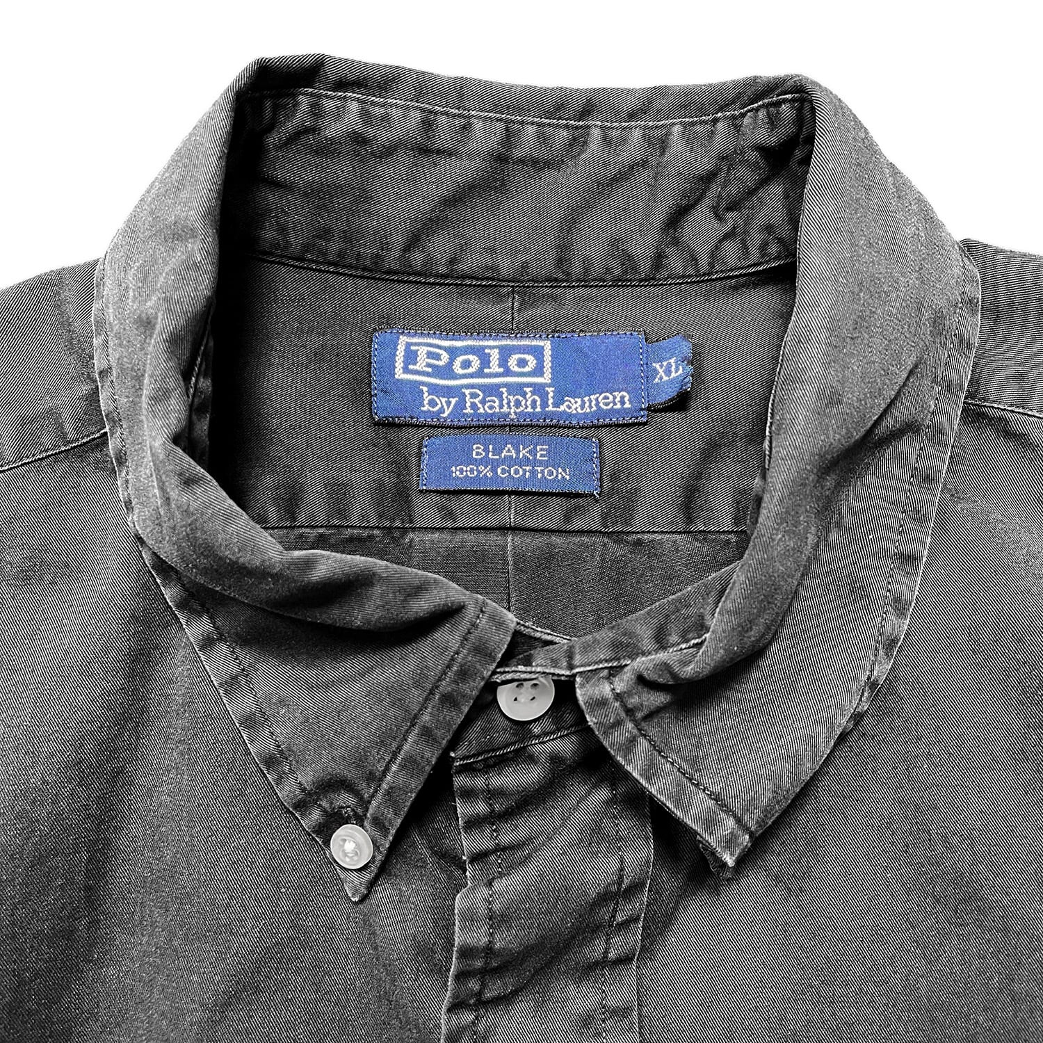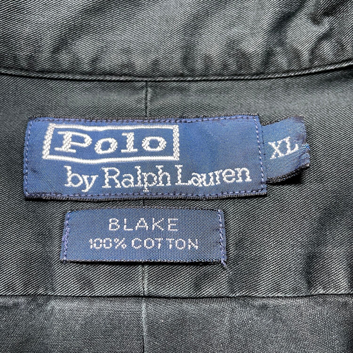 USA 古着 Polo by Ralph Lauren BLAKE ポロ バイ ラルフローレン コットン 長袖シャツ ブラック 黒 無地 メンズXL カジュアルシャツ BG1366