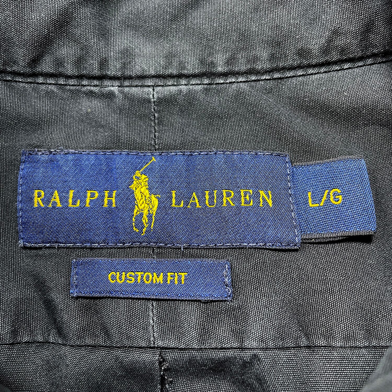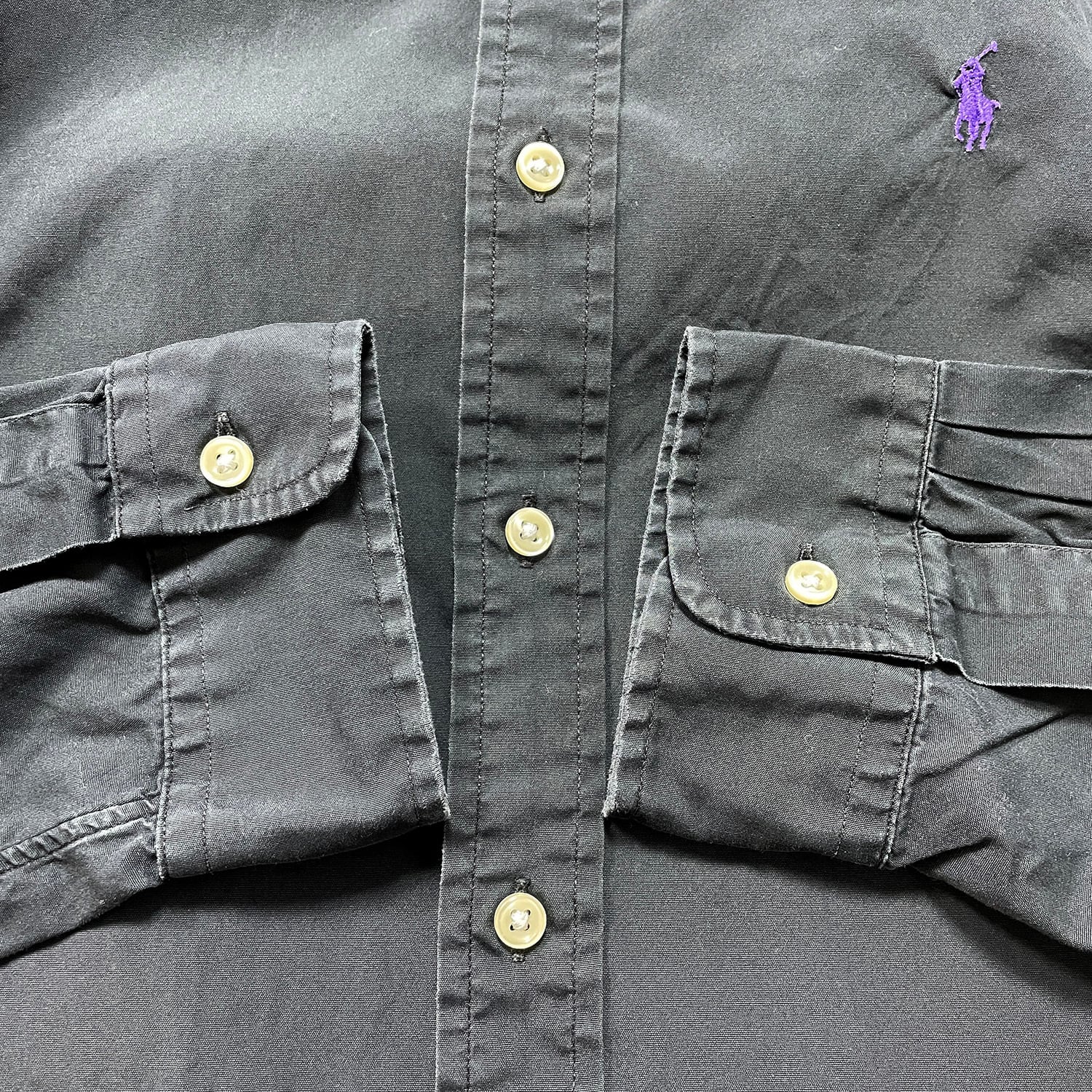 USA 古着 RALPH LAUREN ラルフローレン コットン 長袖シャツ ブラック 黒 無地 メンズL カジュアルシャツ BG1367