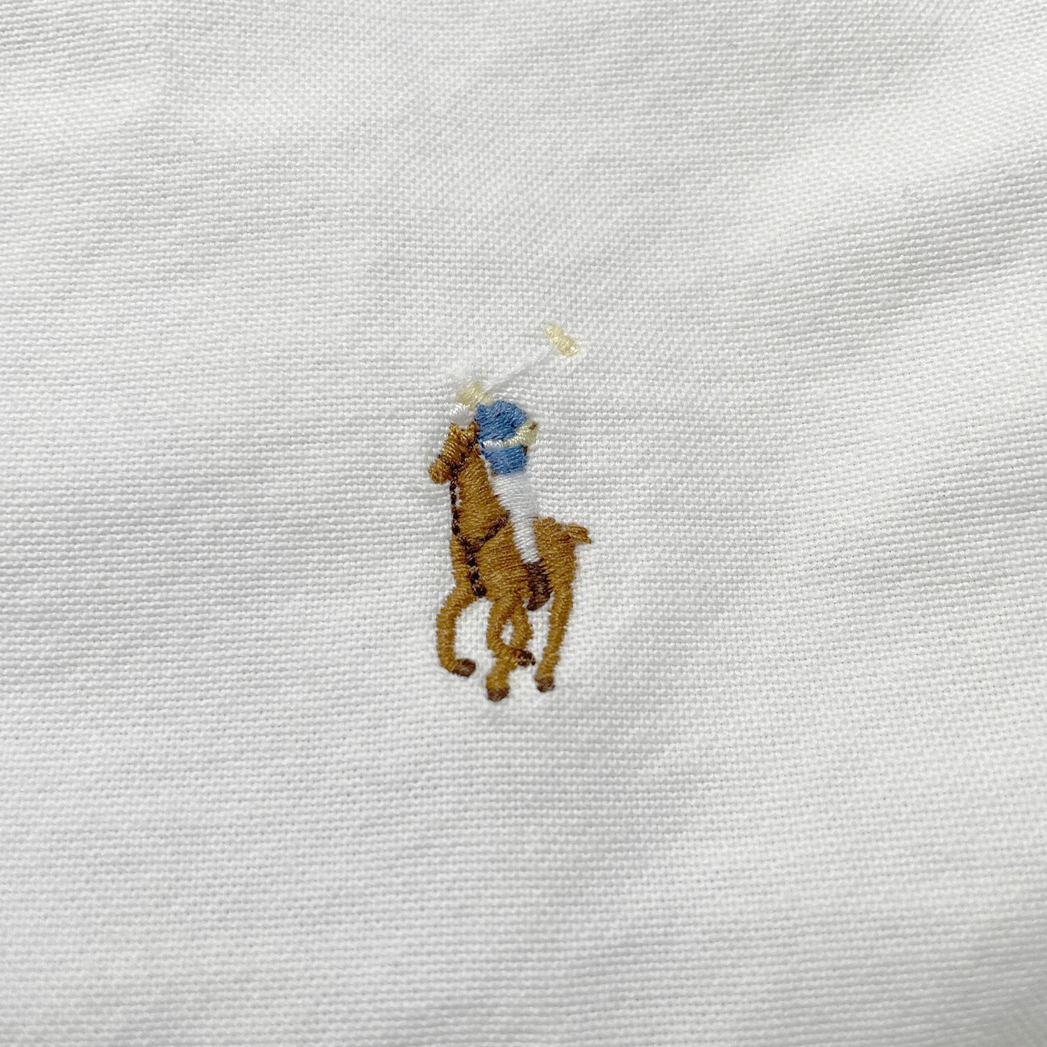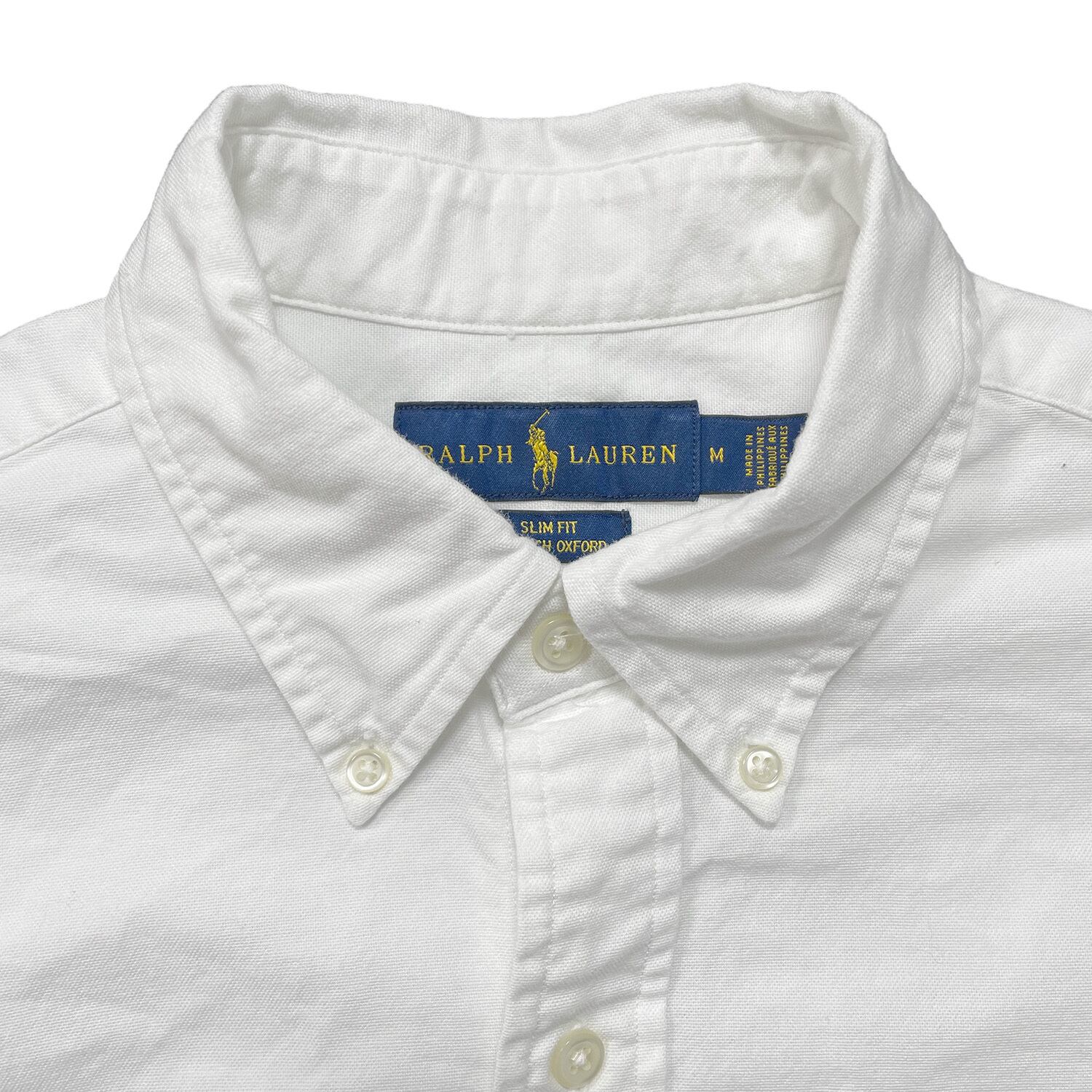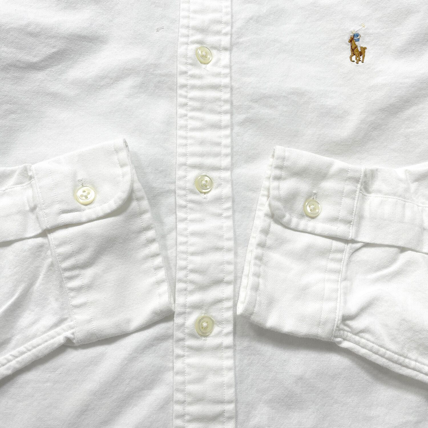 USA 古着 RALPH LAUREN ラルフローレン オックスフォード コットン 長袖シャツ ホワイト 白シャツ メンズM カジュアルシャツ BG1374