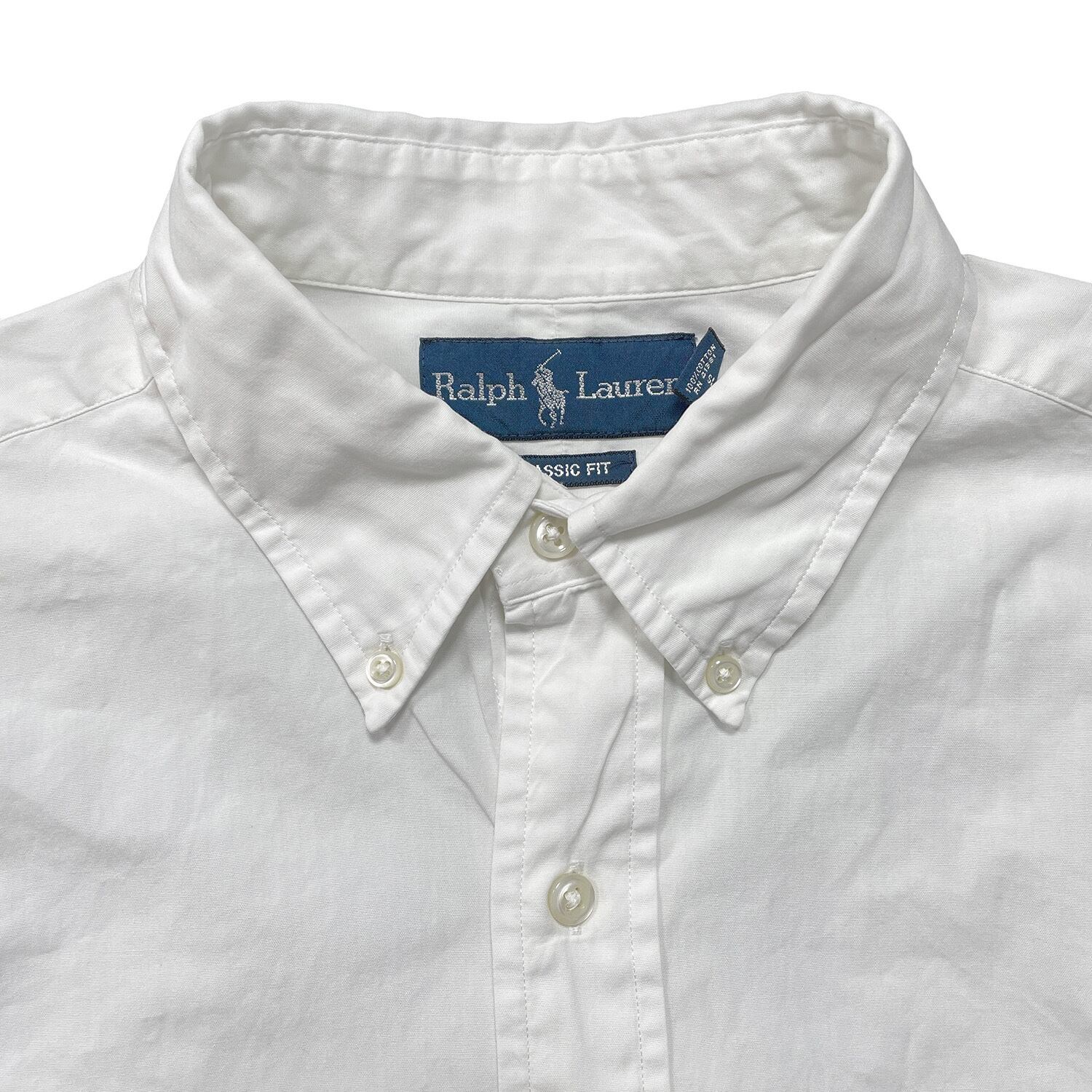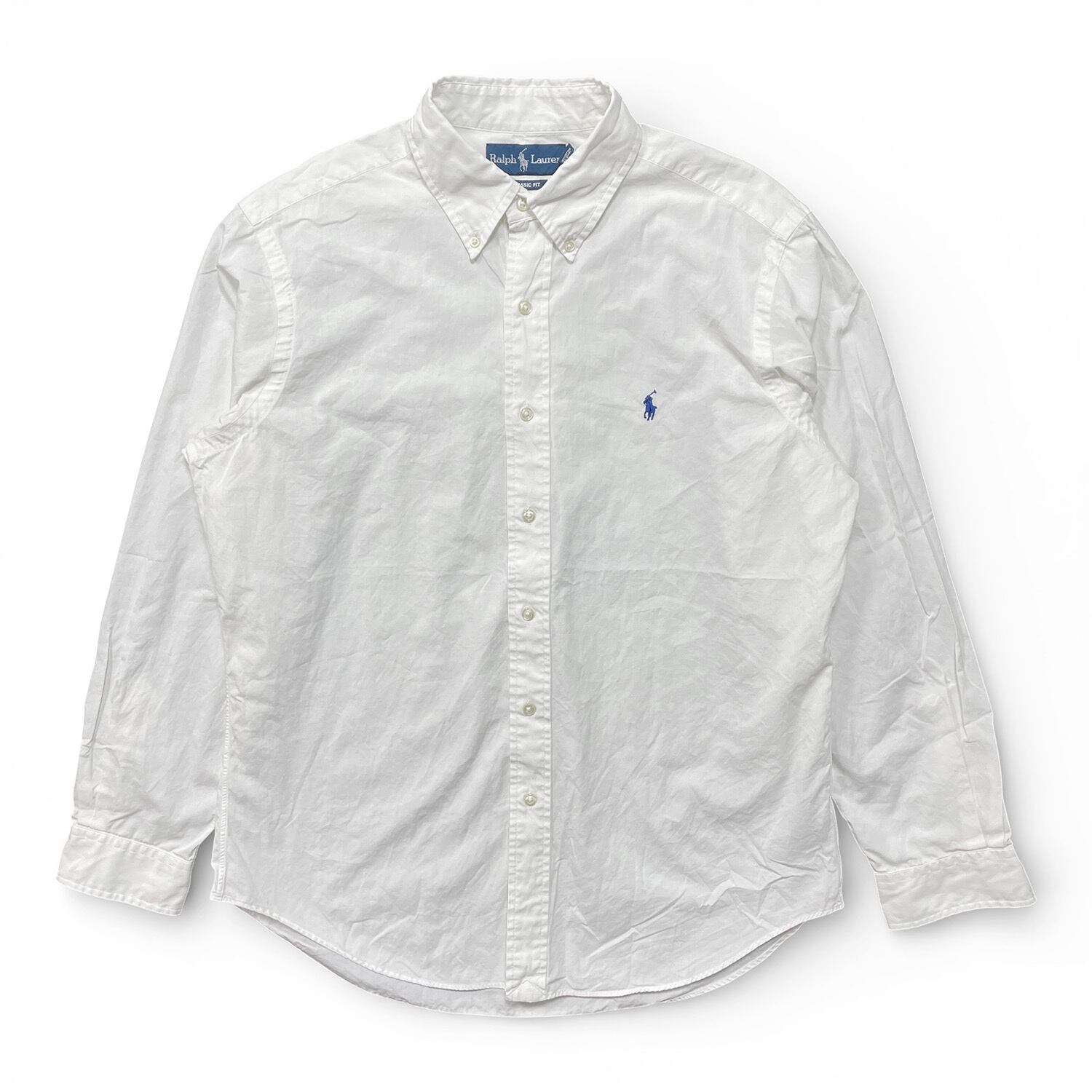 USA 古着 Ralph Lauren ラルフローレン コットン 長袖シャツ ホワイト 白シャツ メンズM カジュアルシャツ BG1376