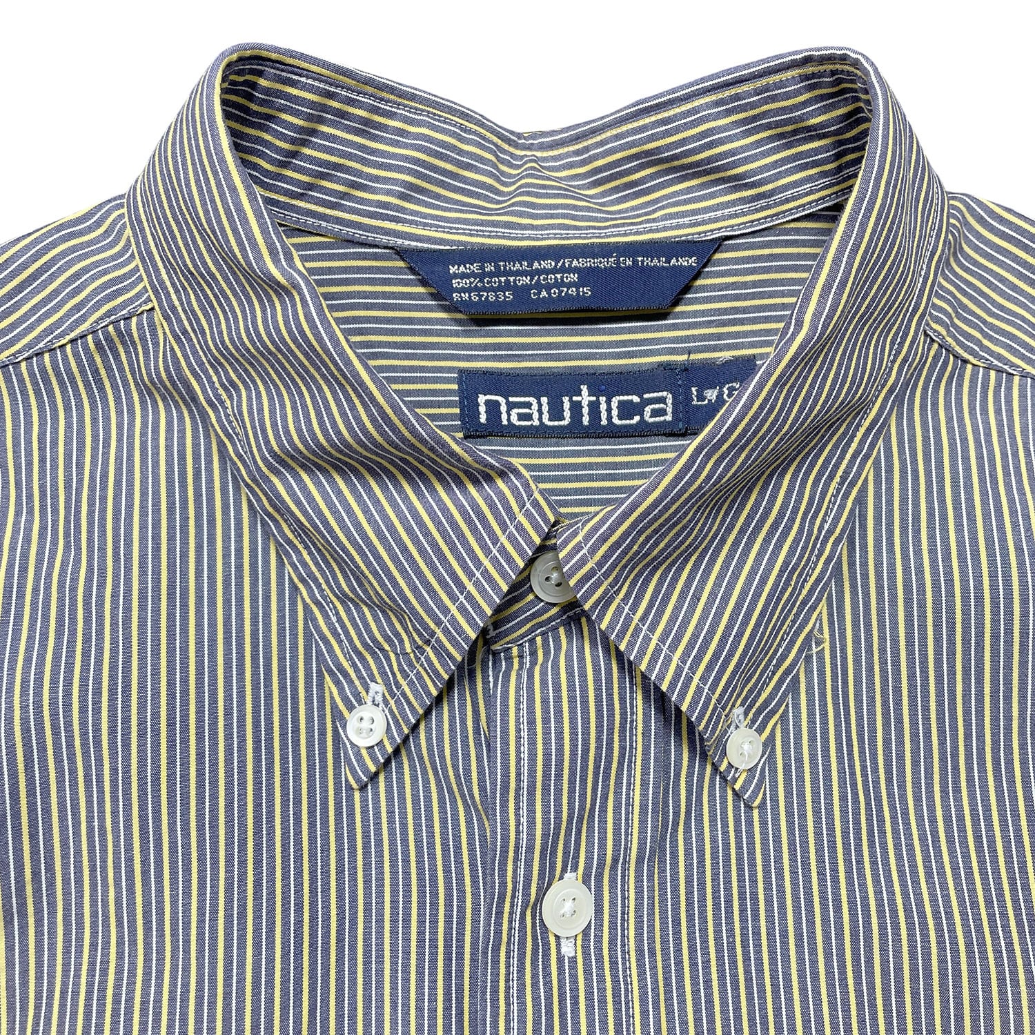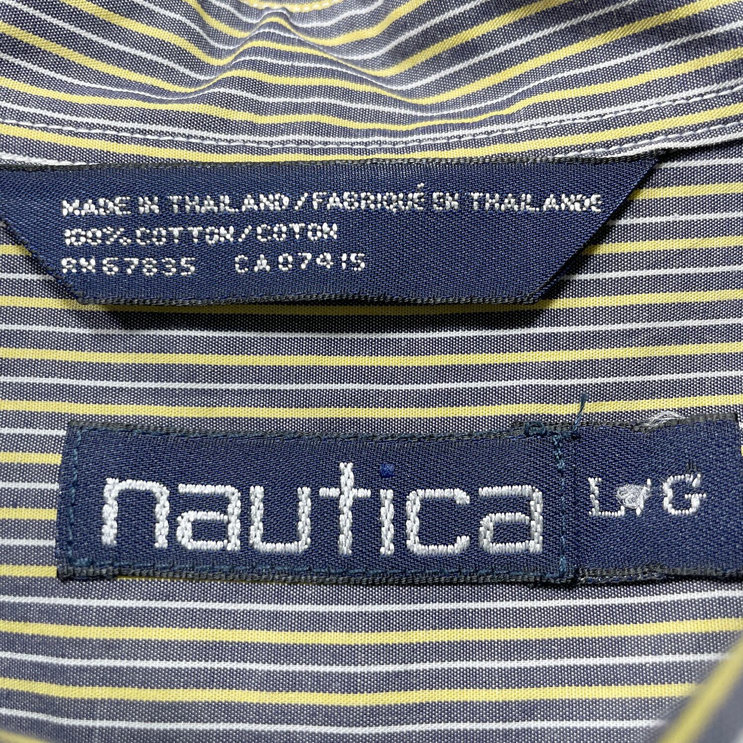 USA 古着 90S nautica ノーティカ ヴィンテージ コットン ストライプ 長袖シャツ メンズL セーリング 小文字タグ カジュアルシャツ BG1378
