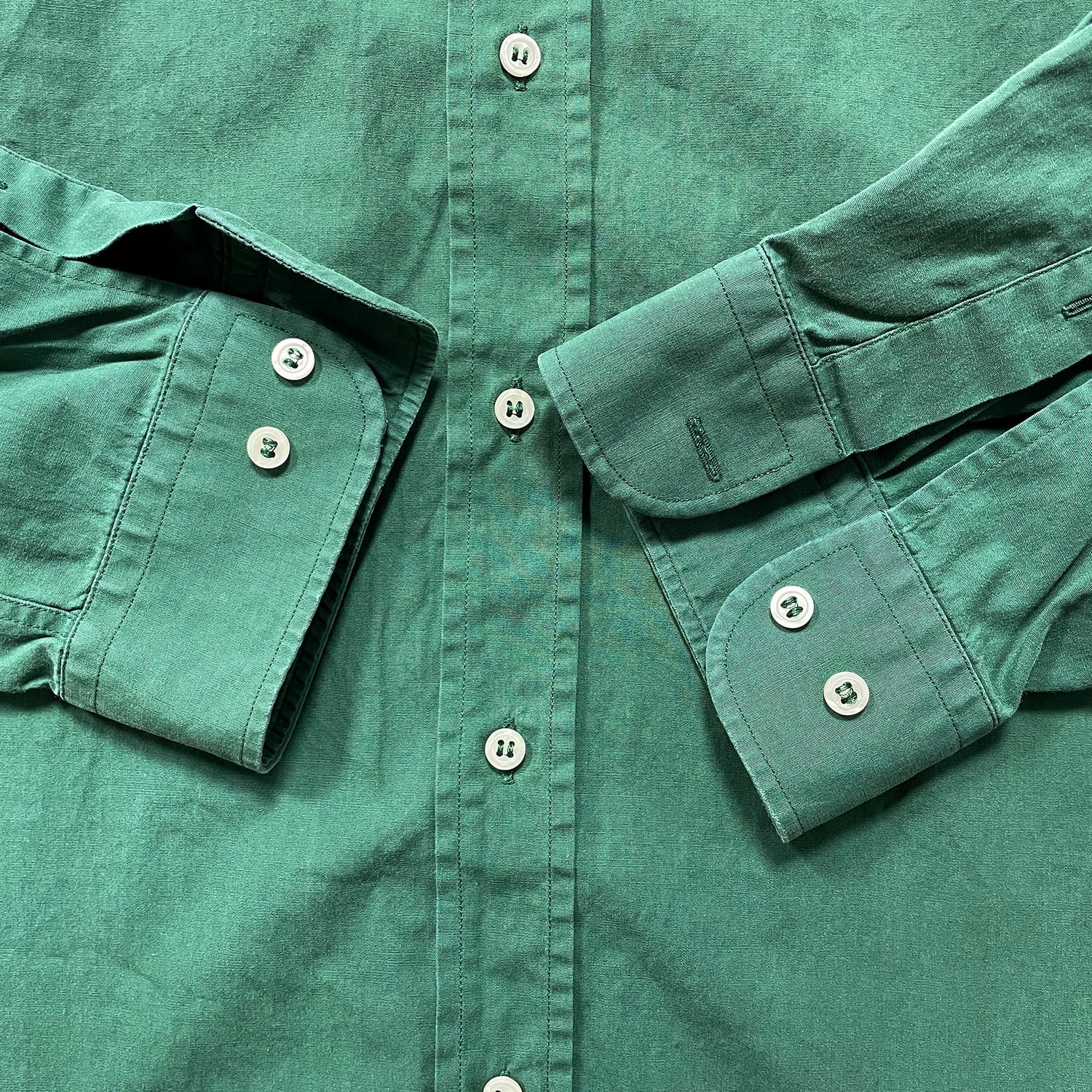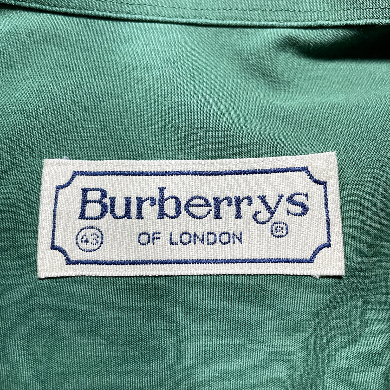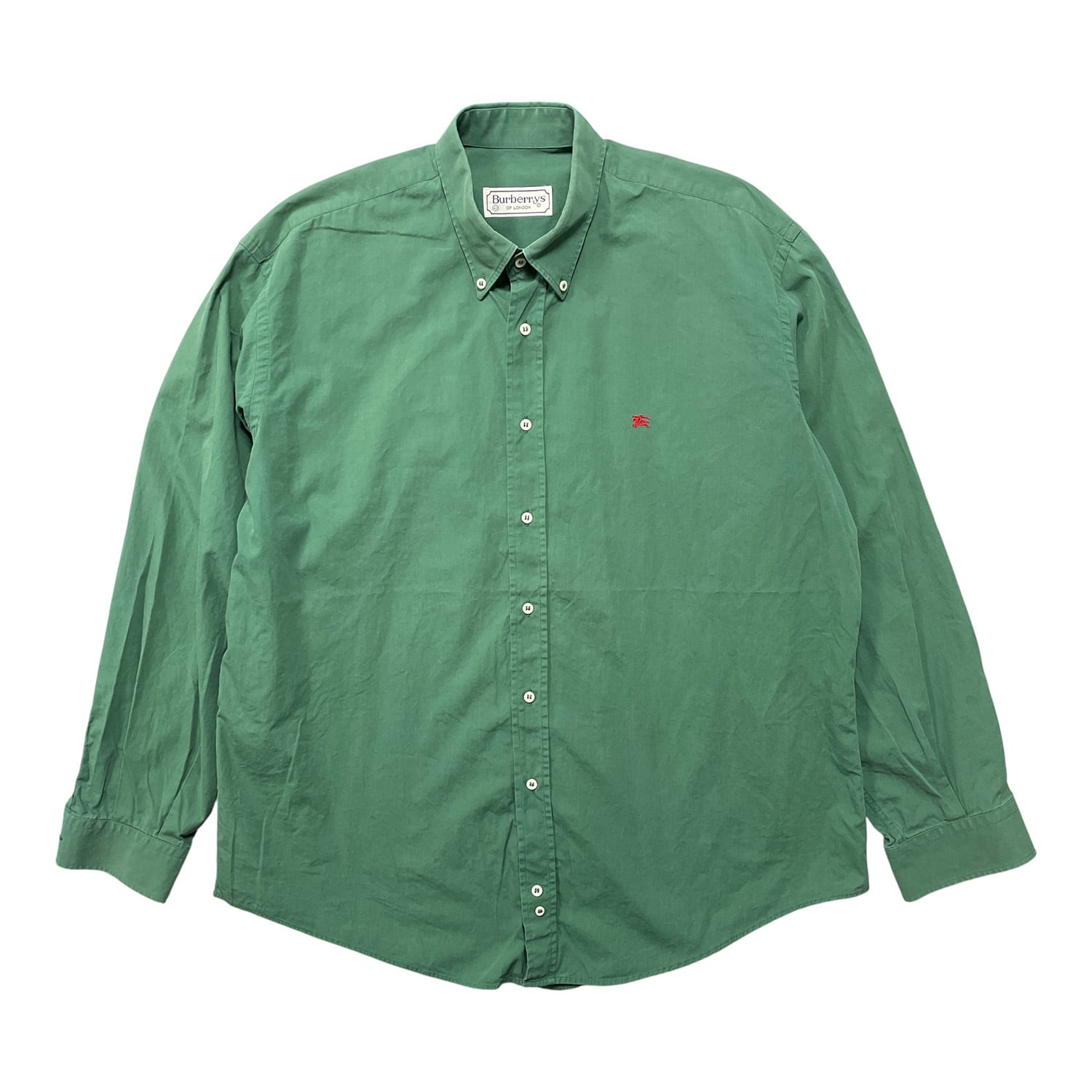 USA 古着 90S Burberrys OF LONDON バーバリーズ ロンドン コットン 長袖シャツ メンズL/XL相当 グリーン 緑色 無地 ヴィンテージ BG1379