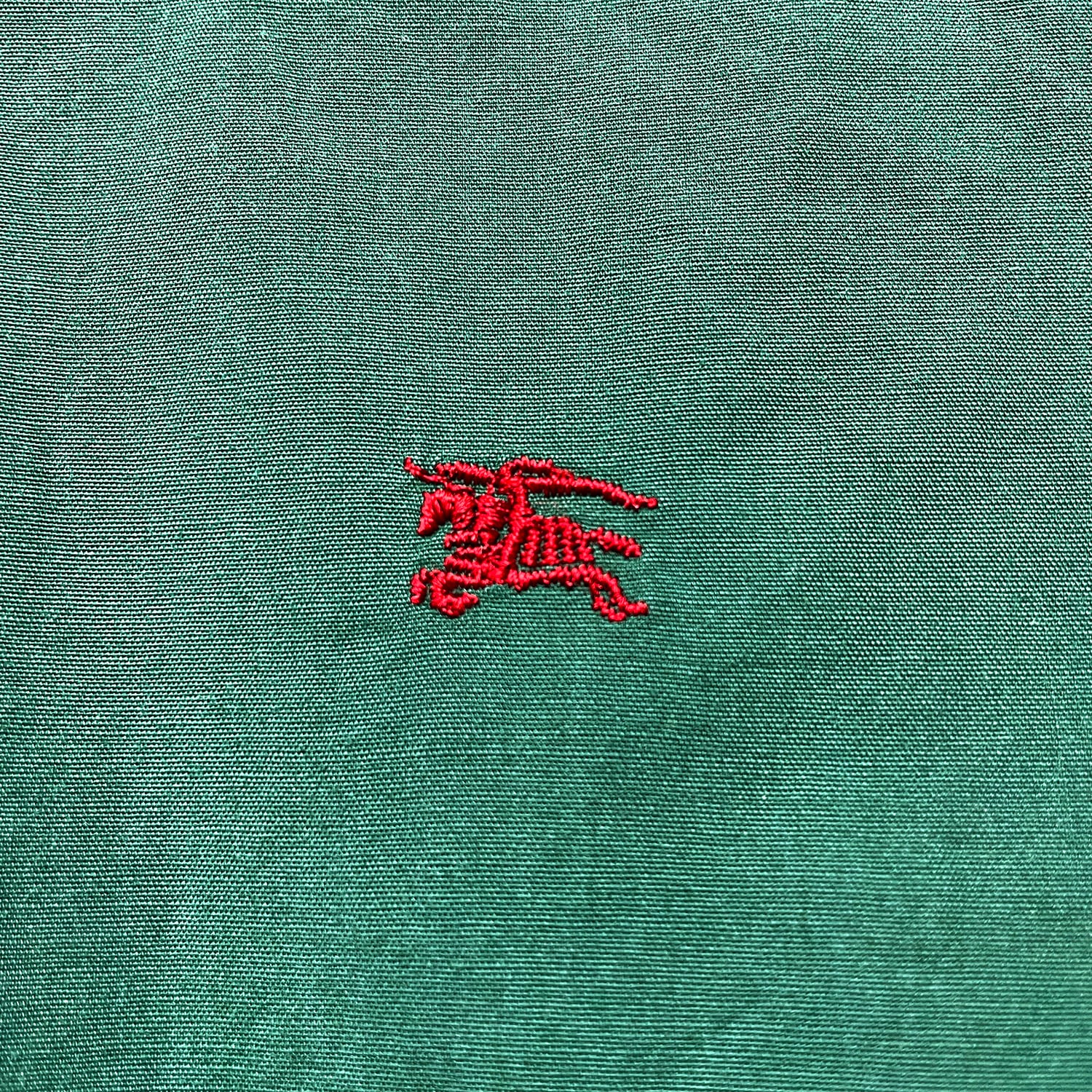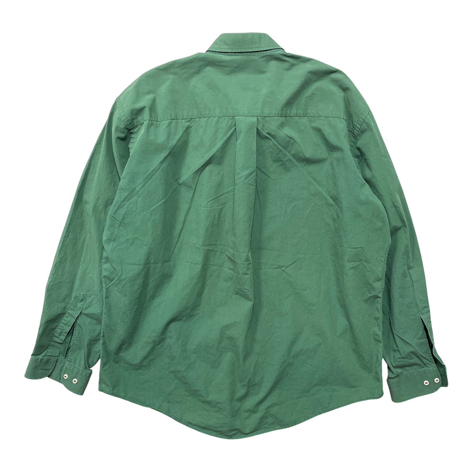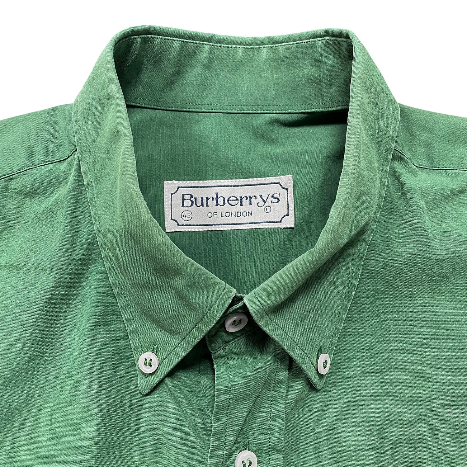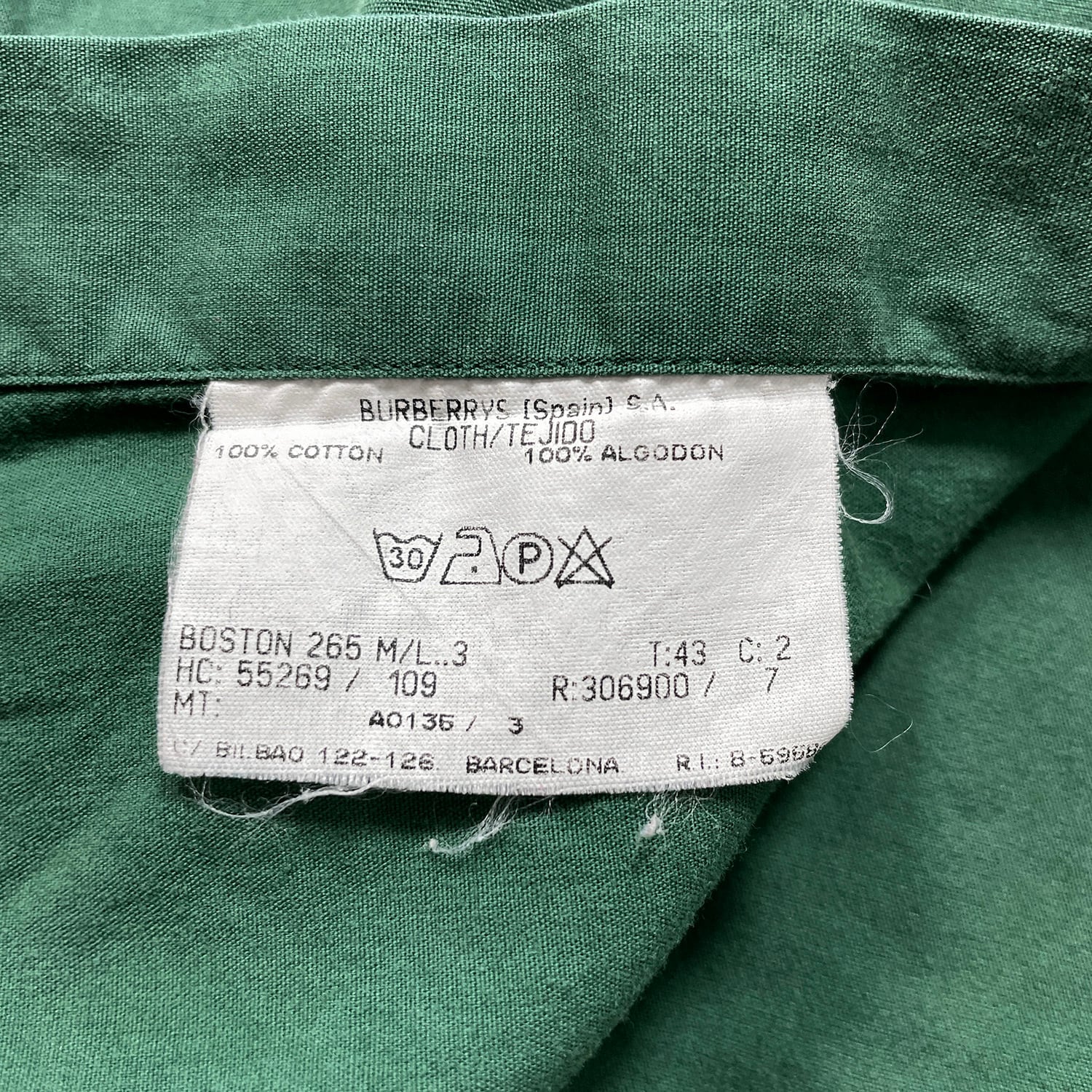 USA 古着 90S Burberrys OF LONDON バーバリーズ ロンドン コットン 長袖シャツ メンズL/XL相当 グリーン 緑色 無地 ヴィンテージ BG1379