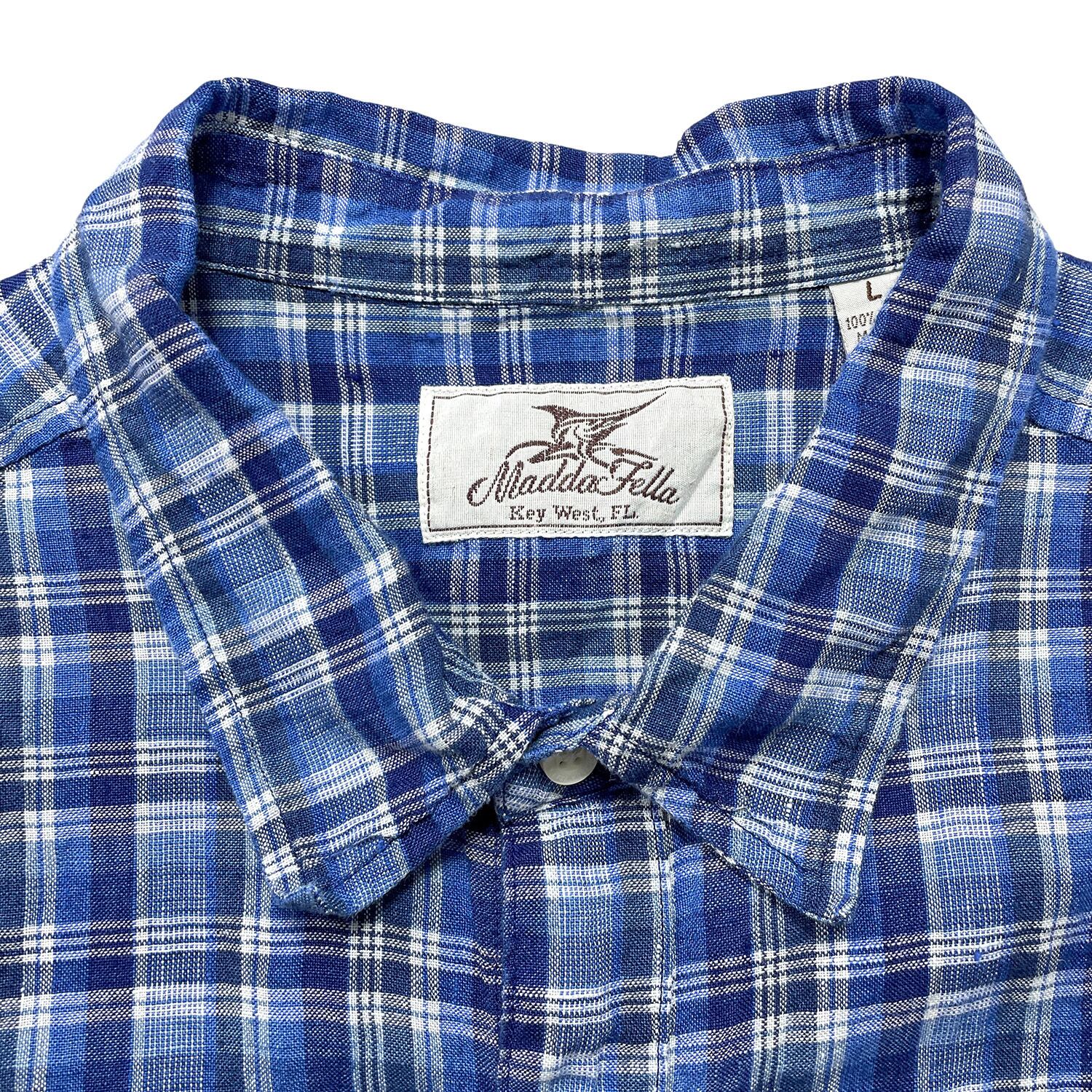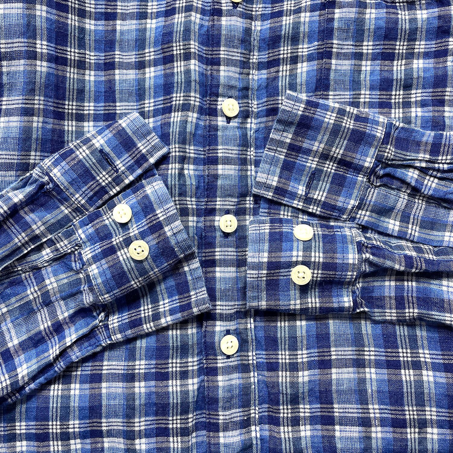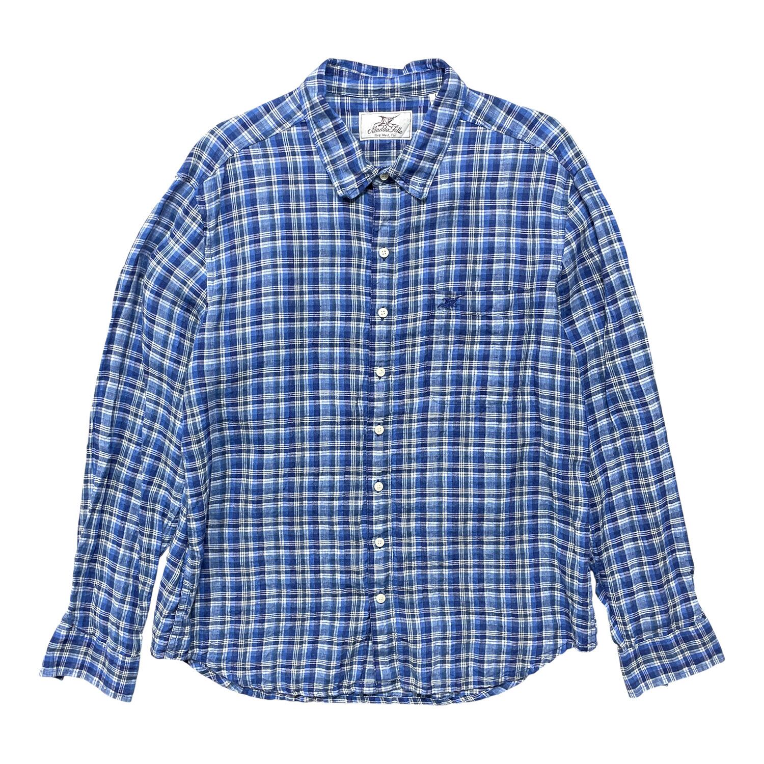 USA 古着 Madda Fella マッダフェラ リネン チェック柄 長袖シャツ メンズL ブルー カジュアルシャツ BG1380