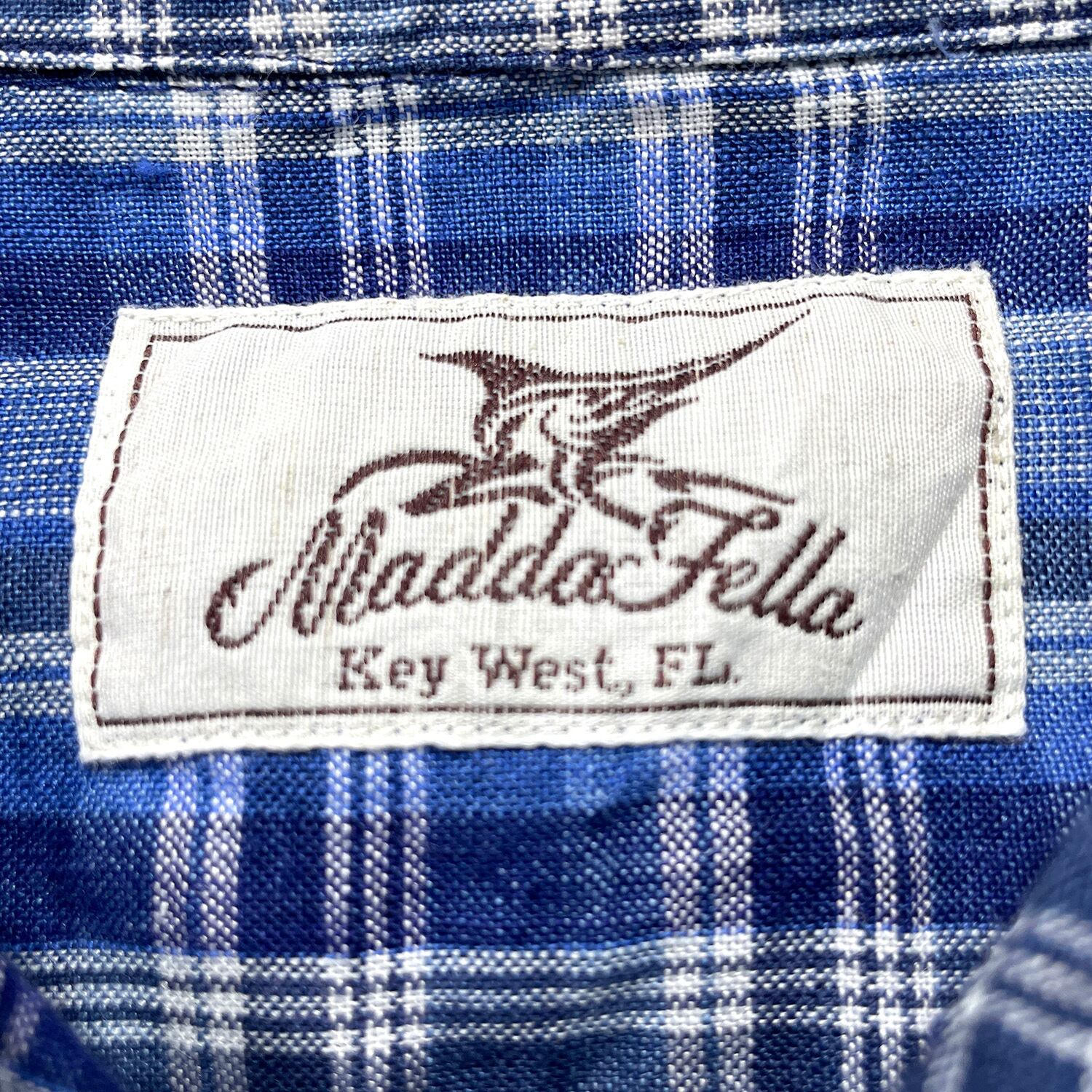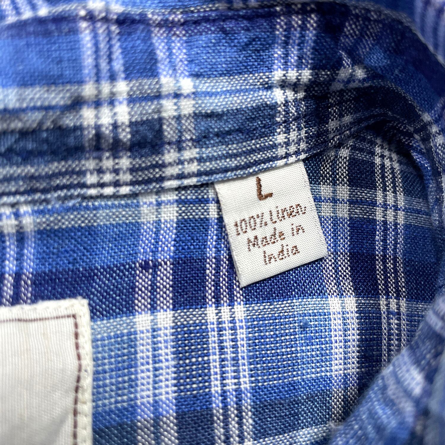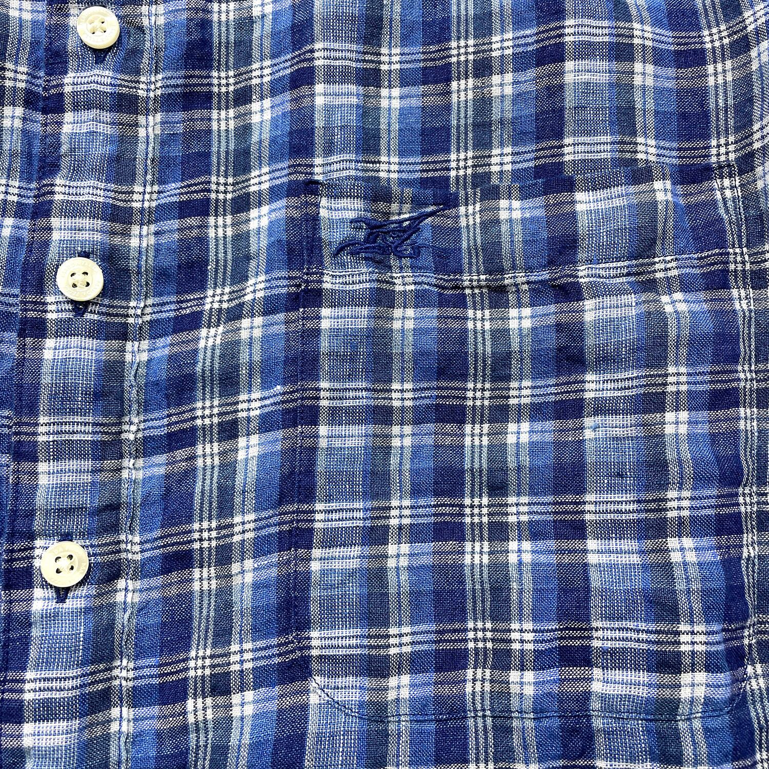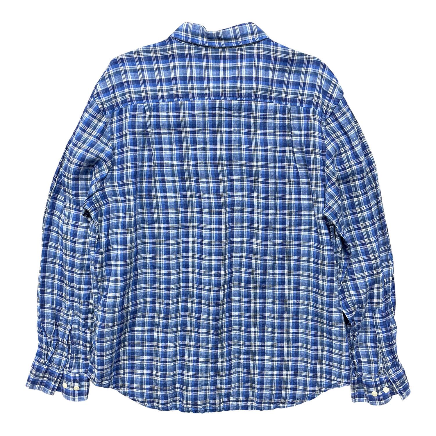 USA 古着 Madda Fella マッダフェラ リネン チェック柄 長袖シャツ メンズL ブルー カジュアルシャツ BG1380