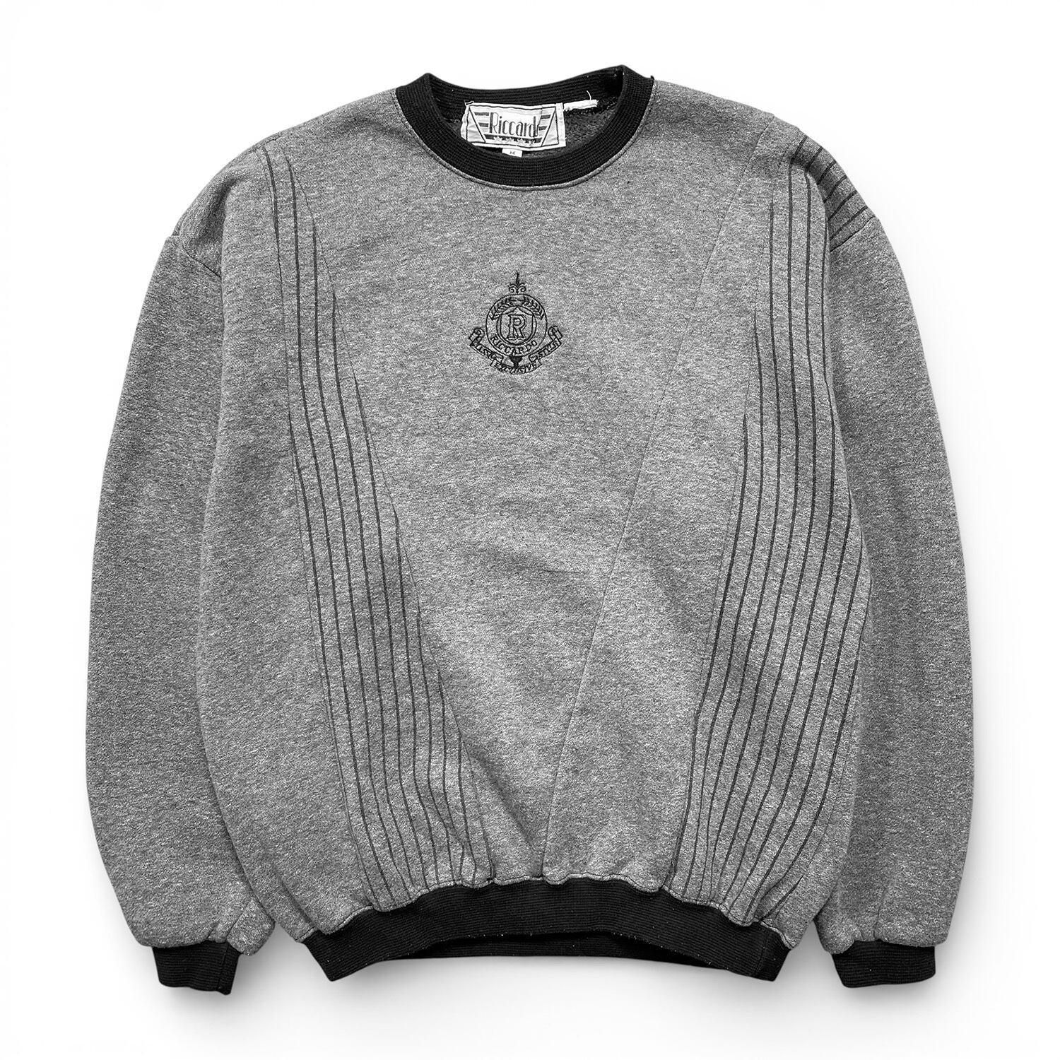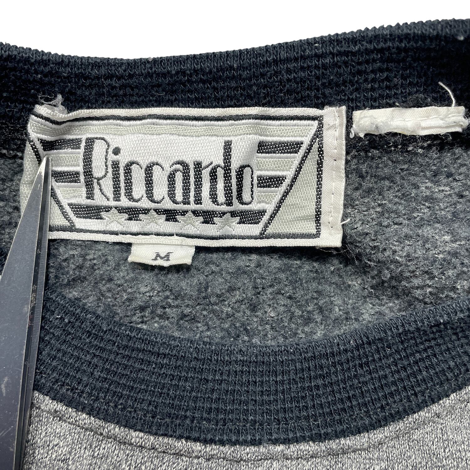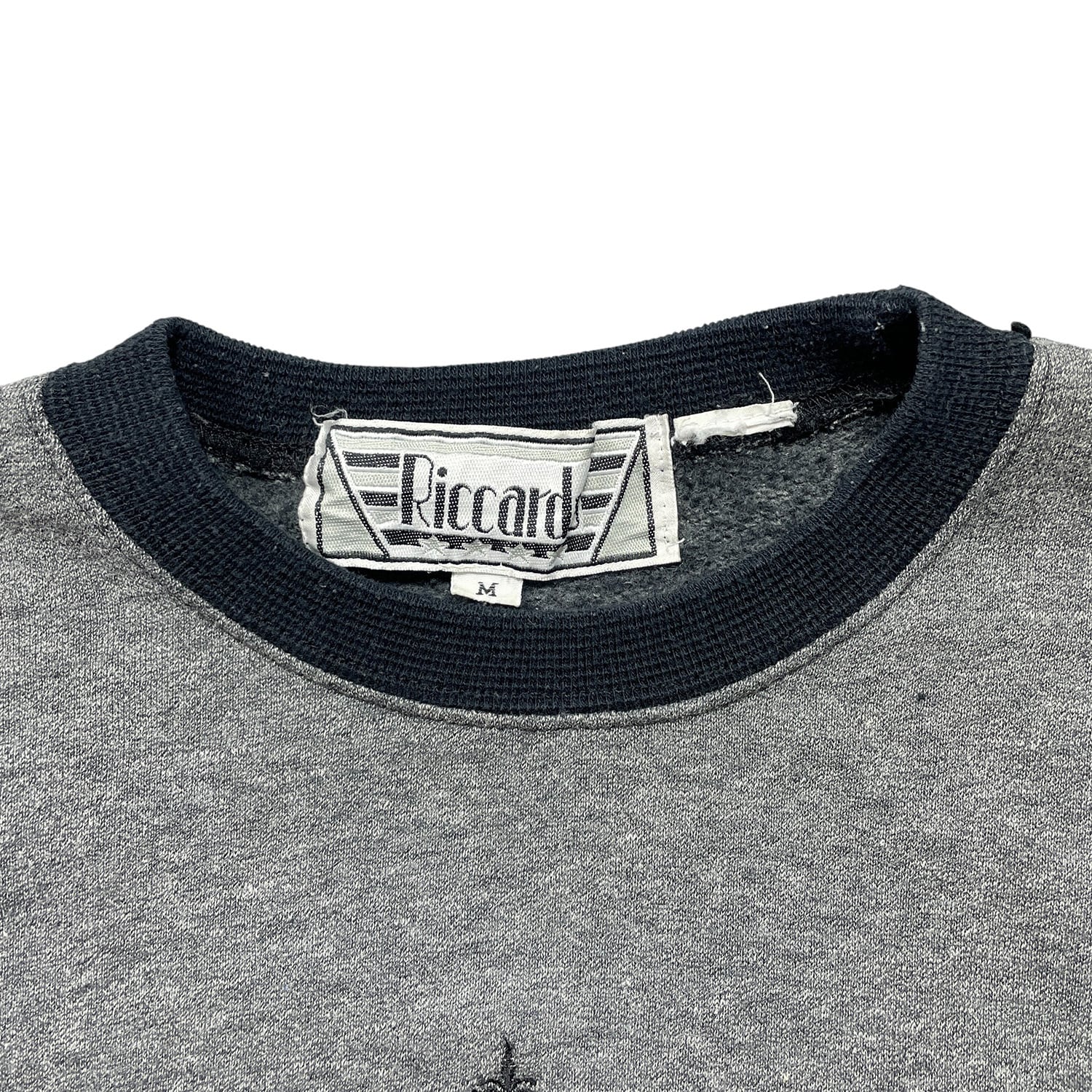 USA 古着 90S Riccardo クルーネック スウェット トレーナー プリント 切替 チャコール メンズM BD3523