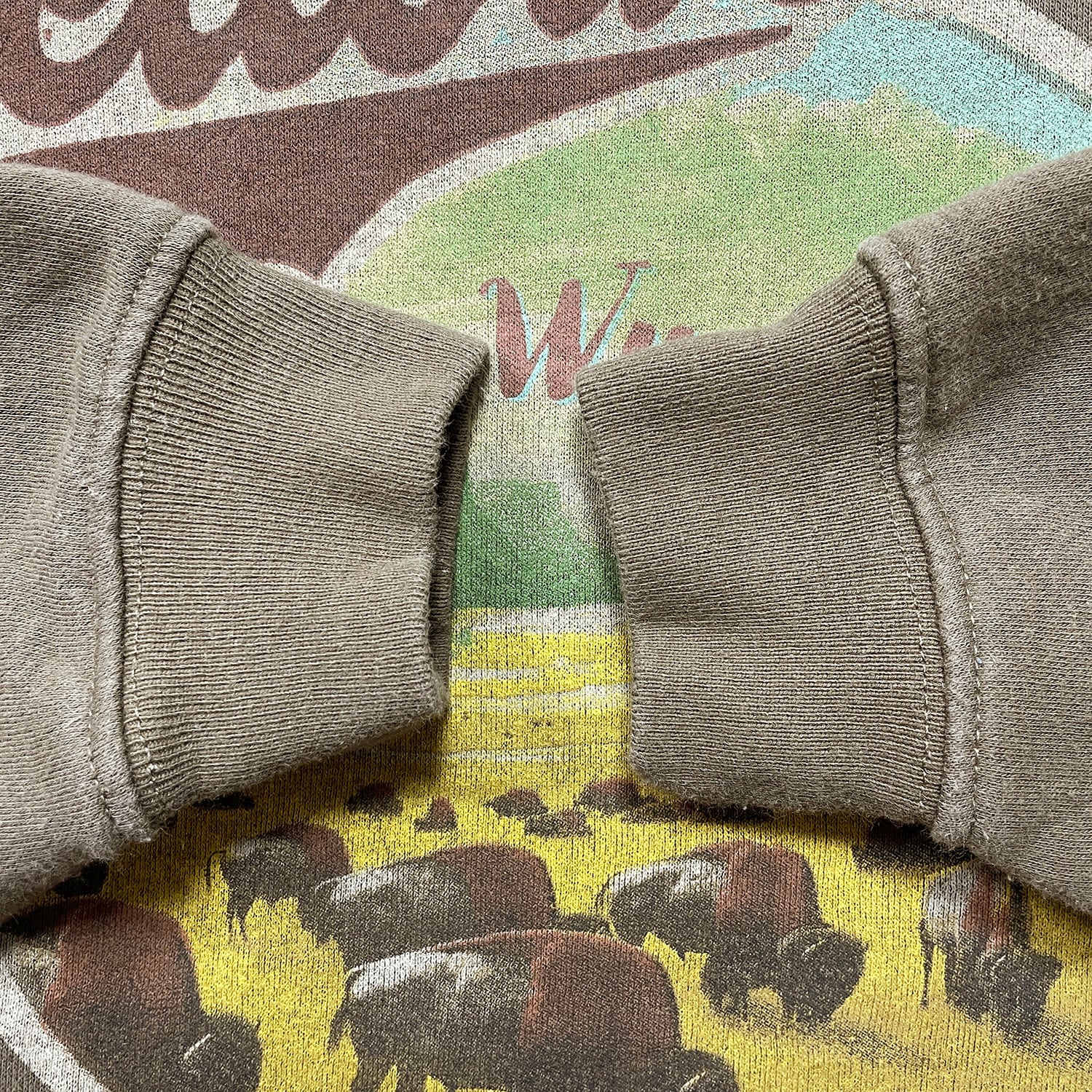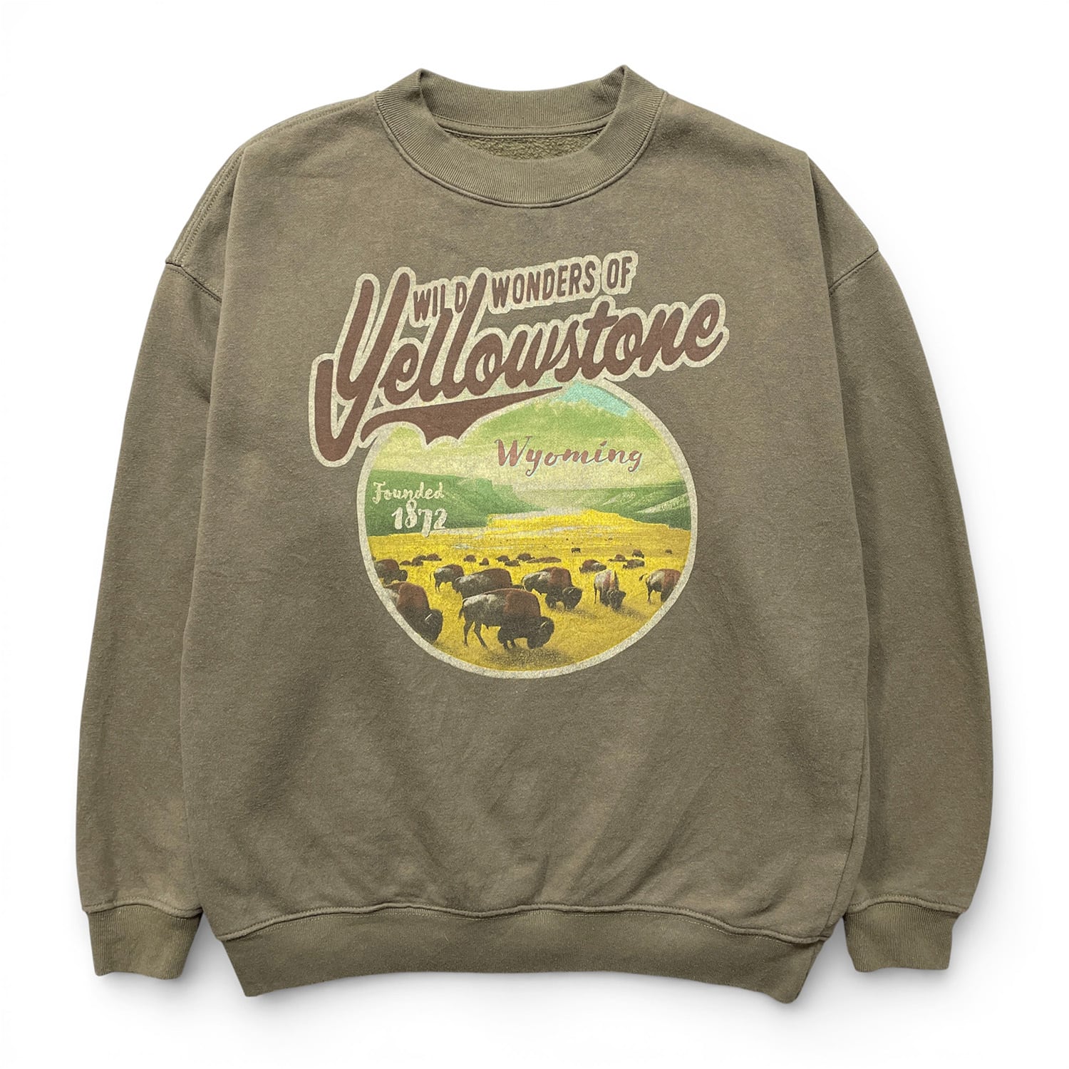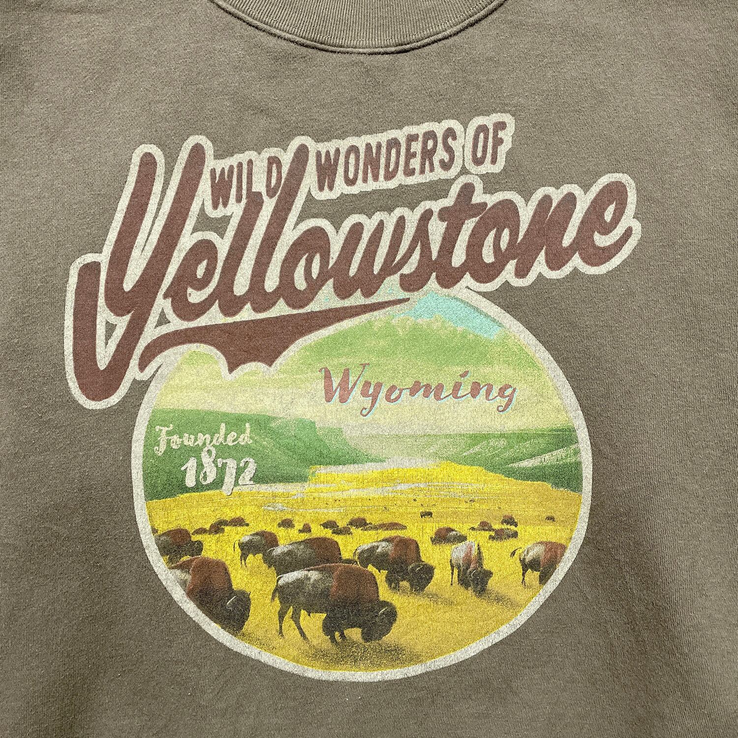 USA 古着 イエローストーン国立公園 クルーネック スウェット トレーナー バッファロー プリント ブラウン メンズM BD3524