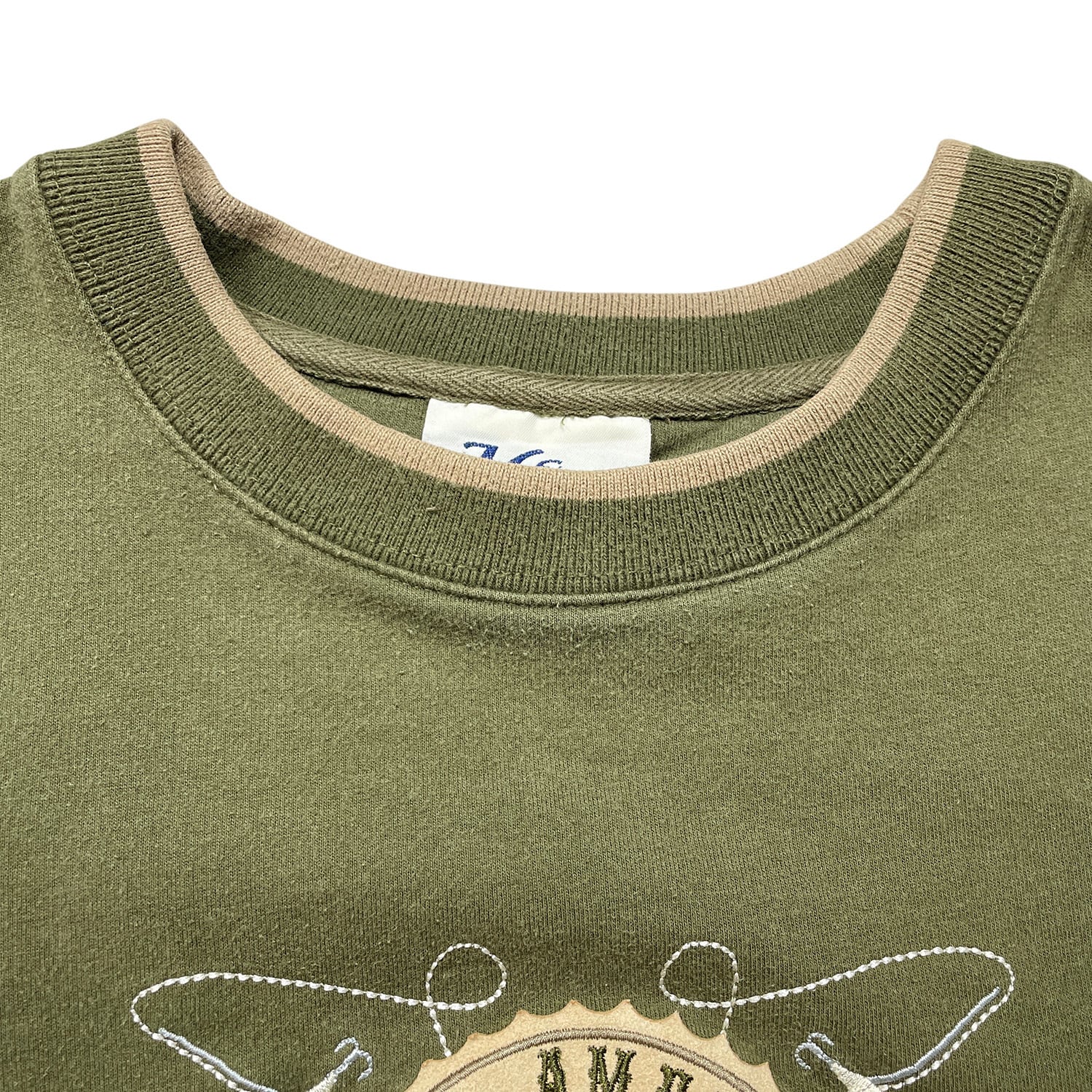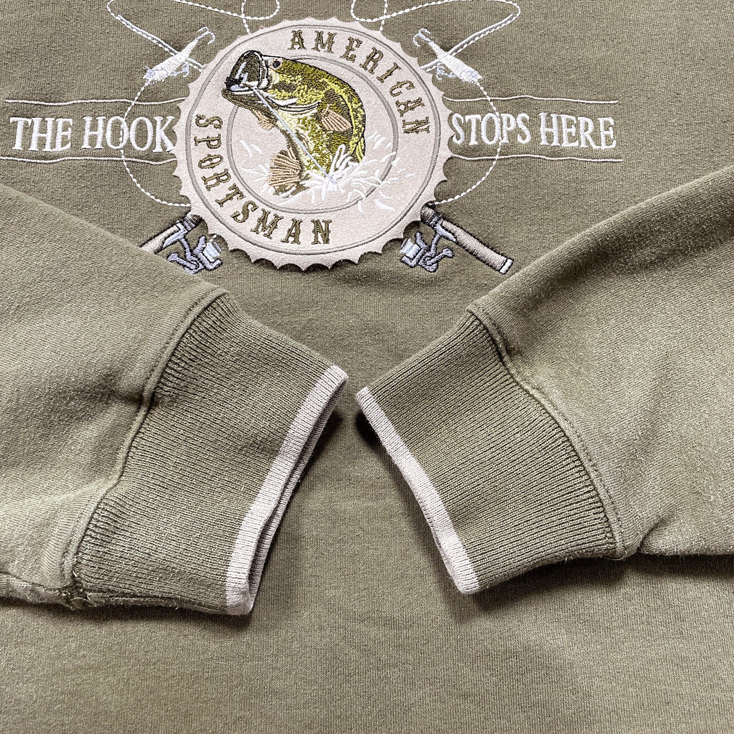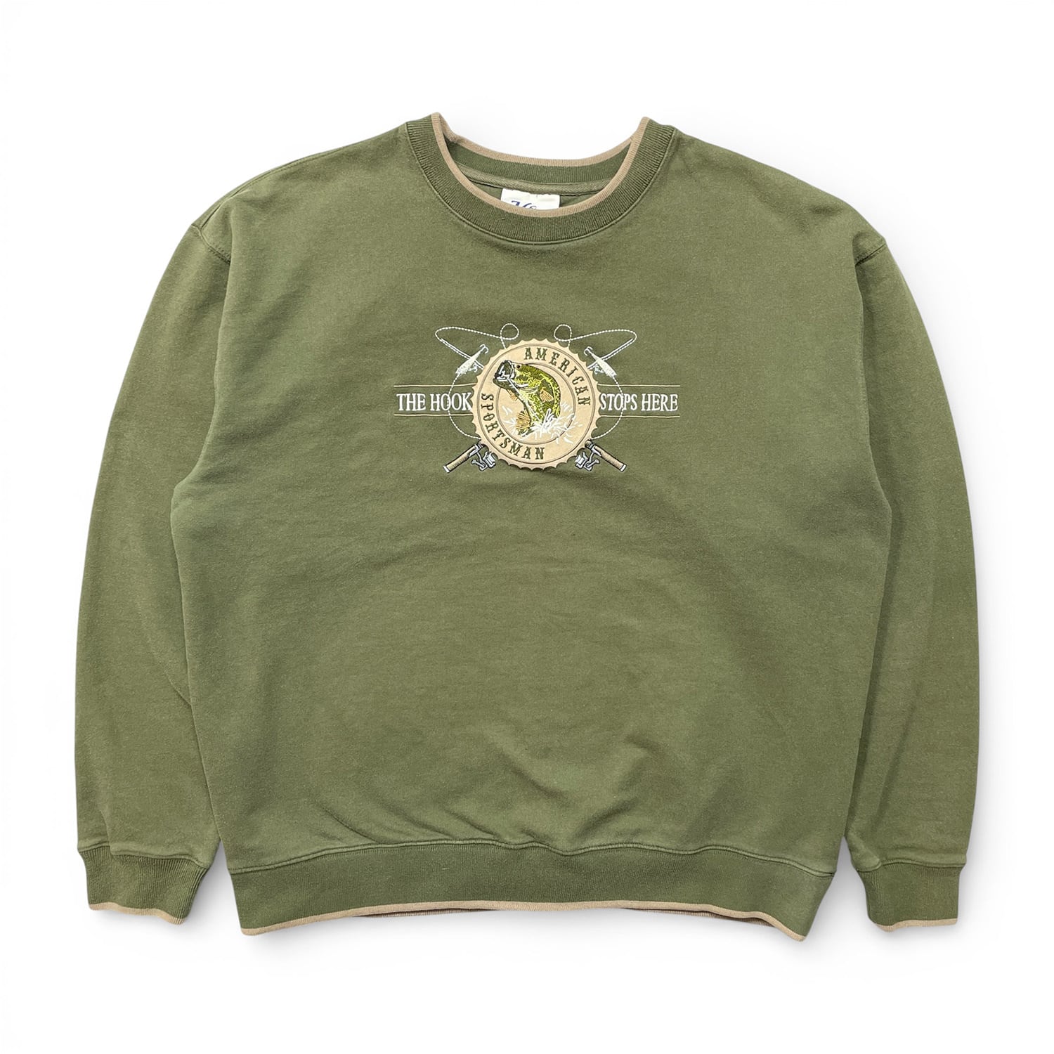 USA 古着 ルアーフィッシング ブラックバス クルーネック スウェット トレーナー 刺繍 オリーブ メンズXL BD3490
