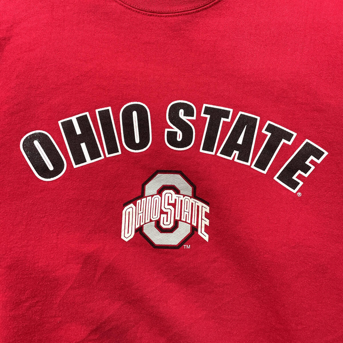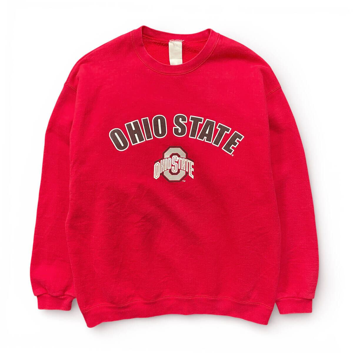 USA 古着 オハイオ州立大学 カレッジ クルーネック スウェット トレーナー プリント レッド 赤 メンズL BD3530
