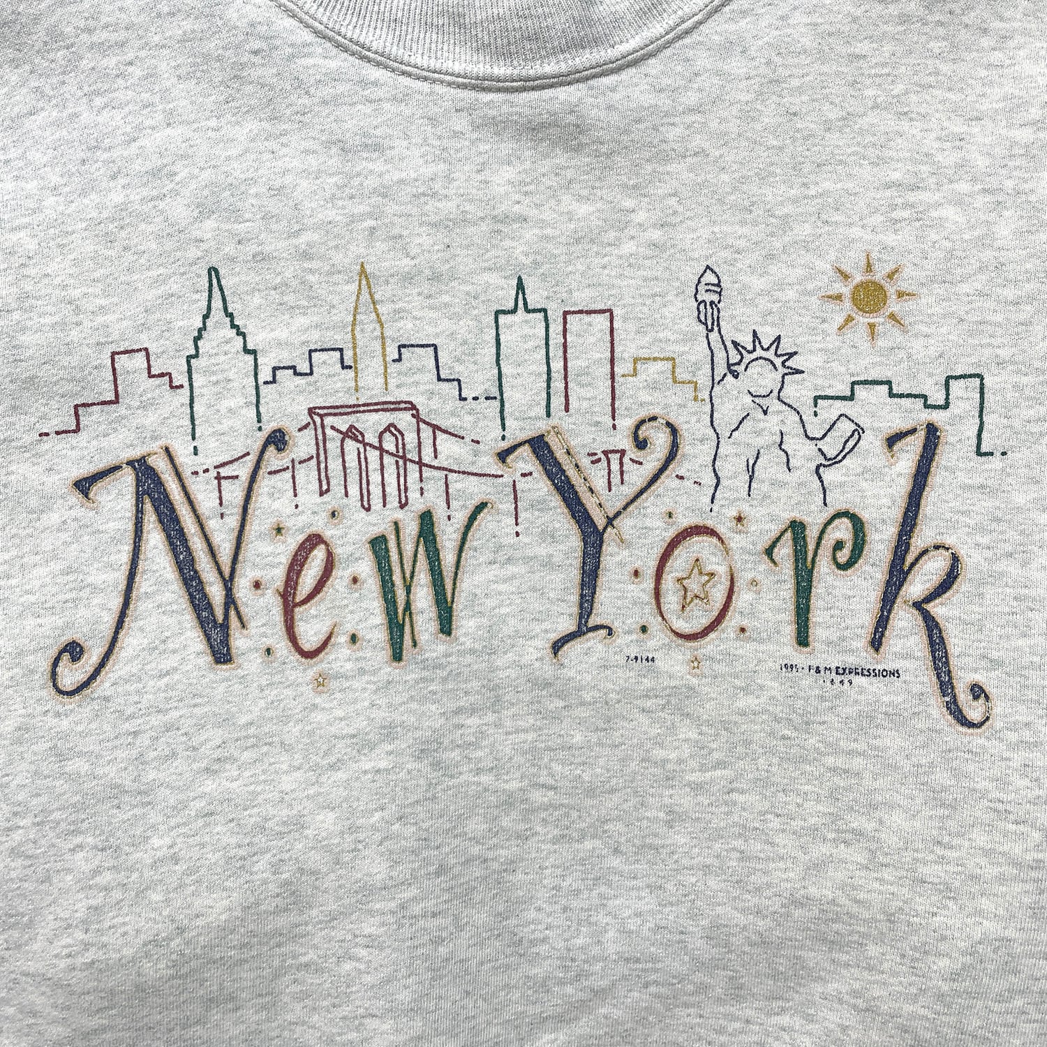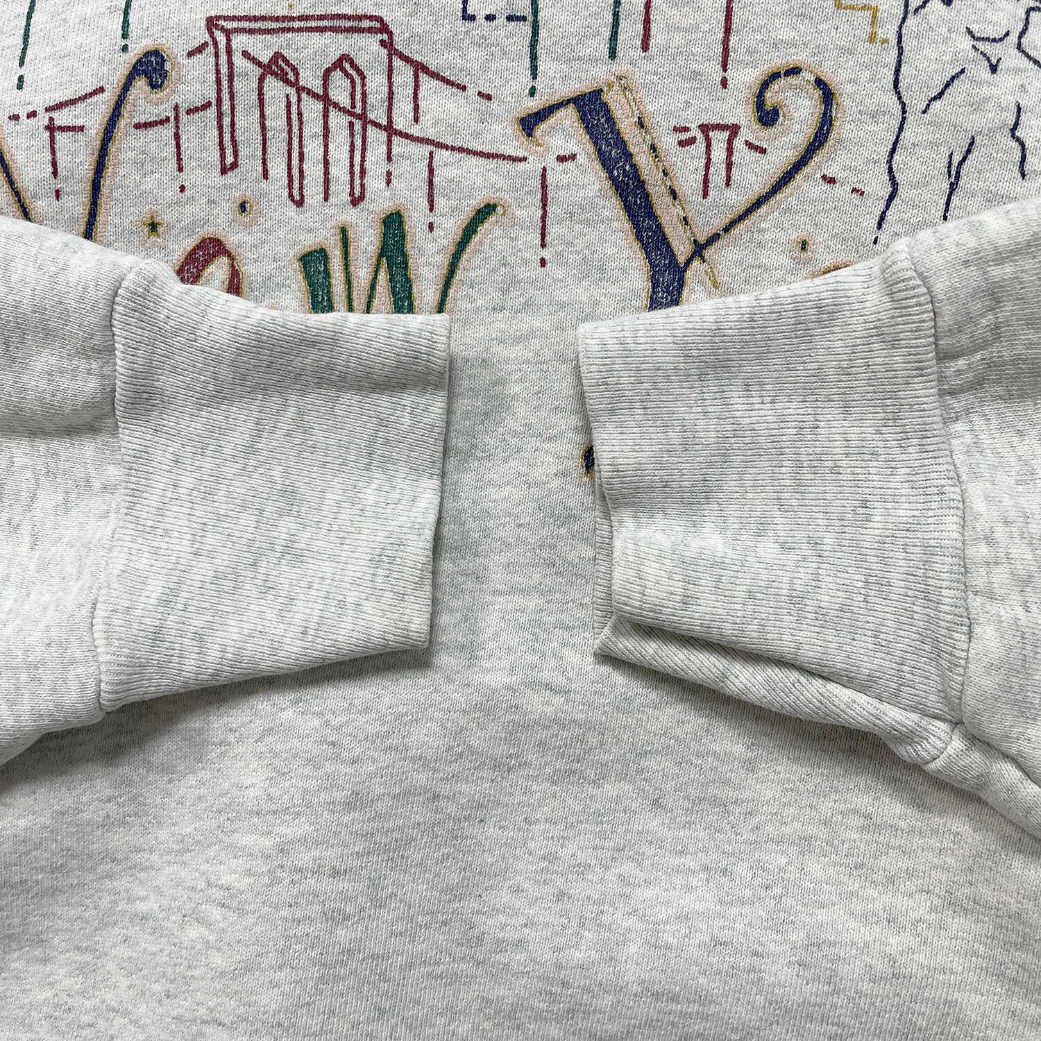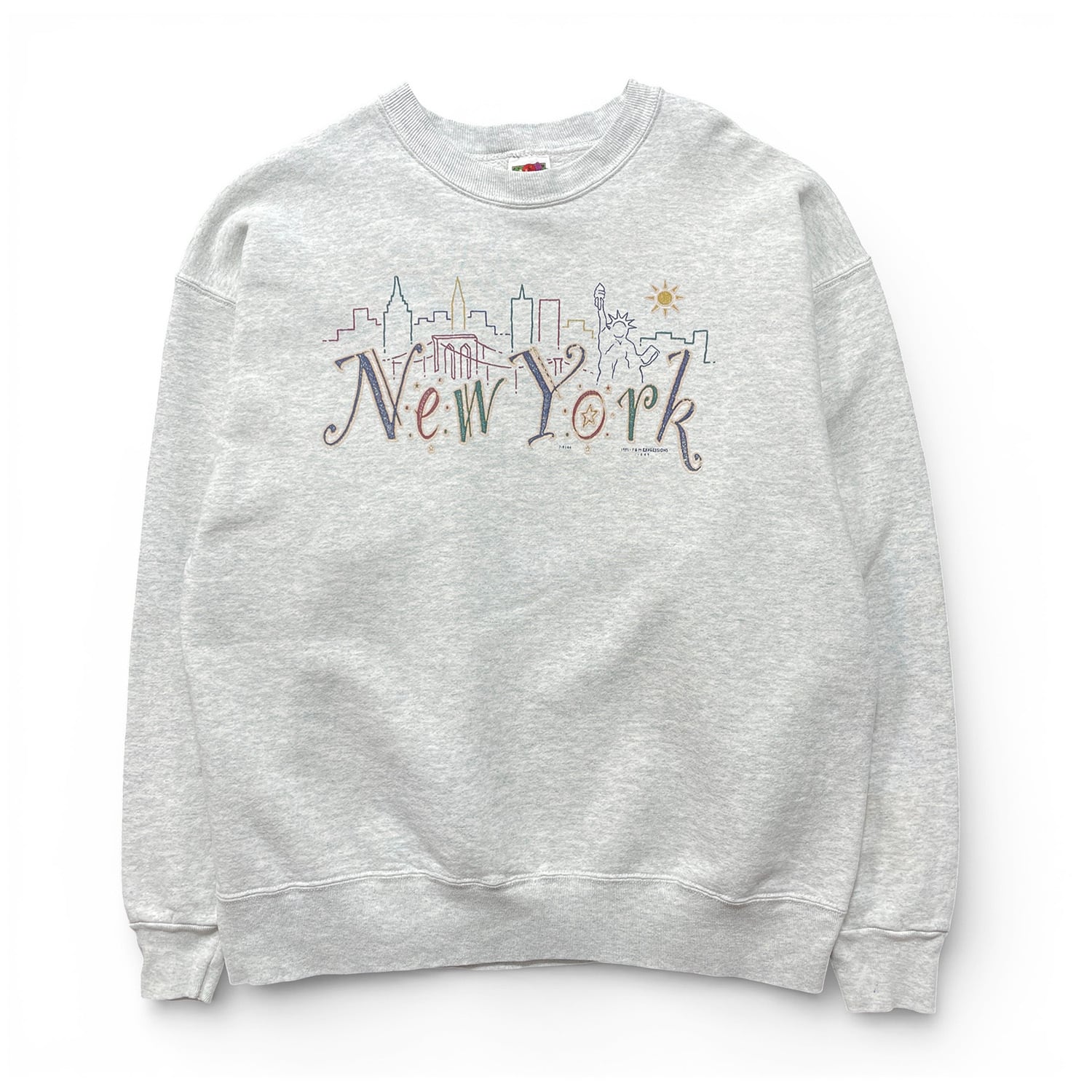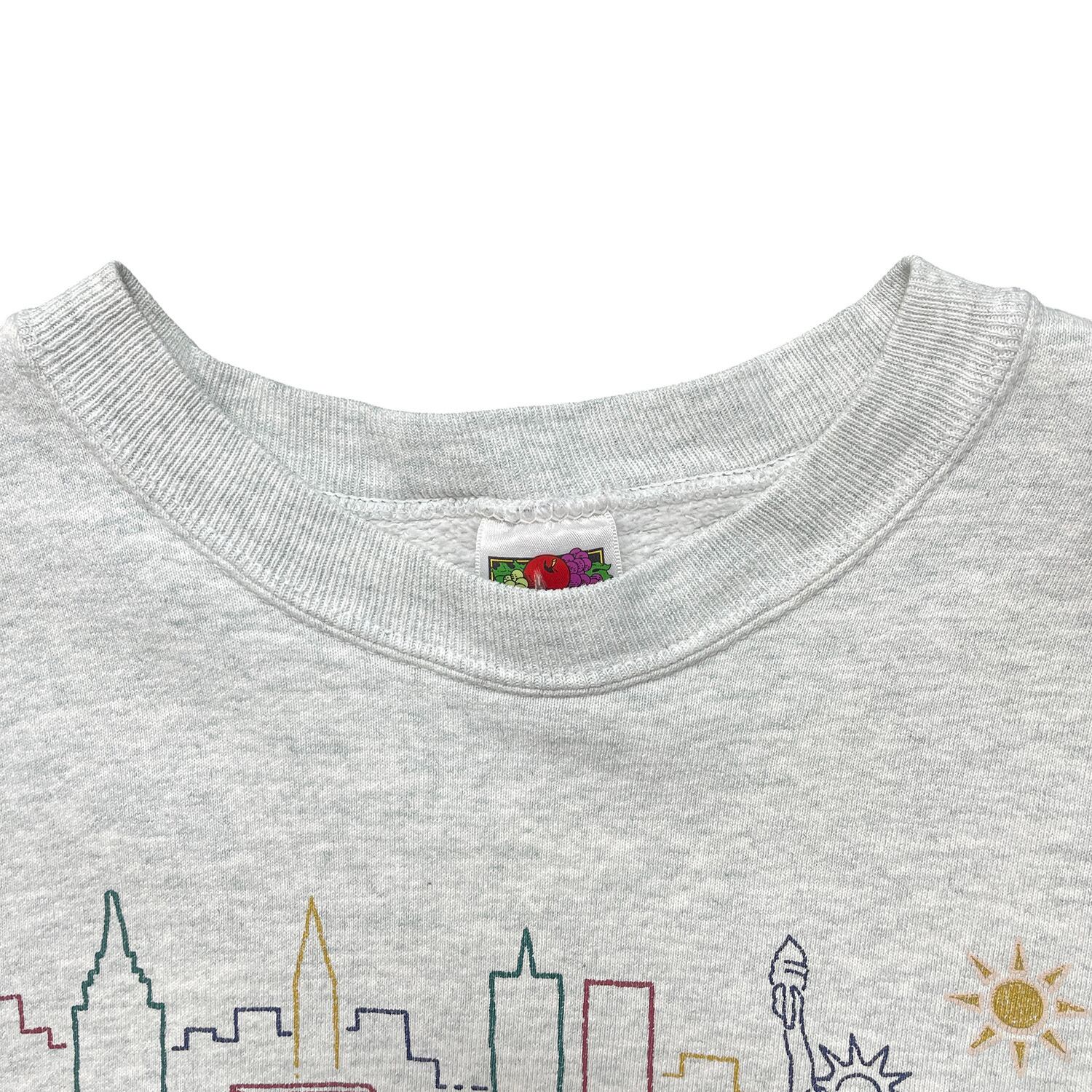 USA 古着 90S メキシコ製 フルーツオブザルーム ヴィンテージ スウェット トレーナー ニューヨーク プリント グレー メンズXL BD3535