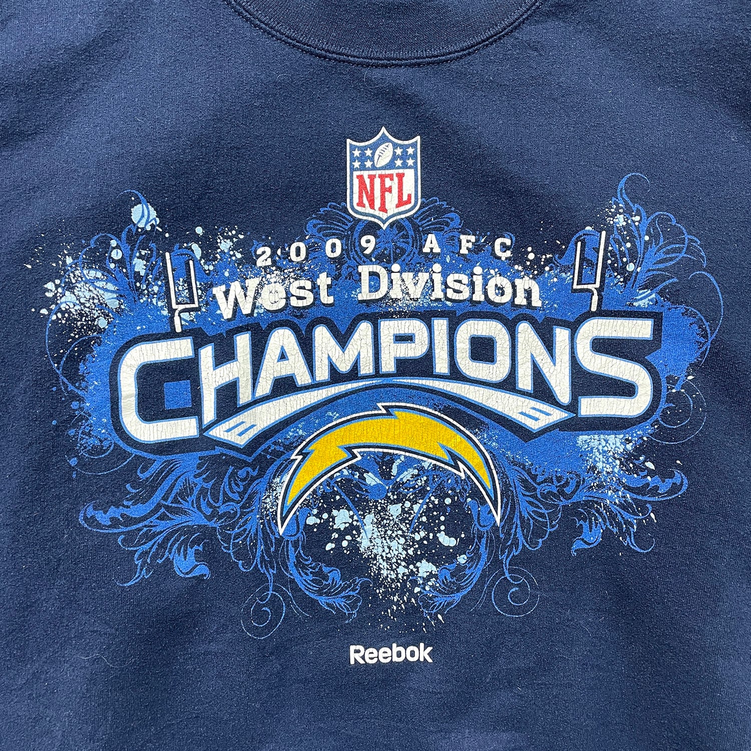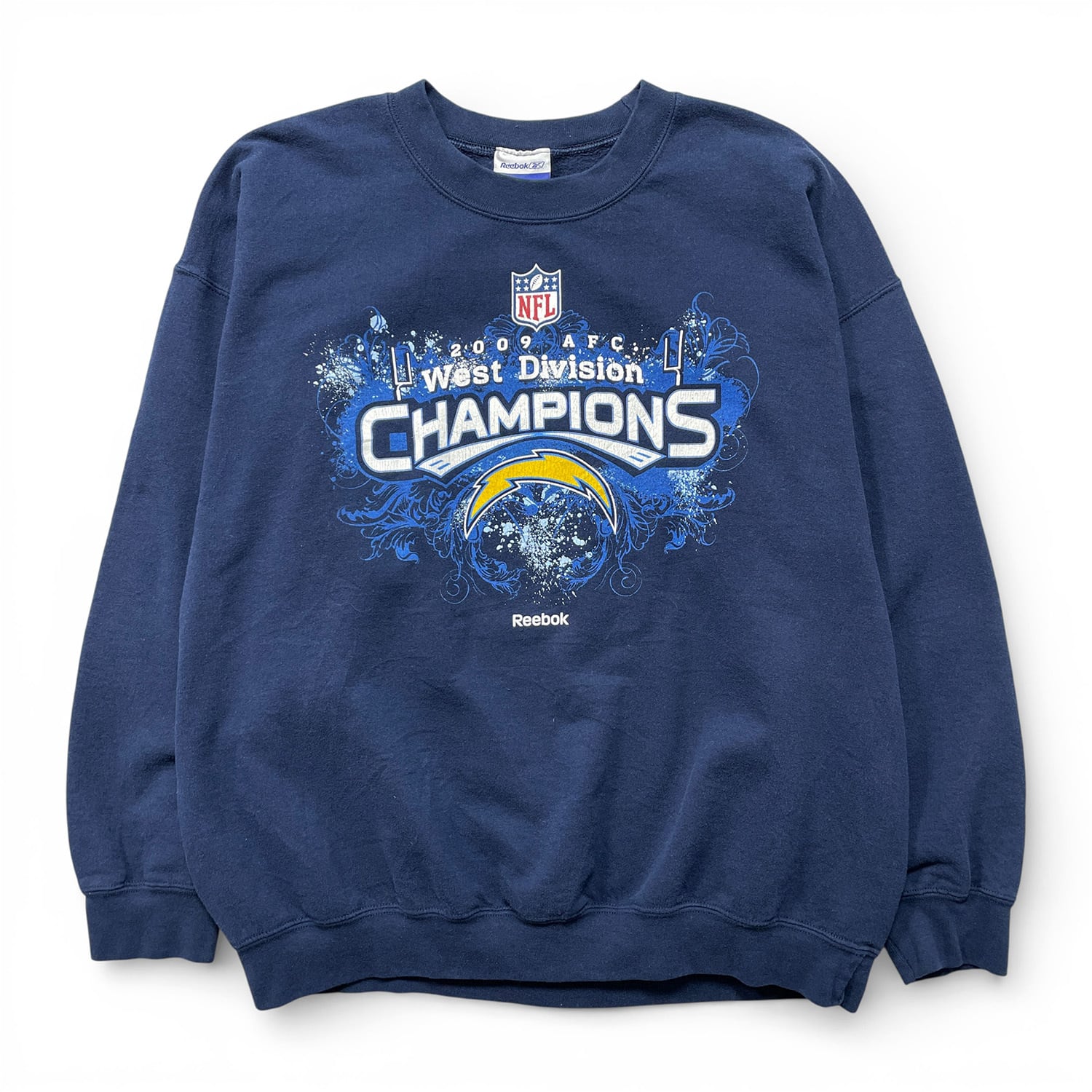USA 古着 Reebok リーボック NFL サンディエゴチャージャーズ クルーネック スウェット トレーナー プリント ネイビー メンズXL BD3537