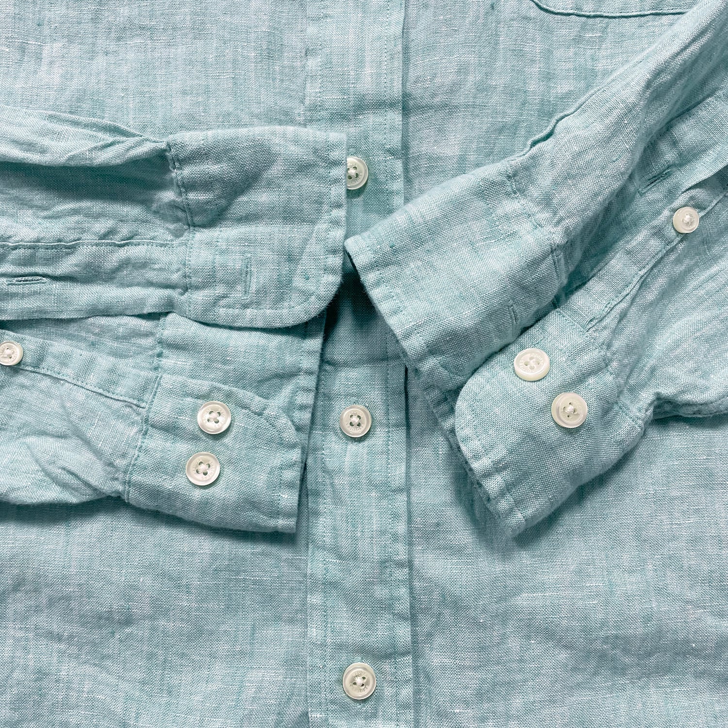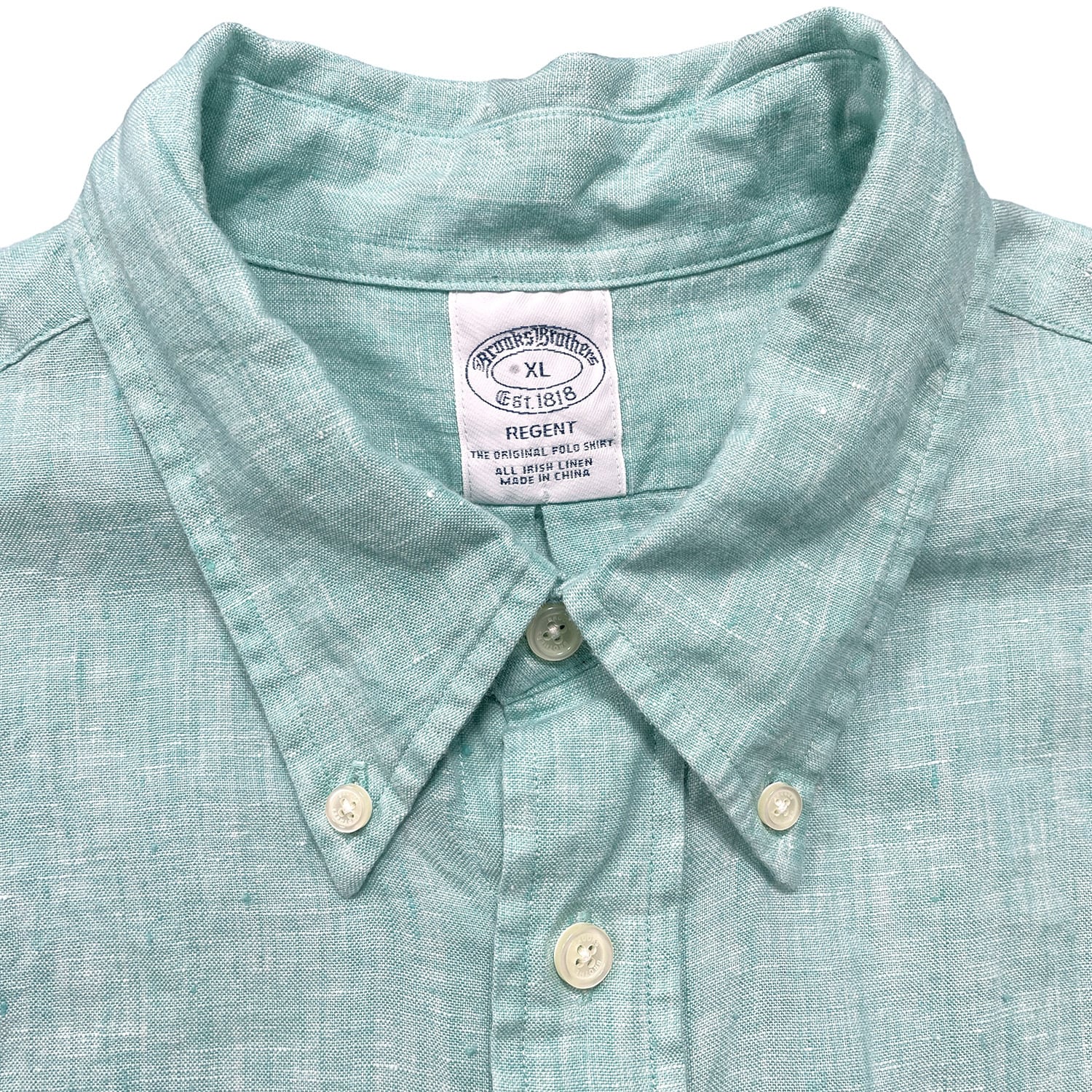 USA 古着 Brooks Brothers REGENT ブルックスブラザーズ リネン 長袖シャツ BDシャツ メンズXL グリーン系 BG1382