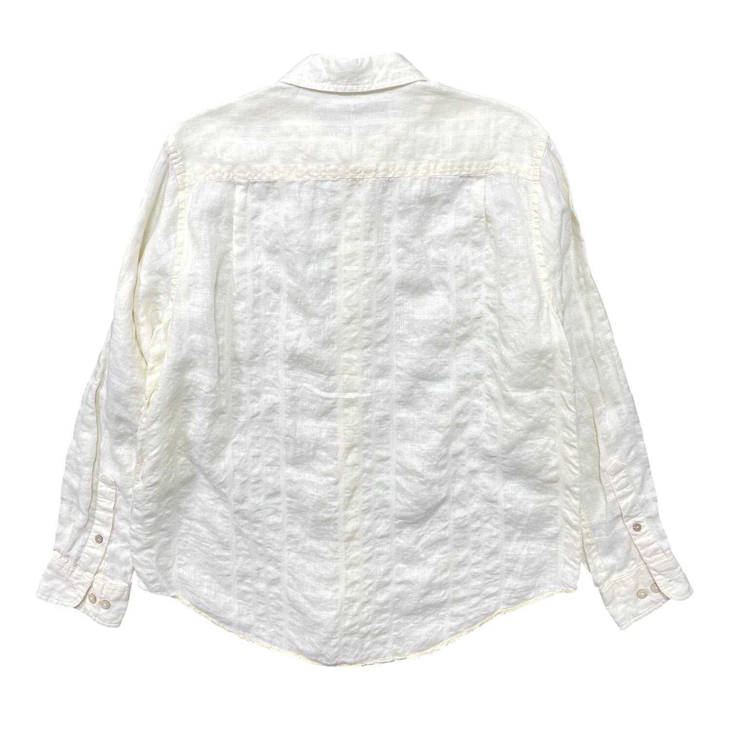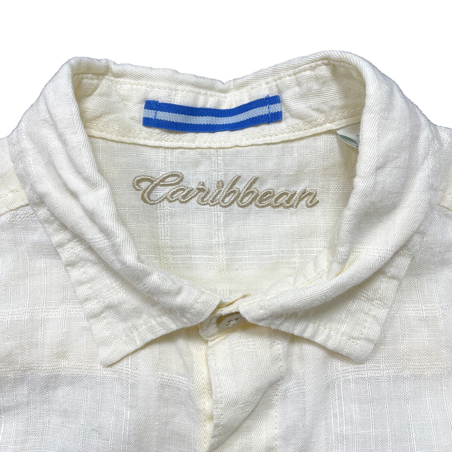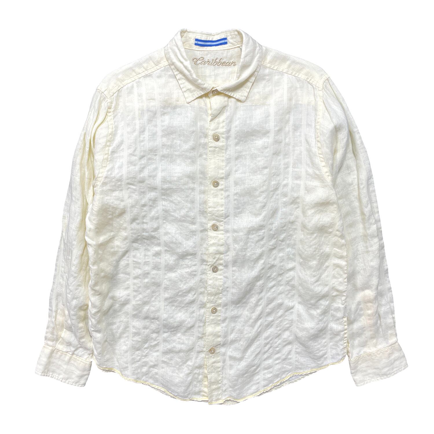 USA 古着 Caribbean カリビアン リネン/コットン 長袖シャツ BDシャツ メンズM 薄イエロー BG1383