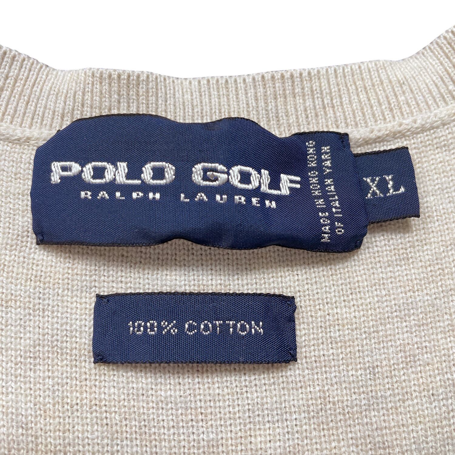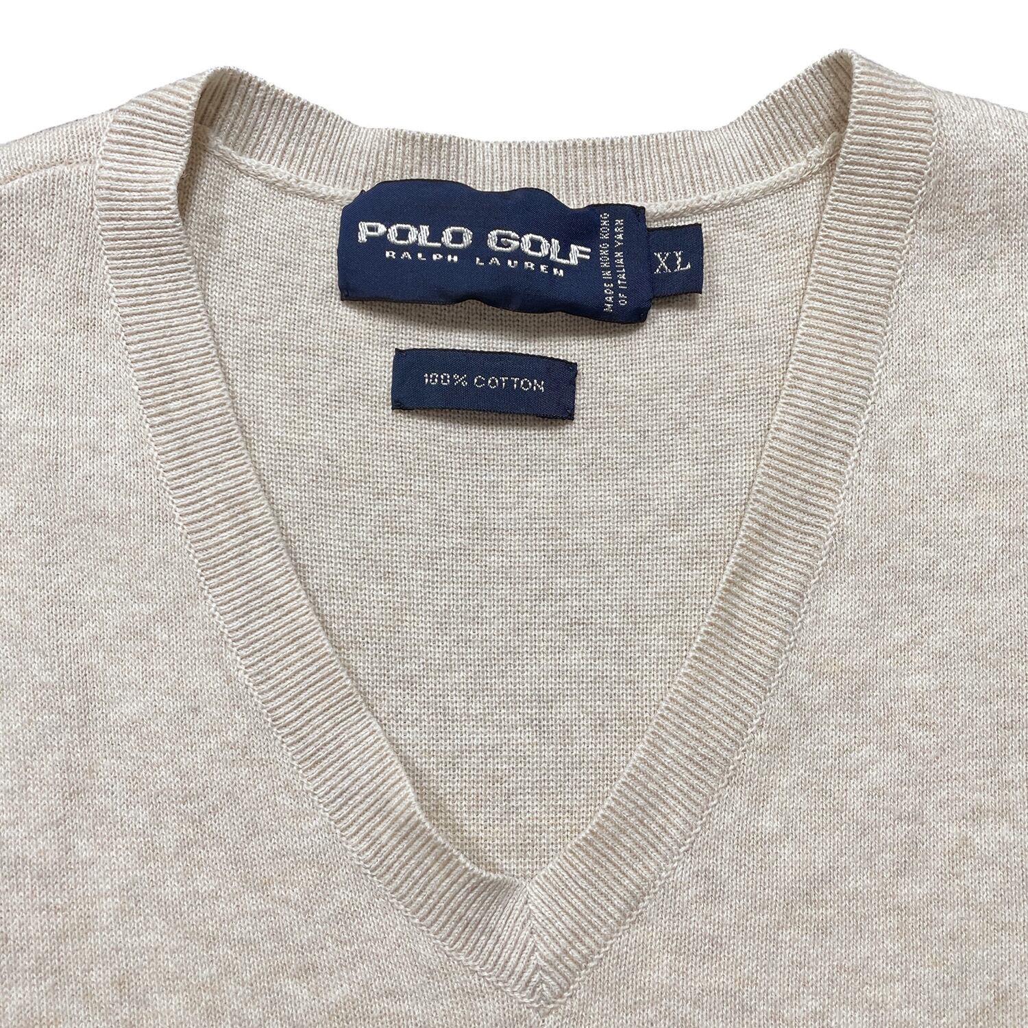 USA 古着 POLO GOLF ポロゴルフ ラルフローレン コットン ニットベスト メンズXL ベージュ BI0151