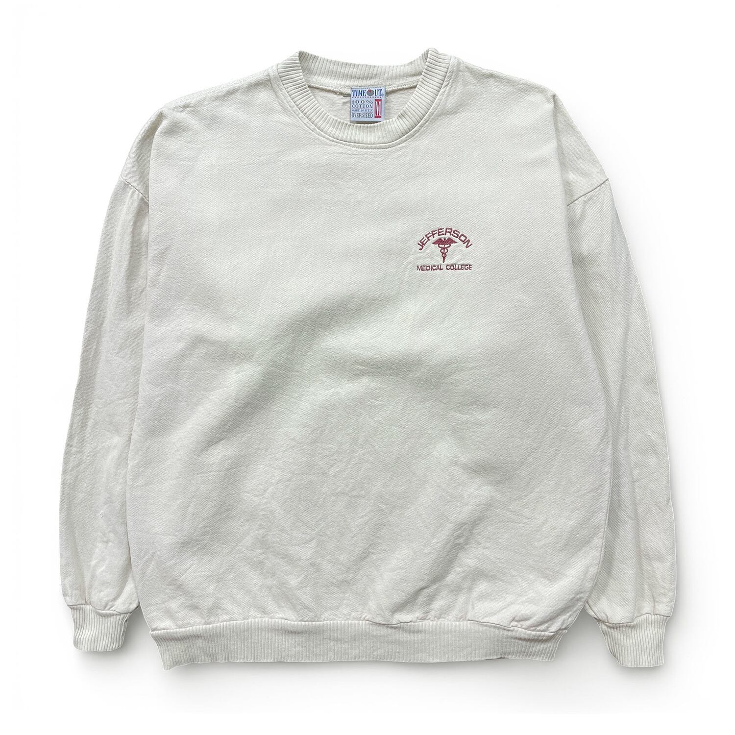 古着 USA製 90s TIME OUT ヴィンテージ ジェファーソン医科大学 スウェット トレーナー オフホワイト BD3585