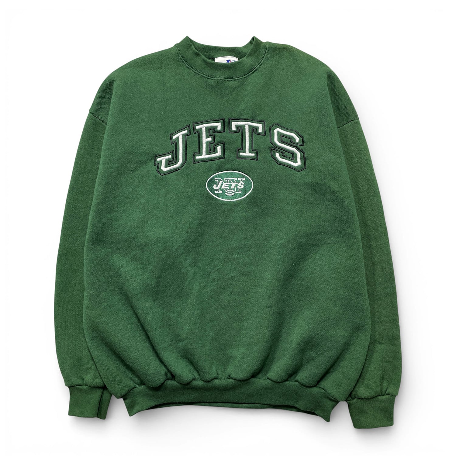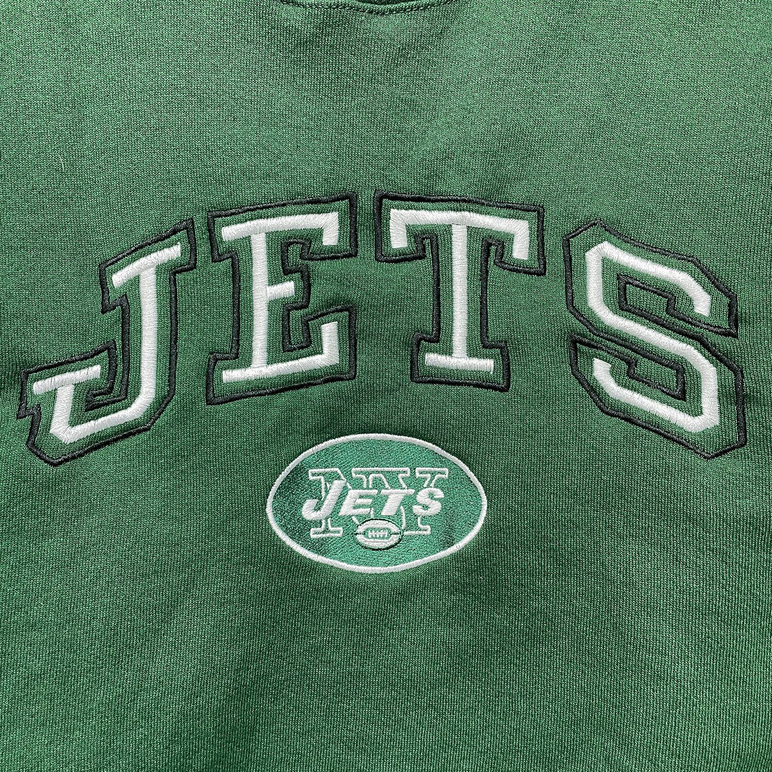 USA 古着 90S メキシコ製 NFL JETS ニューヨークジェッツ クルーネック 刺繍 スウェット トレーナー 裏起毛 メンズXL グリーン BD3543