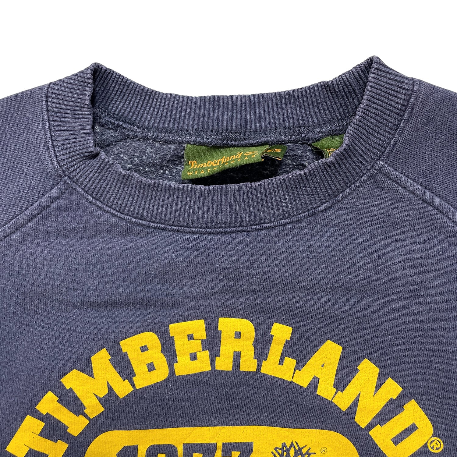 USA 古着 Timberland ティンバーランド 3段ロゴ プリント スウェット トレーナー メンズM ネイビー BD3602