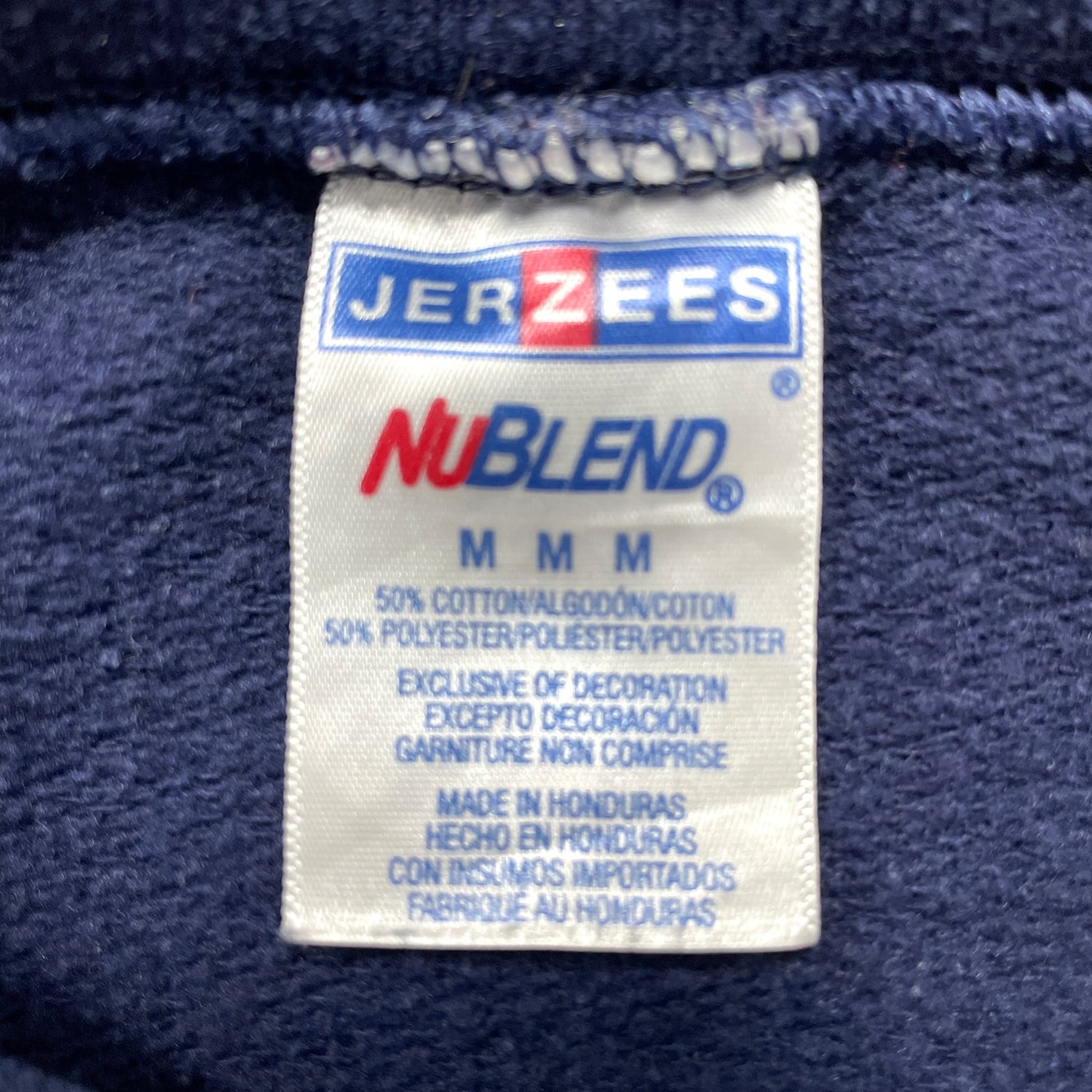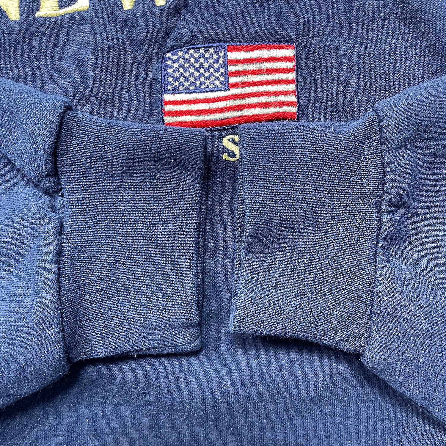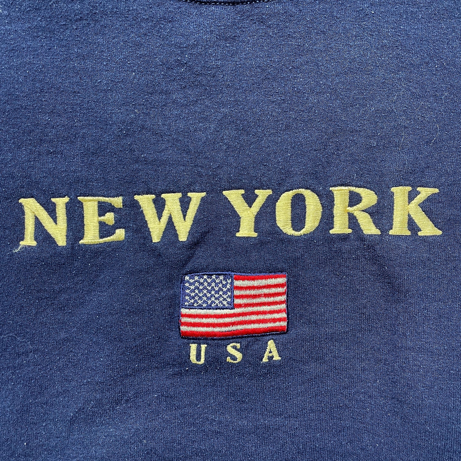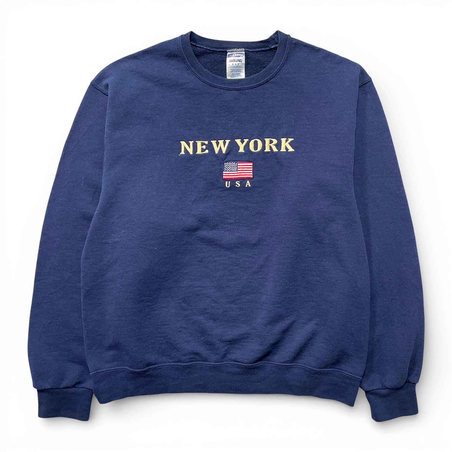 USA 古着 00S JERZEES ニューヨーク 星条旗 刺繍 ロゴ クルーネック スウェット トレーナー メンズM ネイビー BD3555