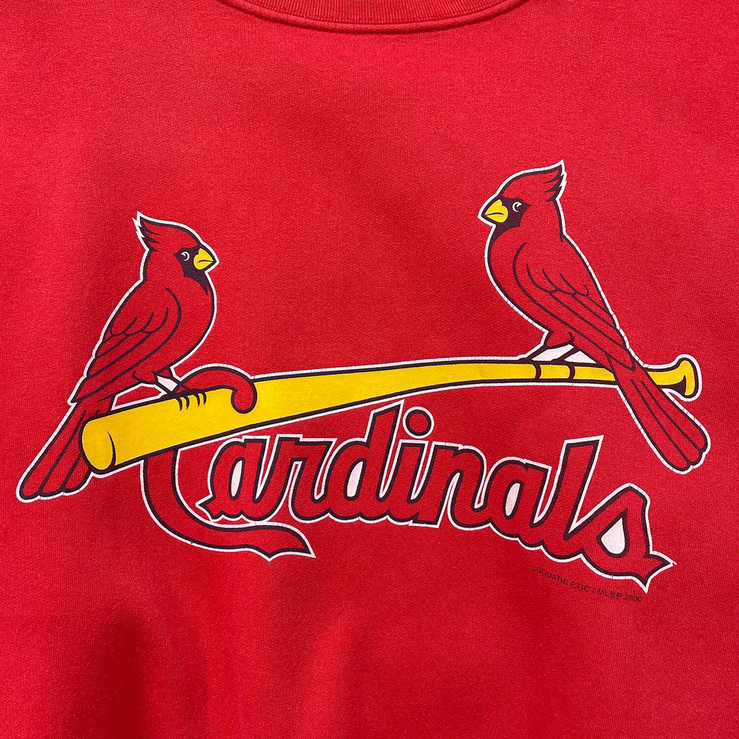 USA 古着 90S LOGO ATHLETIC MLB セントルイスカージナルス ヴィンテージ クルーネック スウェット トレーナー プリント メンズL レッド BD3563