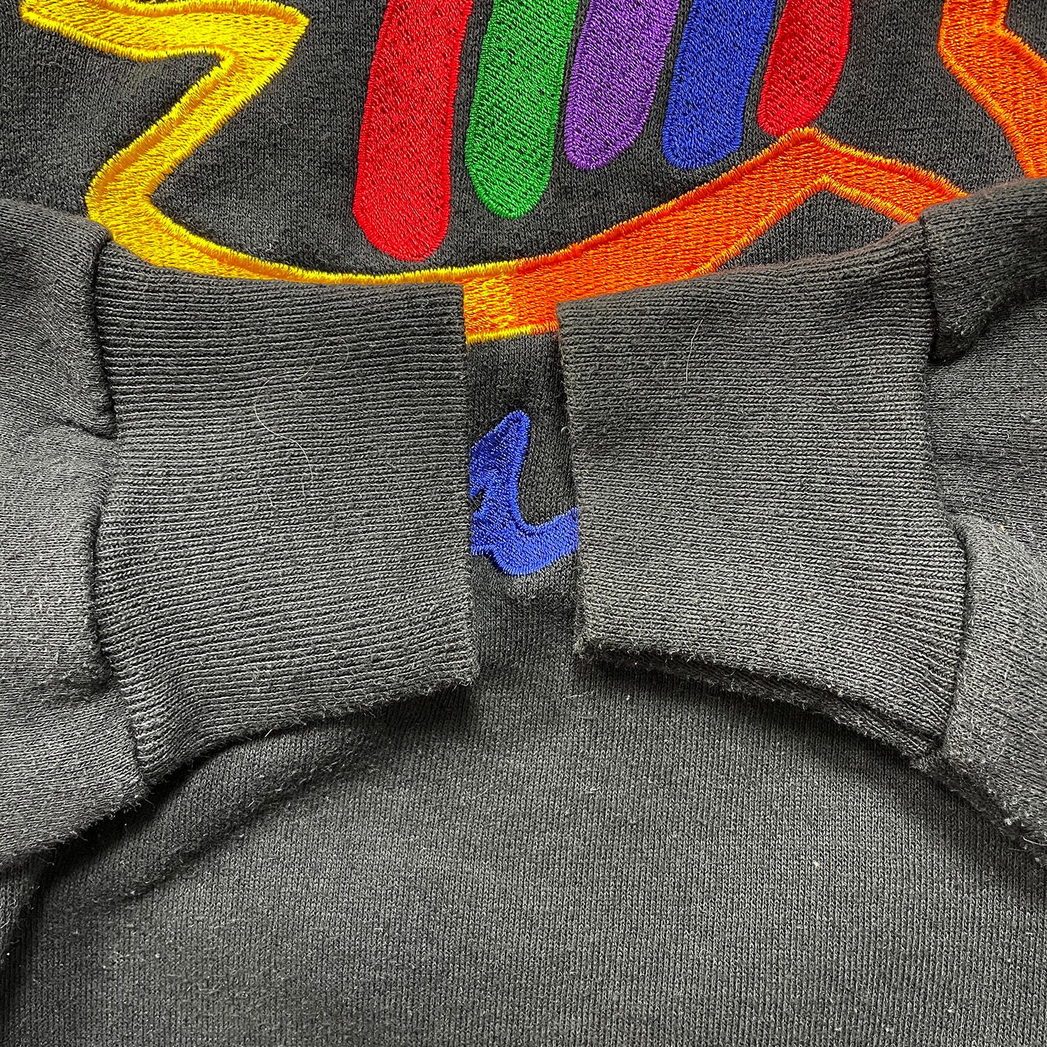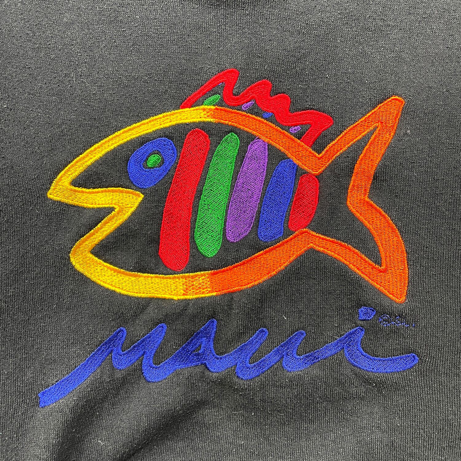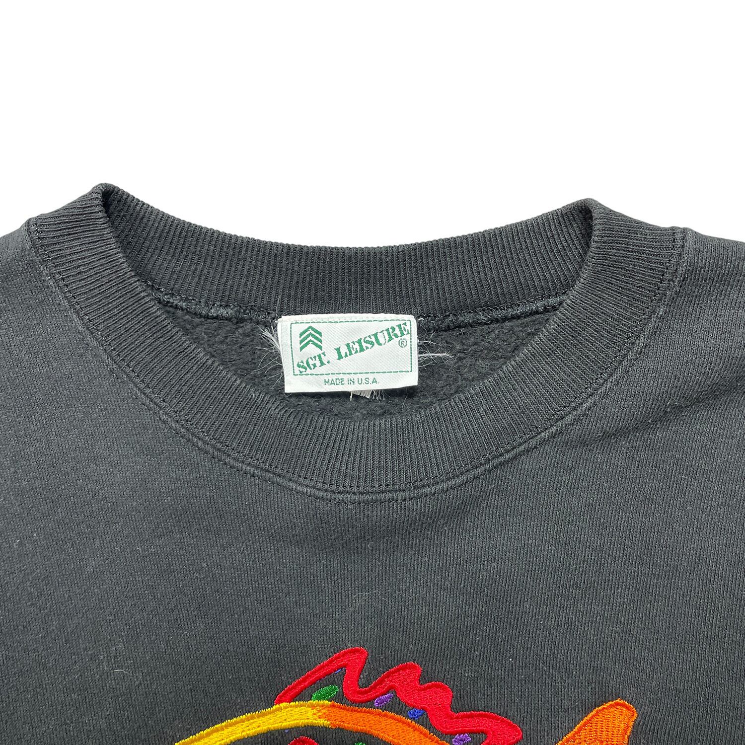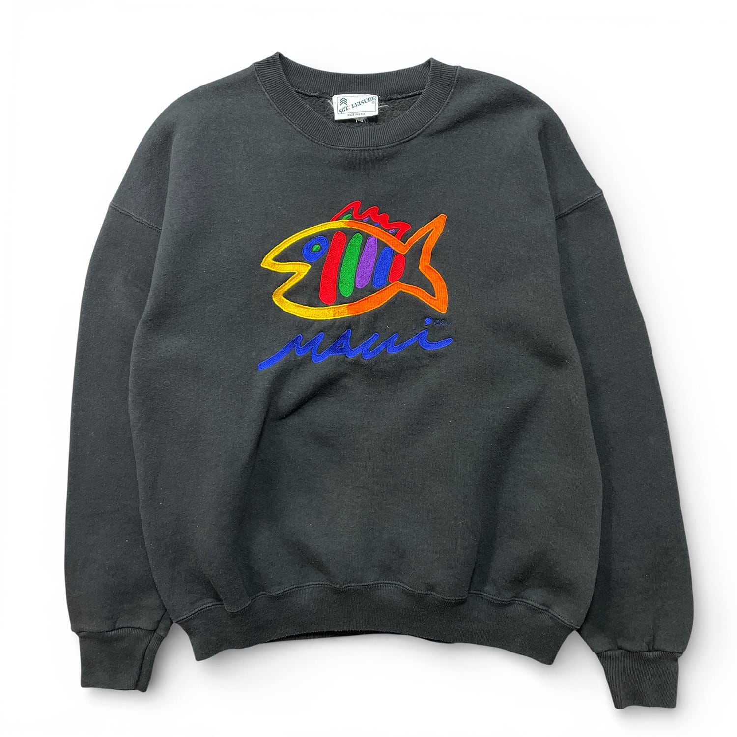 古着 USA製 90S SGT. LEISURE サージェントレジャー マウイ 魚 クルーネック スウェット トレーナー 刺繍 メンズXL 相当 ブラック BD3566