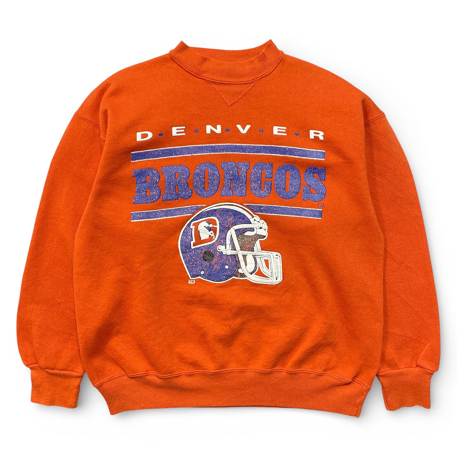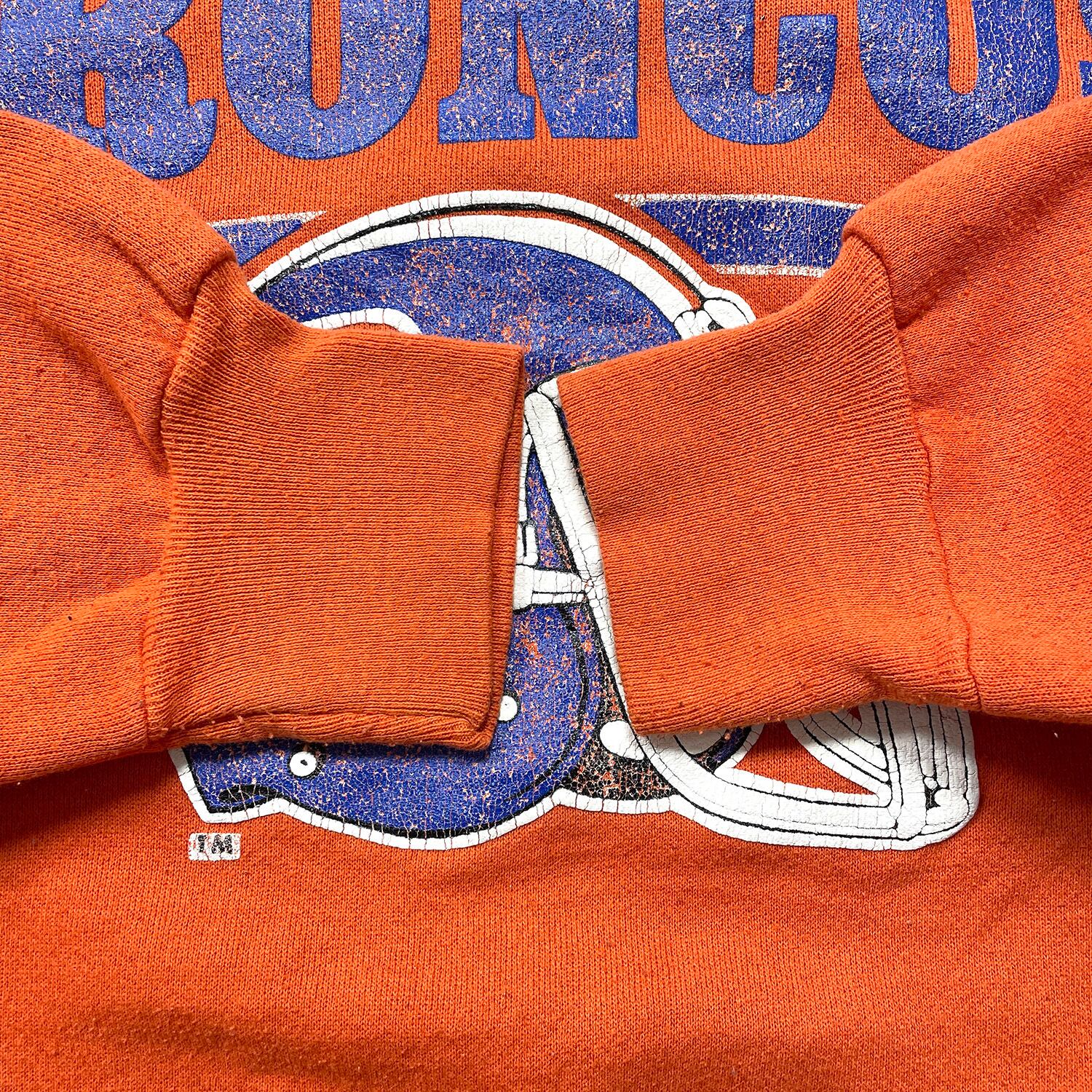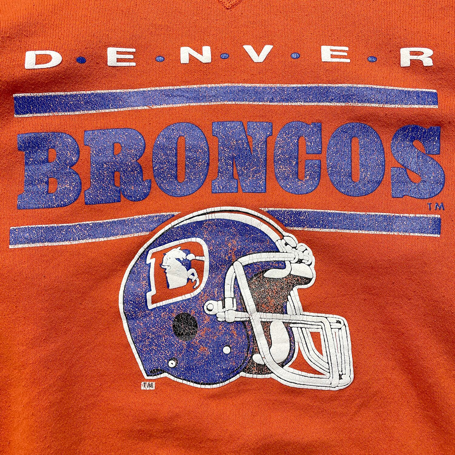 USA 古着 90S デンバーブロンコス NFL ロゴ ヴィンテージ 前V クルーネック スウェット トレーナー プリント メンズL 程度 オレンジ BD3499