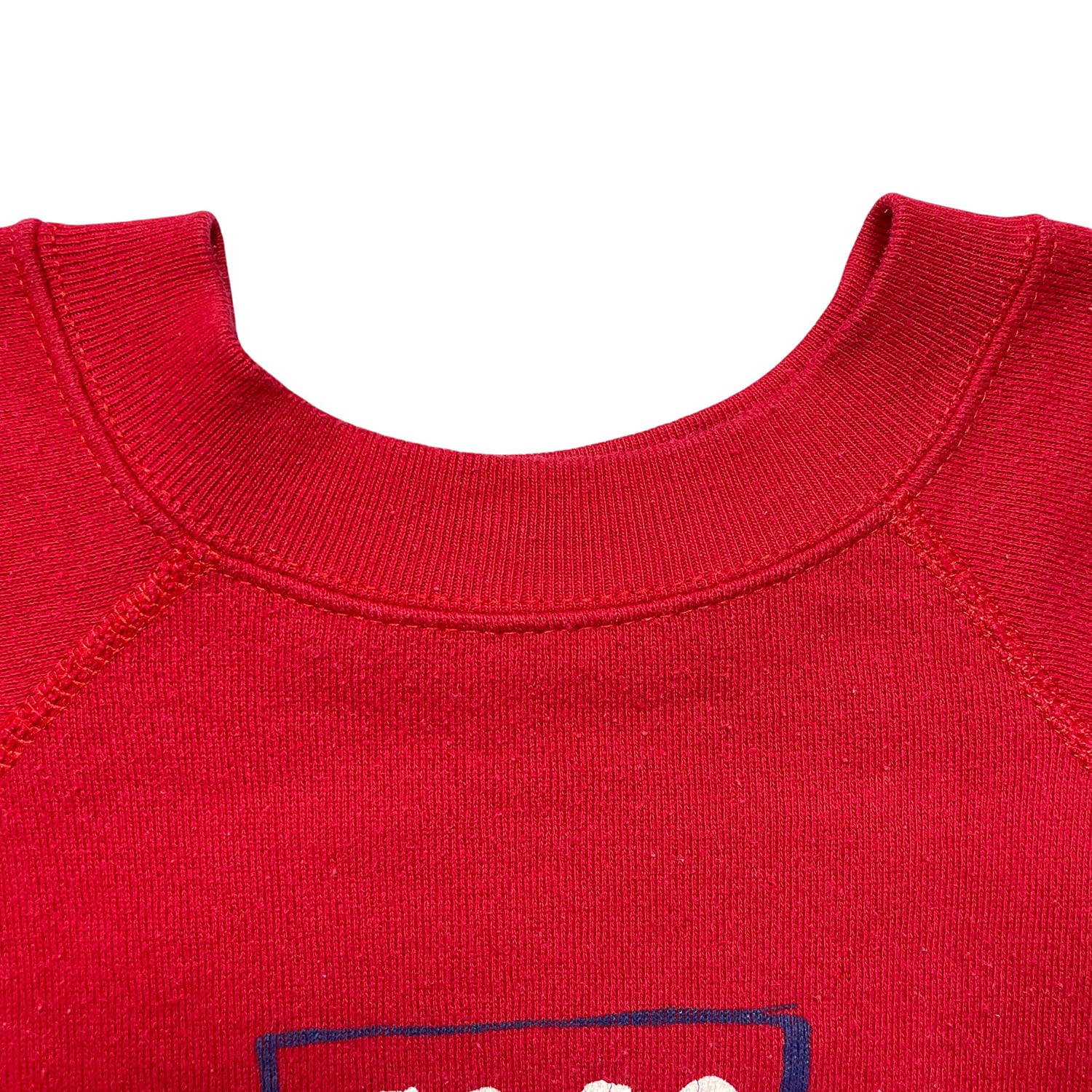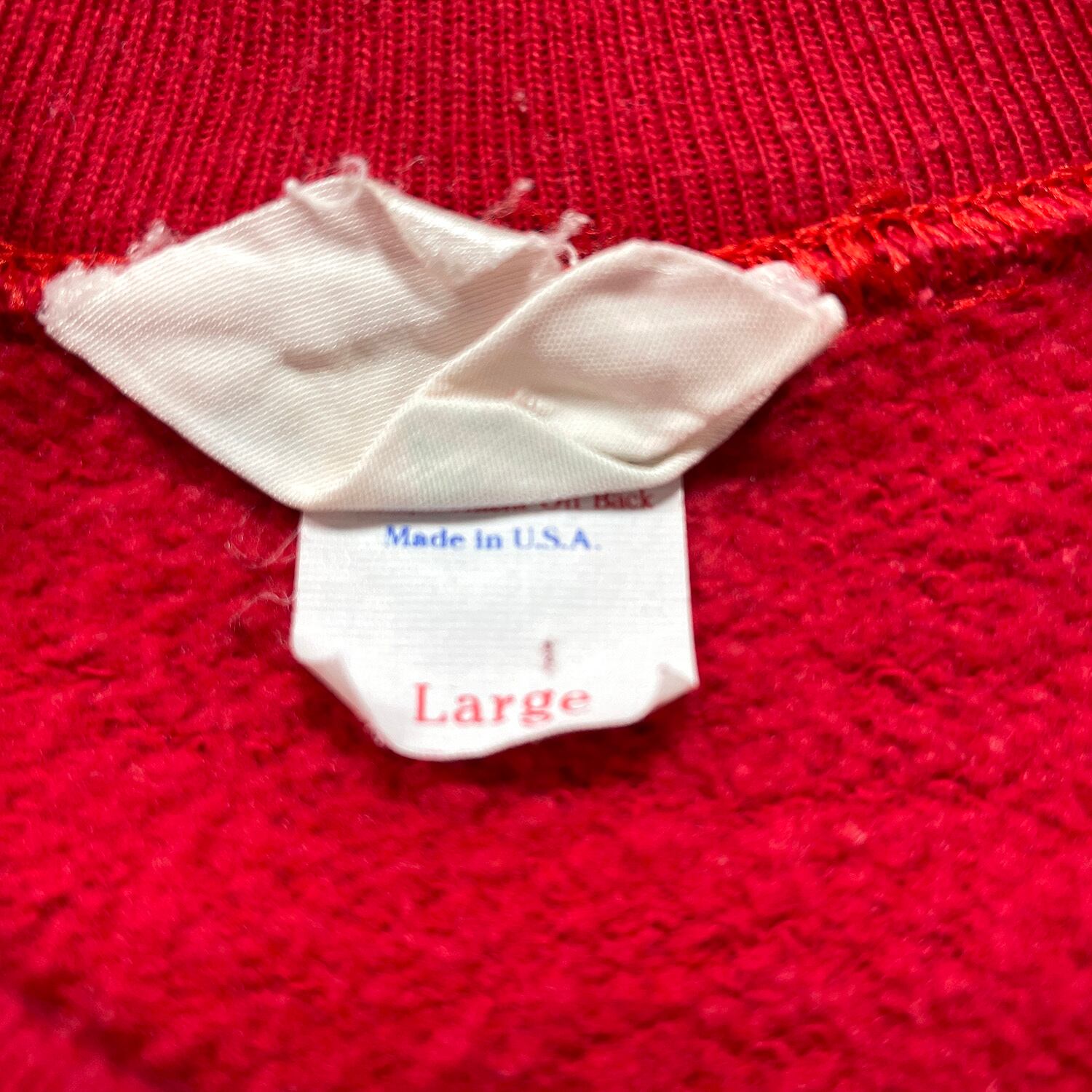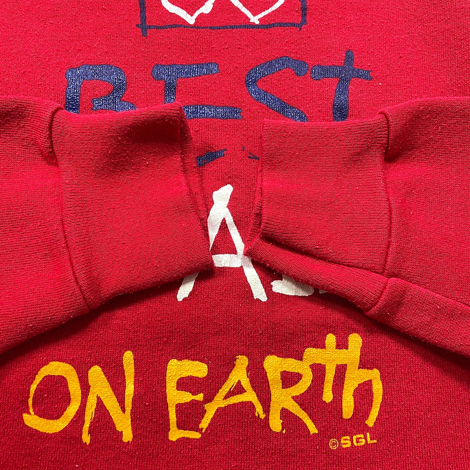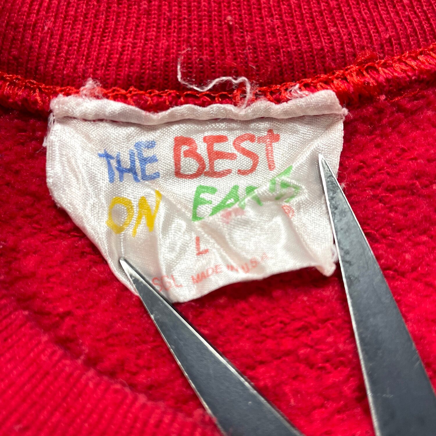 古着 USA製 90S SGL BEST DAD ヴィンテージ クルーネック スウェット トレーナー プリント メンズL レッド BD3504