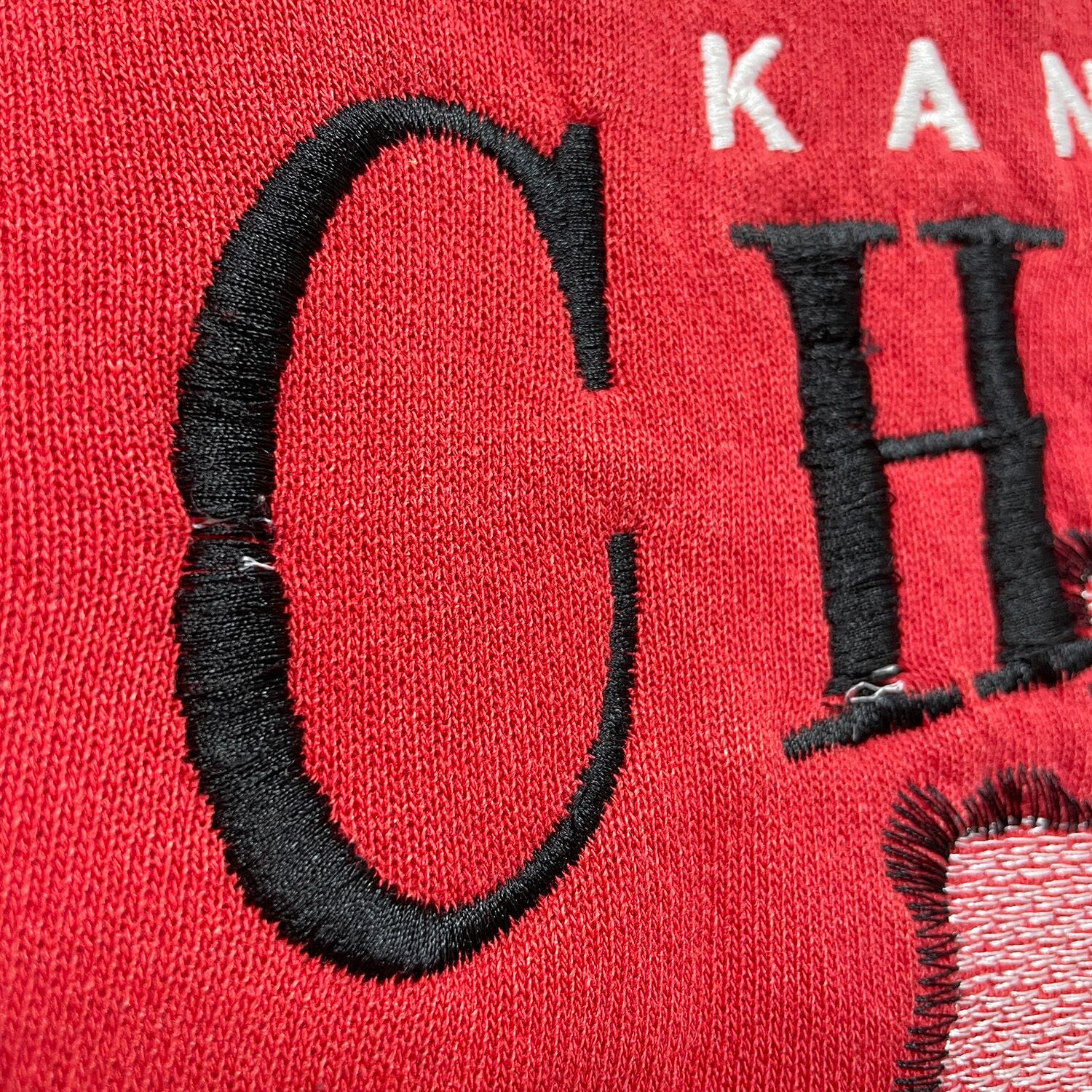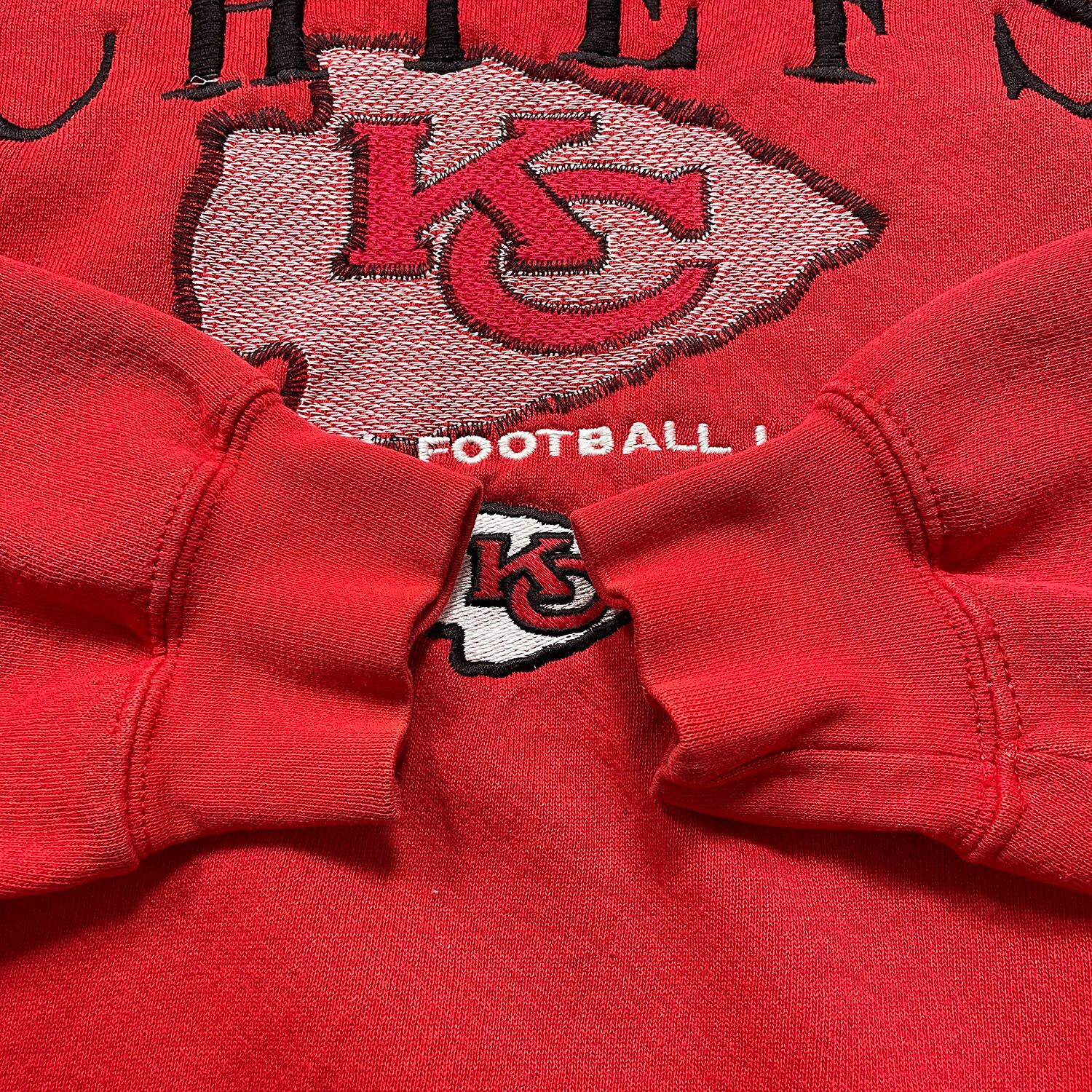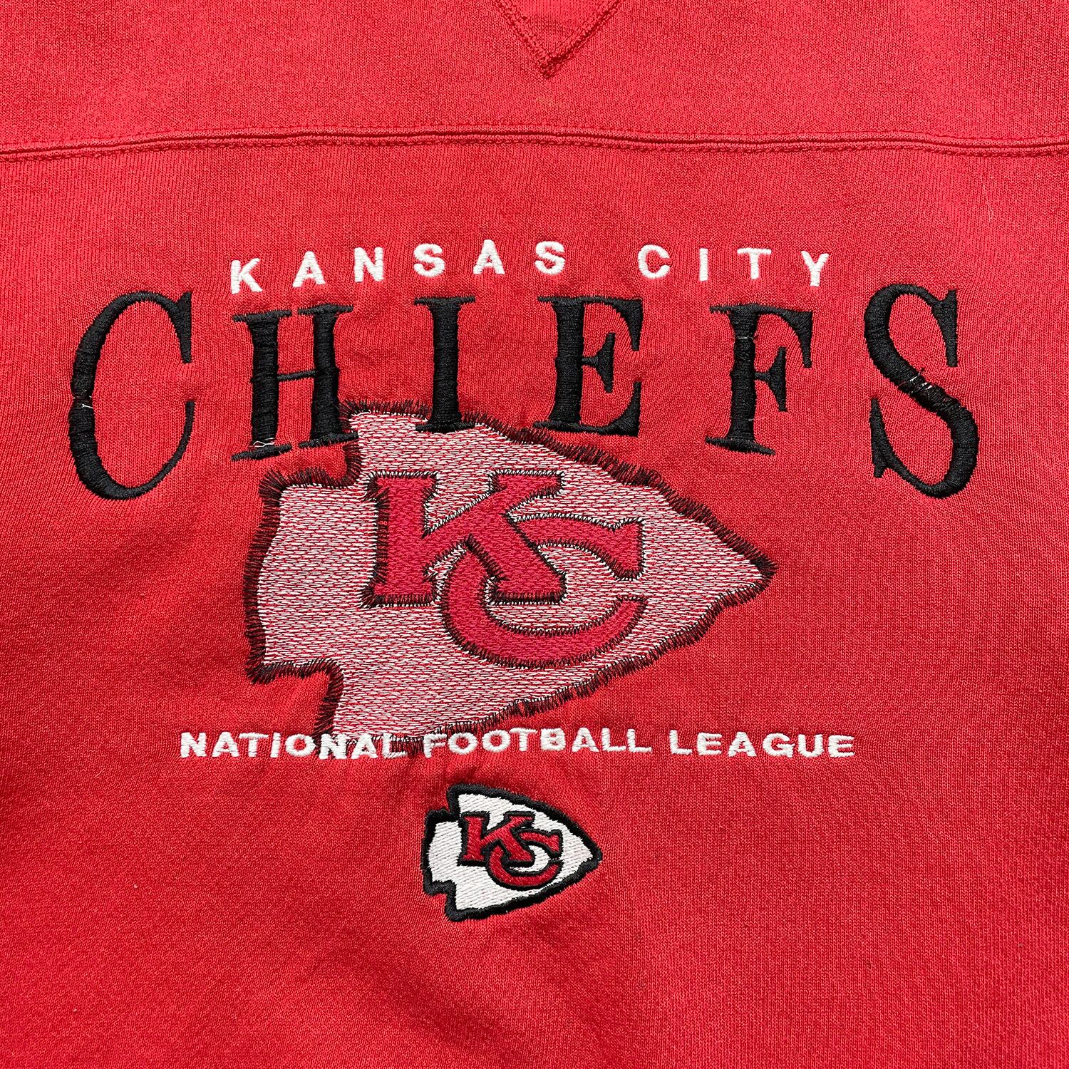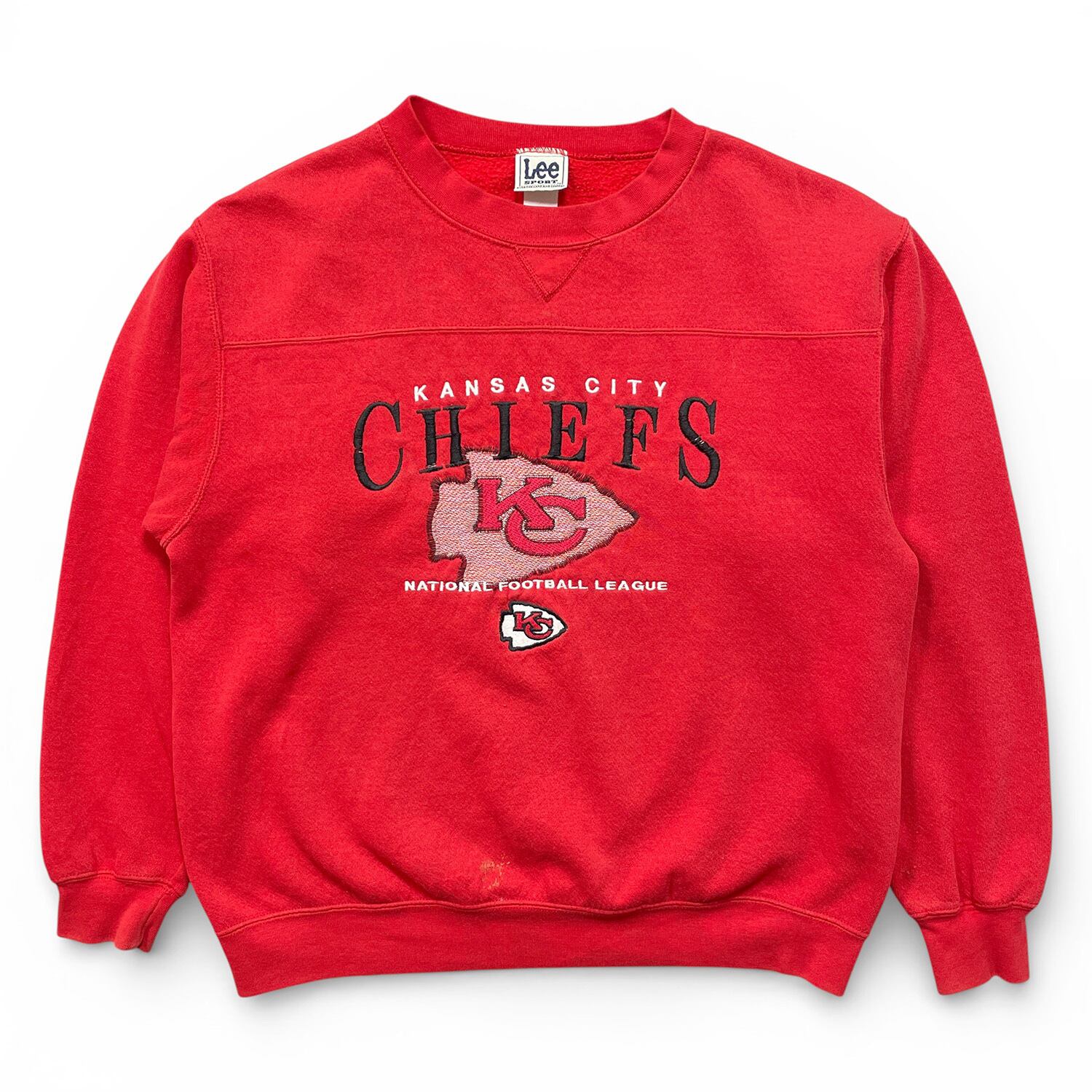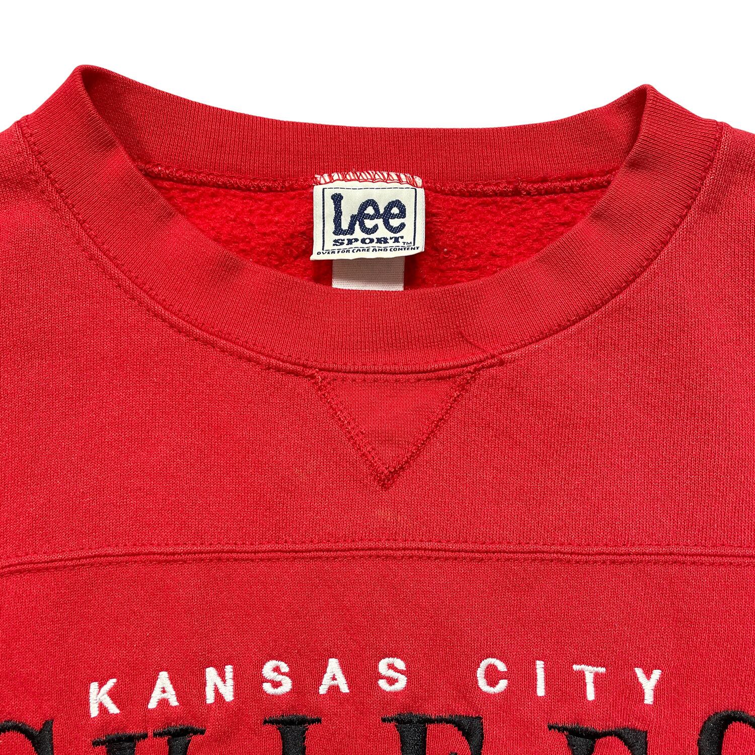 USA 古着 90S Lee リー NFL カンザスシティチーフス 前V ガゼット ヴィンテージ クルーネック スウェット トレーナー 刺繍 メンズL 程度 レッド BD3505