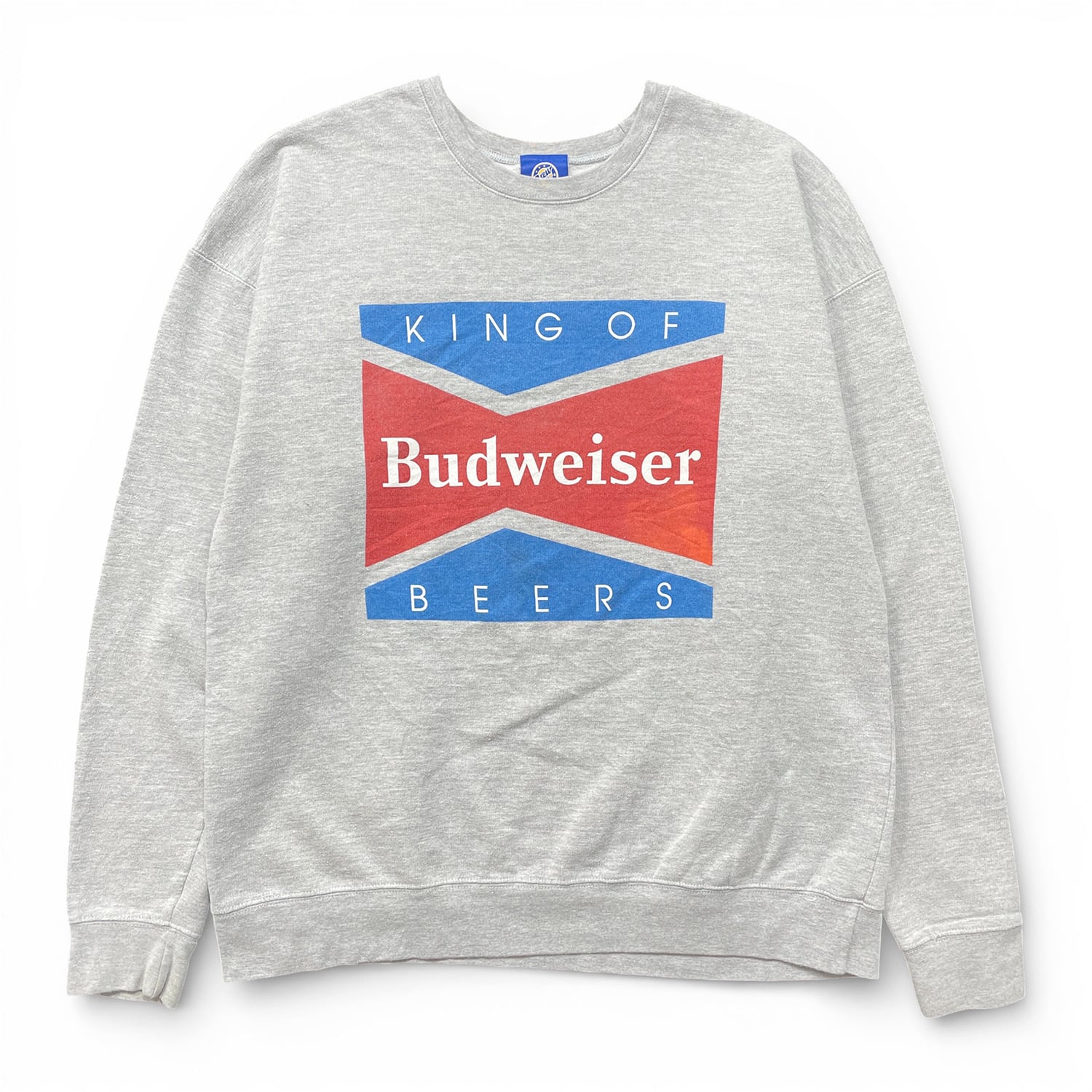 USA 古着 Budweiser バドワイザー 企業系 ロゴ クルーネック スウェット トレーナー プリント メンズL グレー BD3588