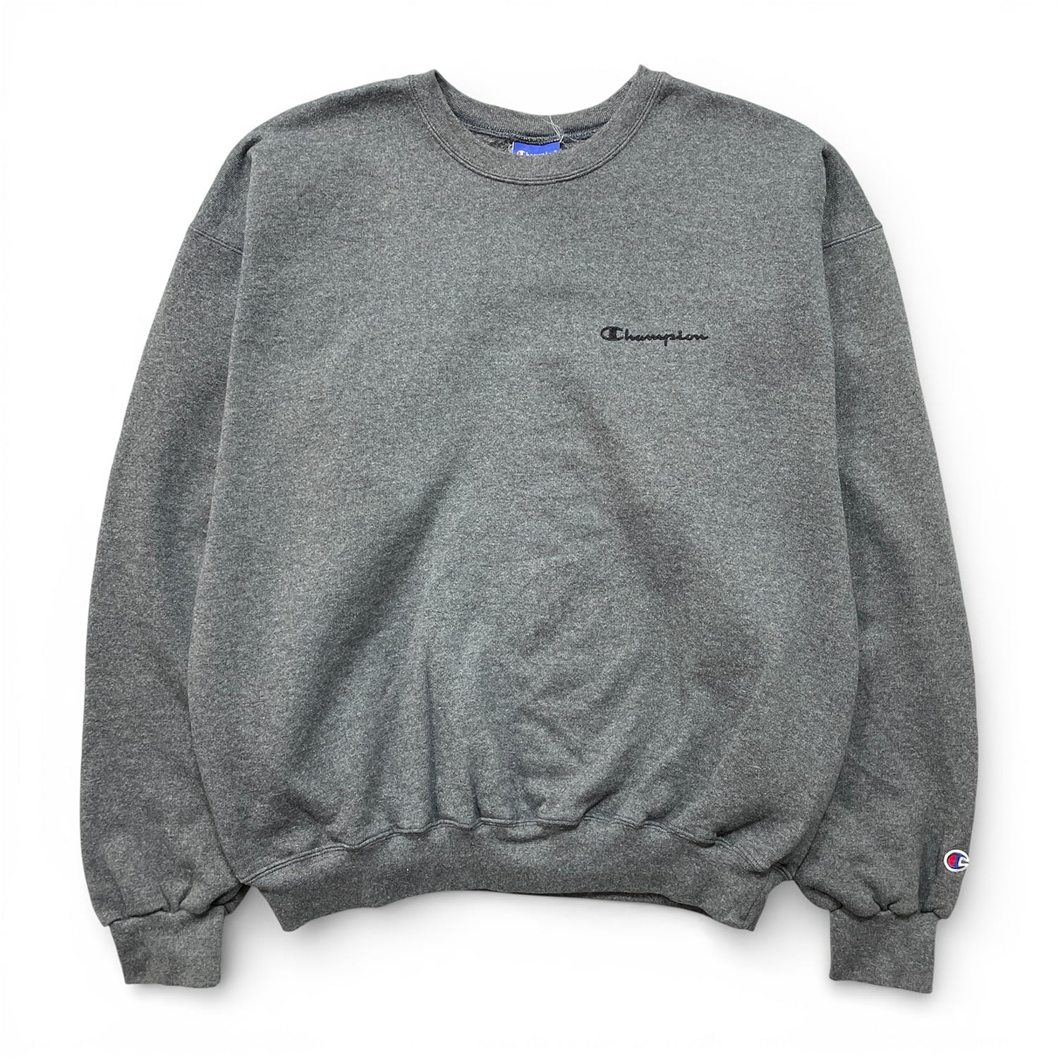 古着 00S Champion チャンピオン クルーネック スウェット トレーナー 刺繍 メンズL チャコールグレー BD3594