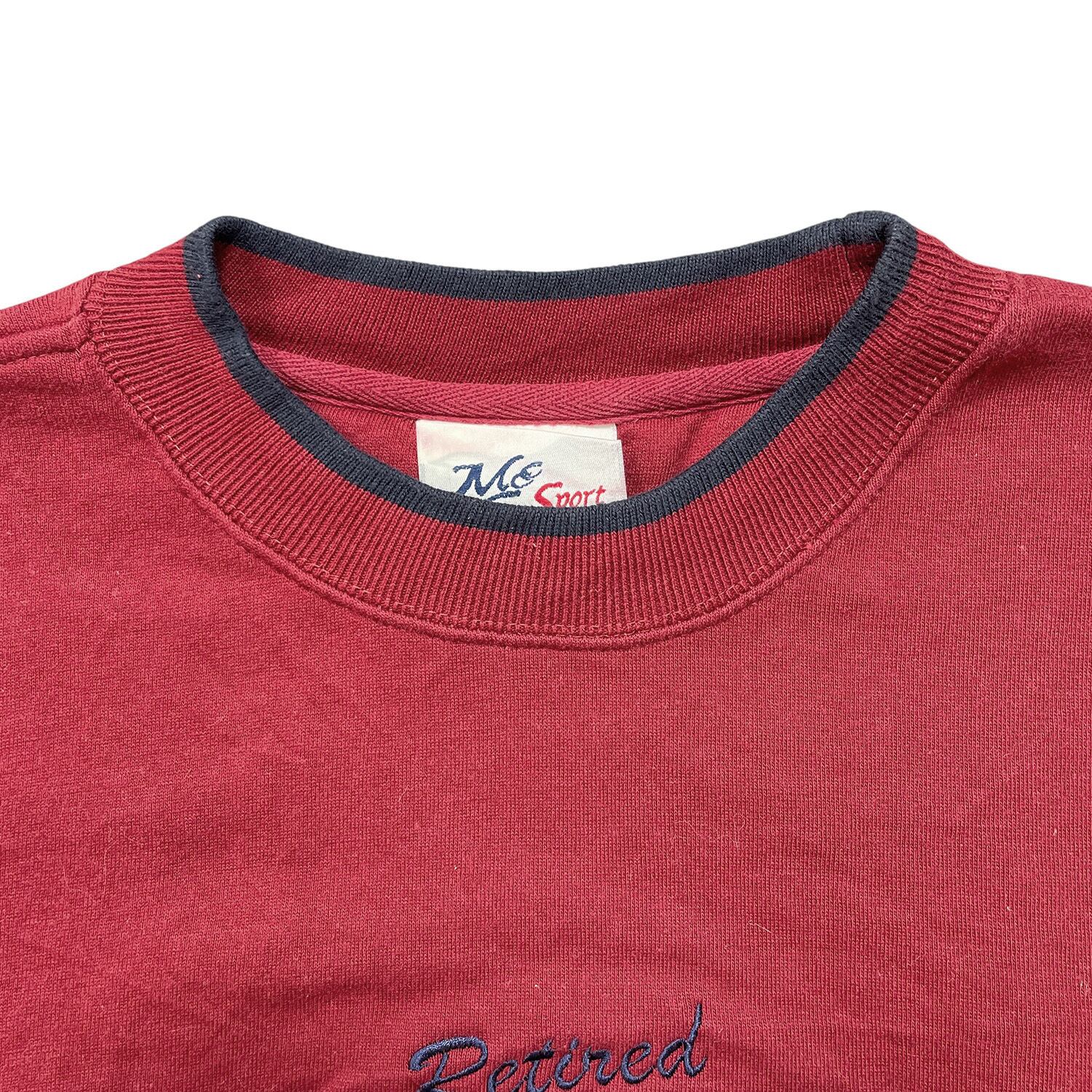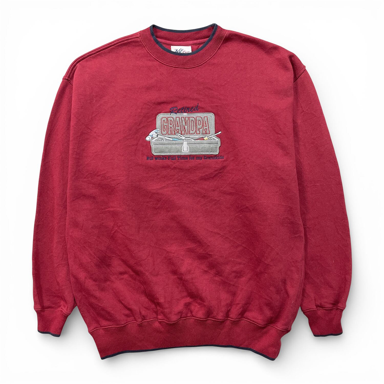 USA 古着 00S M&C Sport おじいちゃん クルーネック スウェット トレーナー 刺繍 メンズXL ボルドー BD3595