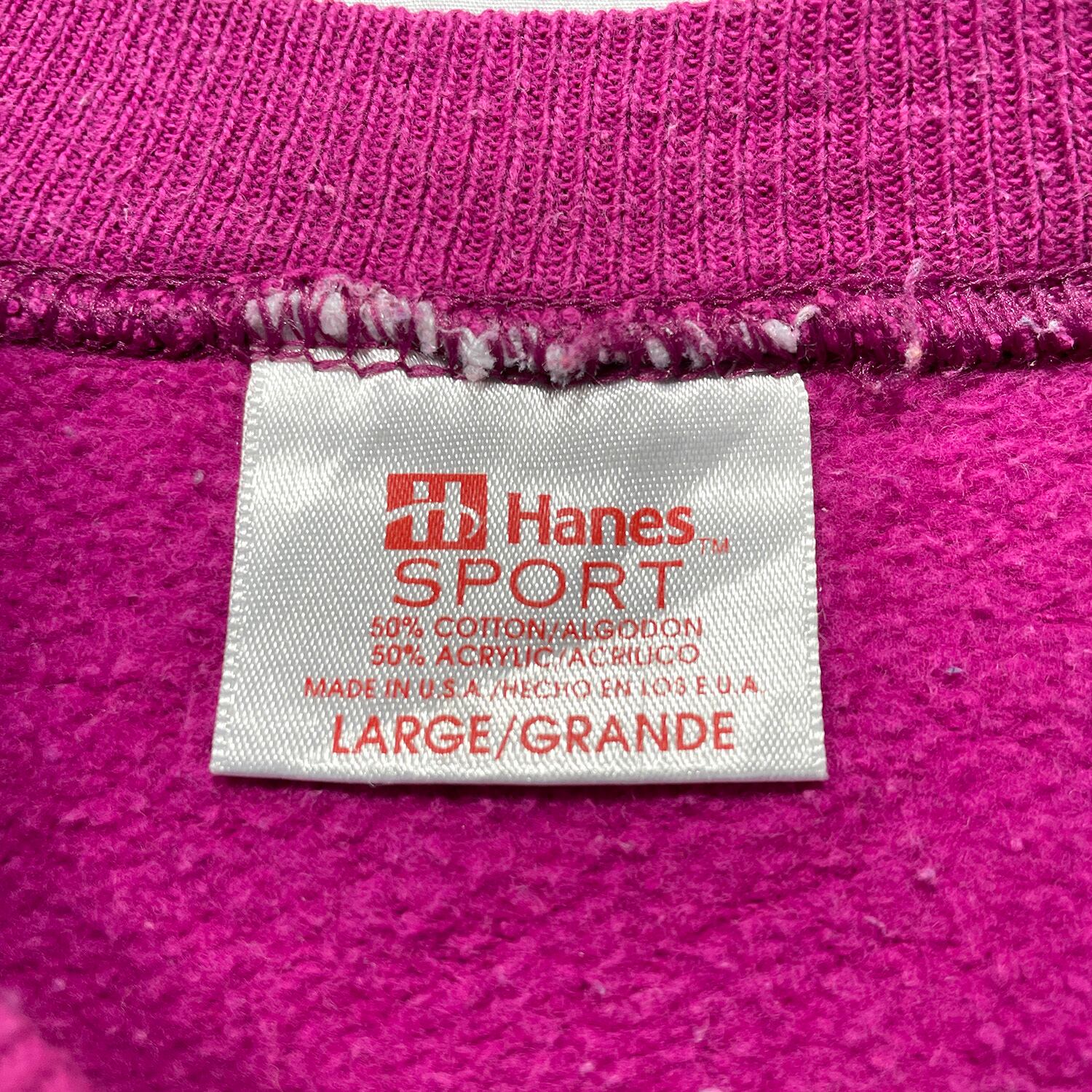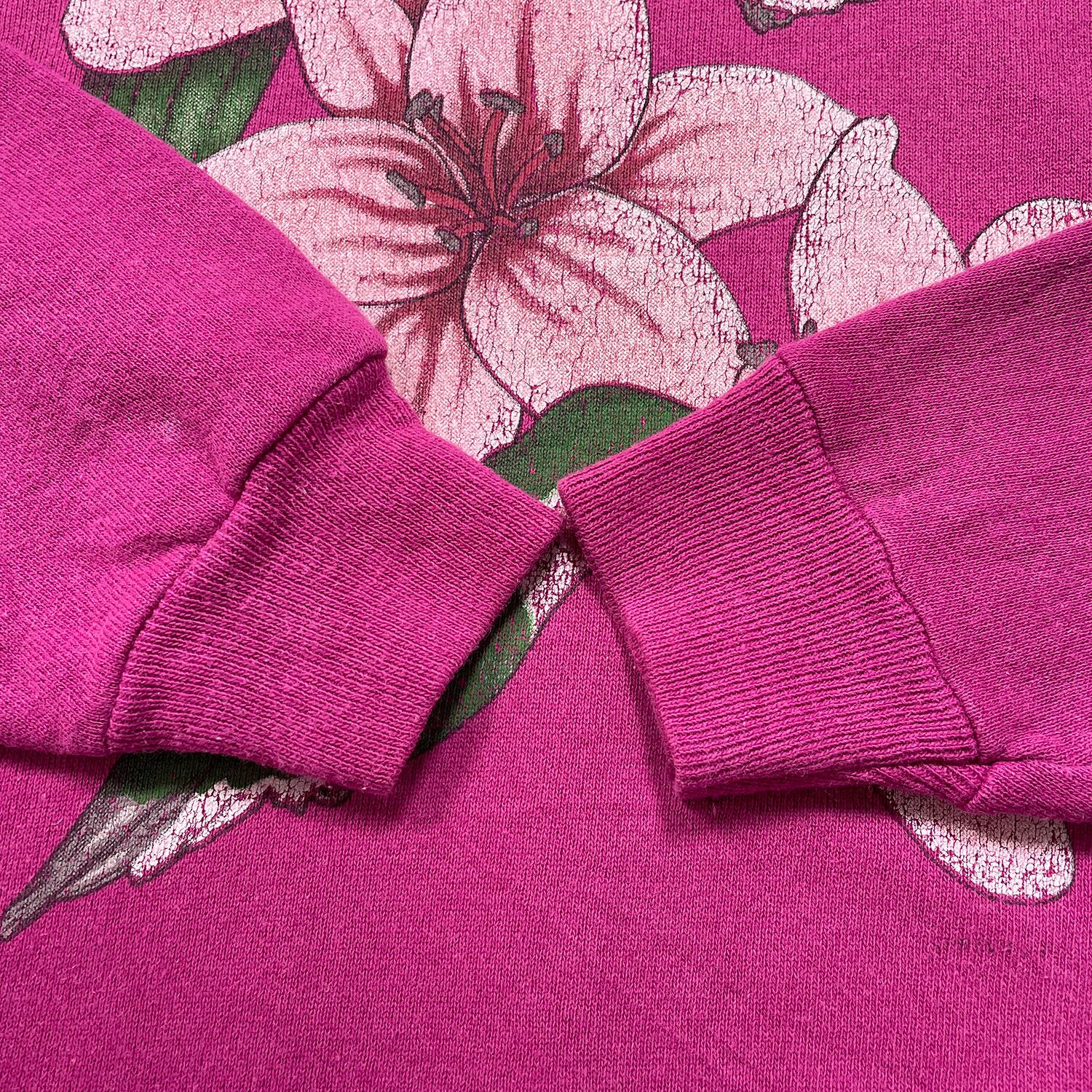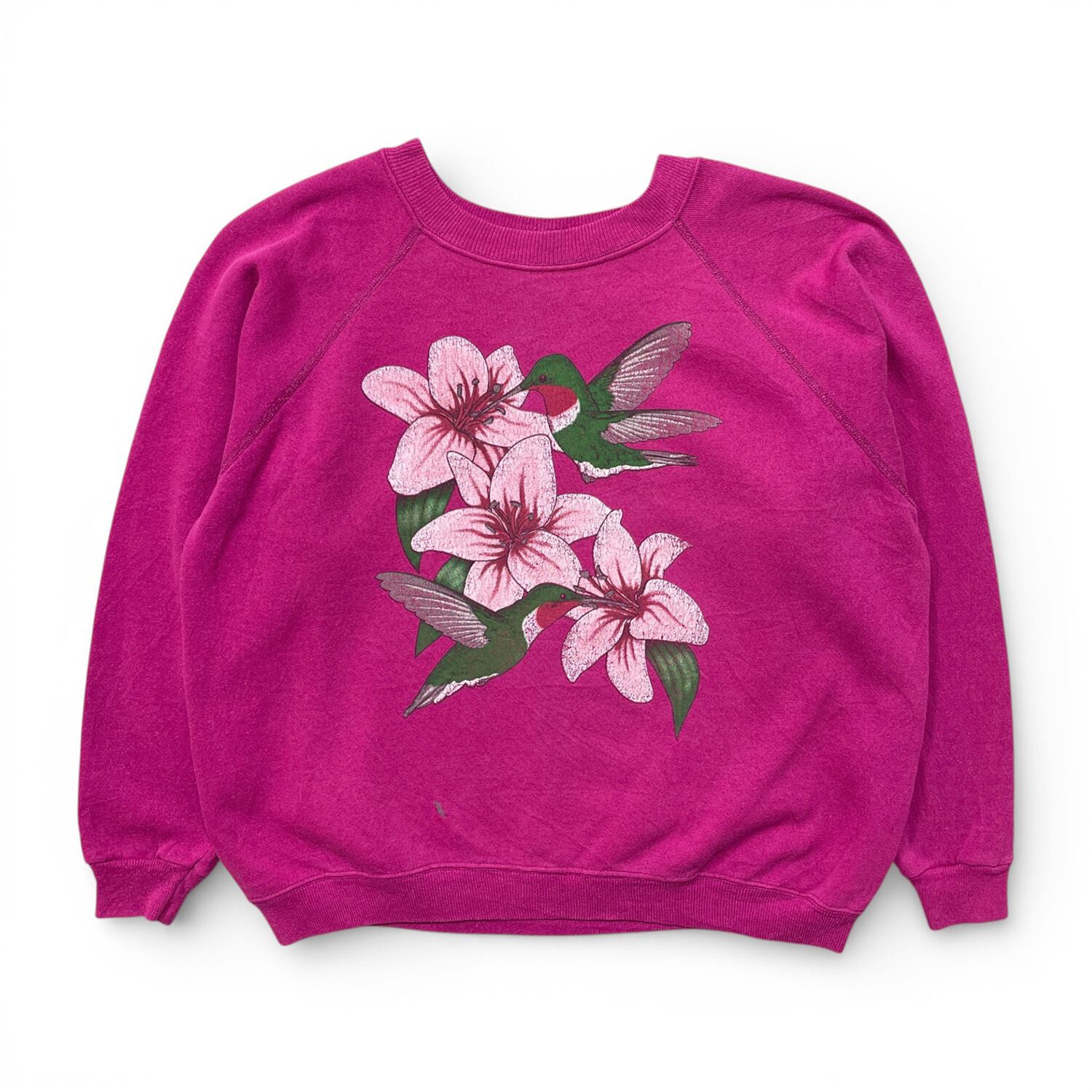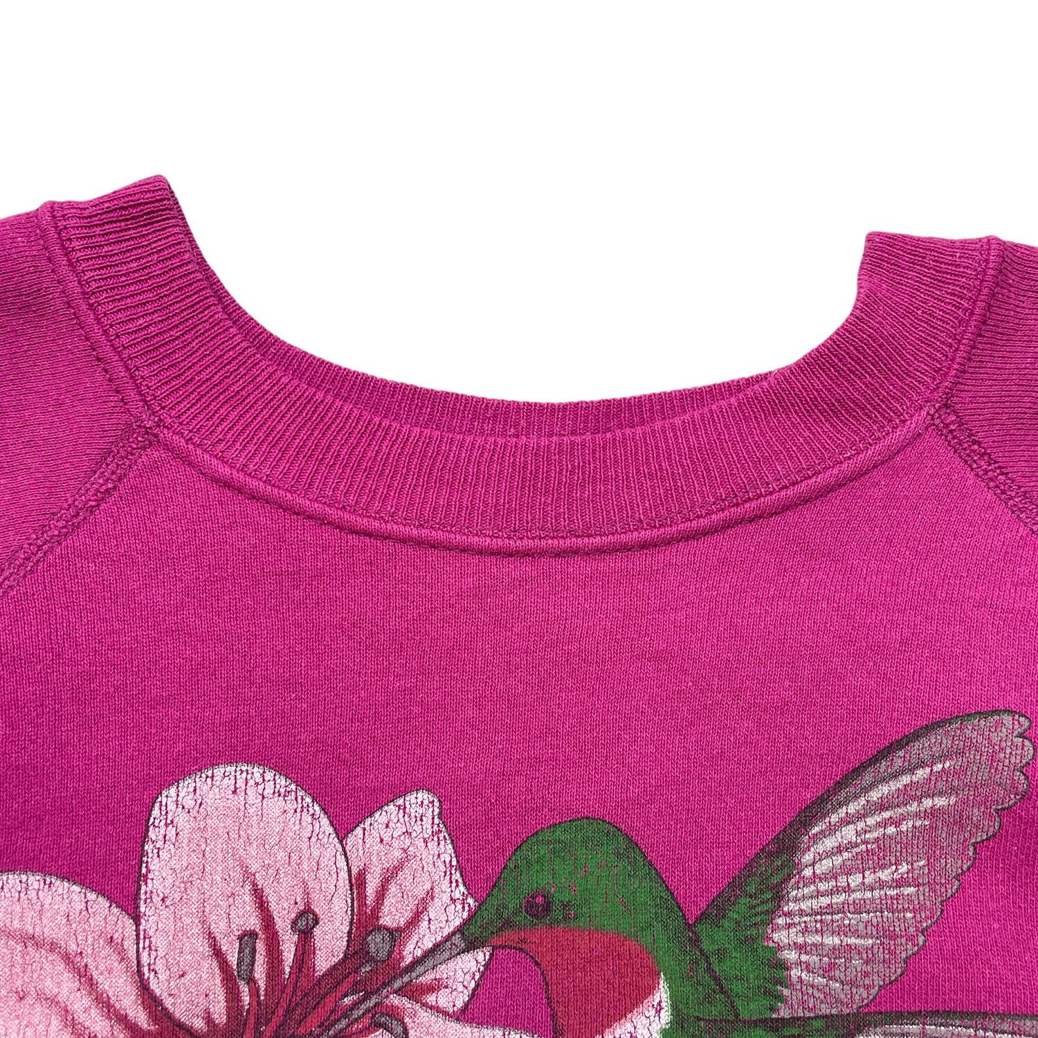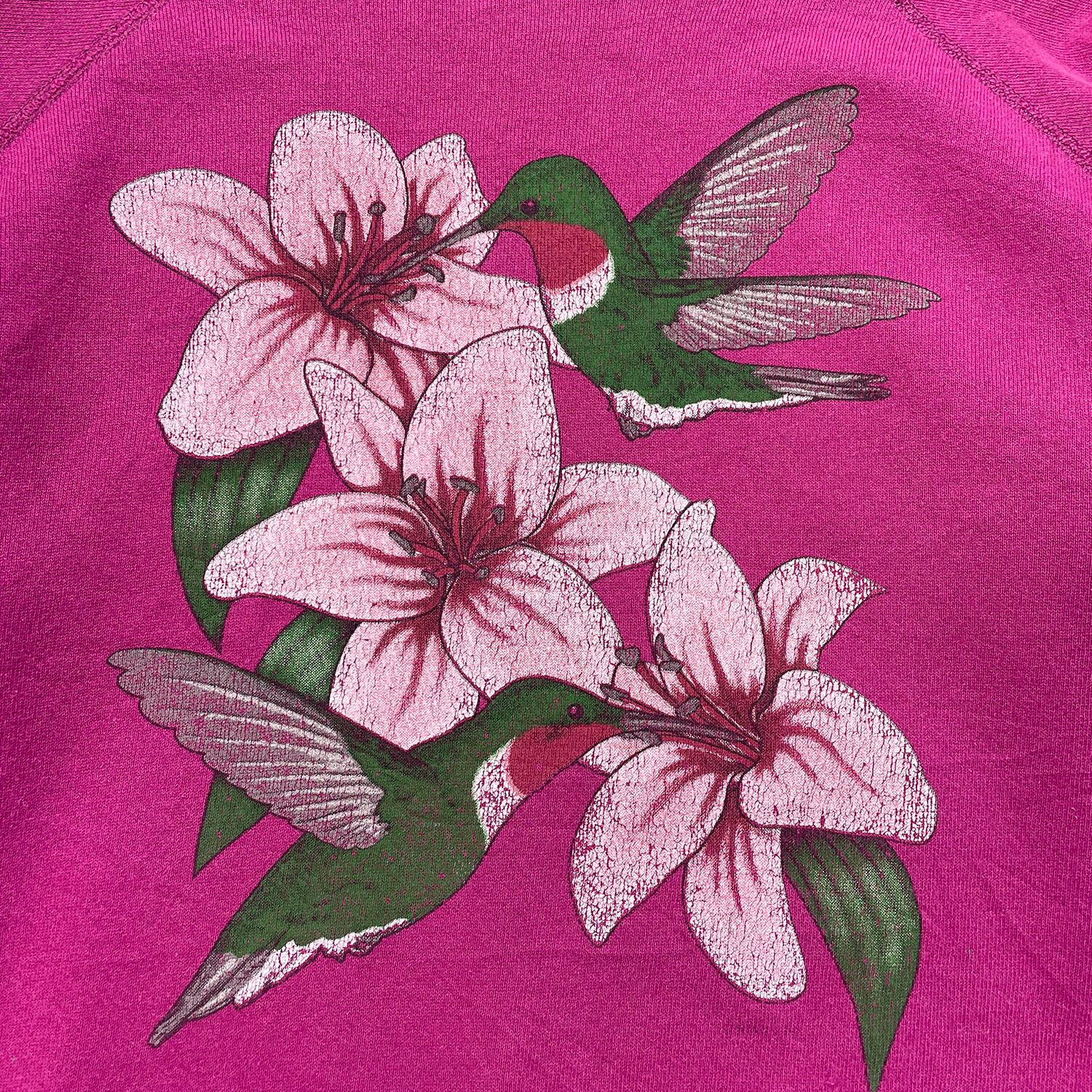 古着 USA製 90S Hanes SPORT ヘインズスポーツ ハチドリ 花柄 ヴィンテージ クルーネック スウェット トレーナー プリント レディースL マゼンタ ラグラン アニマル BD3612