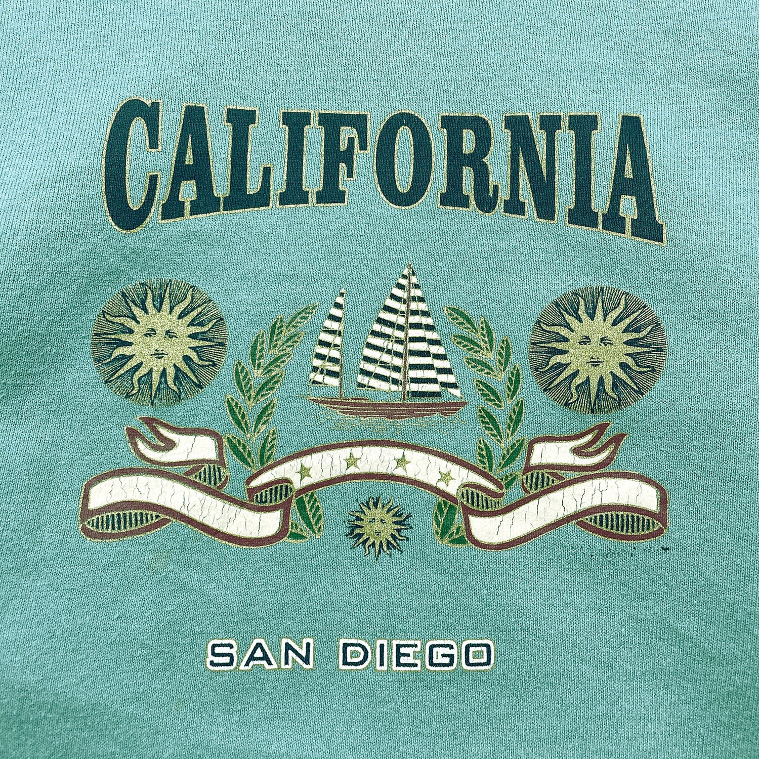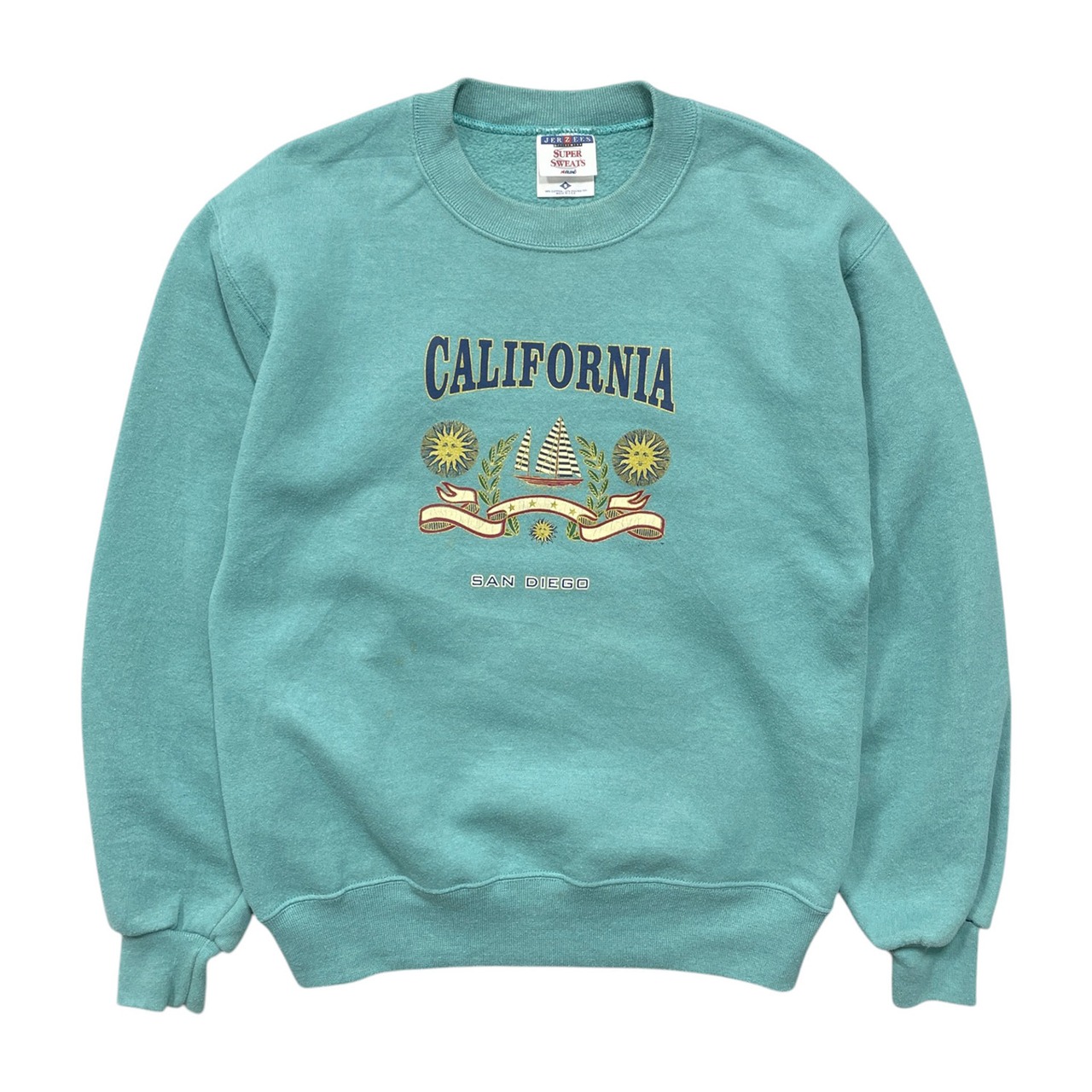 古着 USA製 90S JERZEES ジャージーズ カリフォルニア クルーネック スウェット トレーナー プリント メンズS グリーン BD3621
