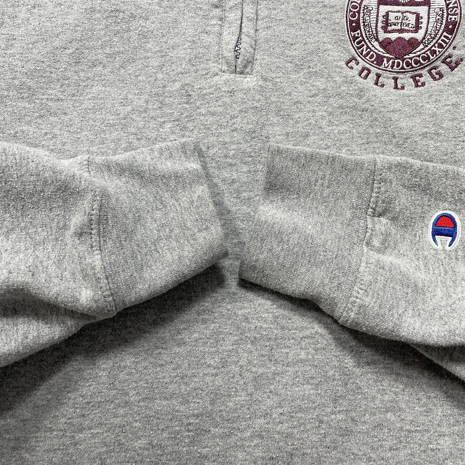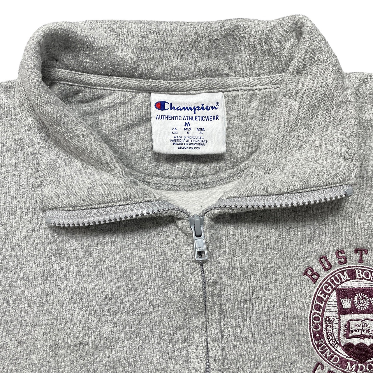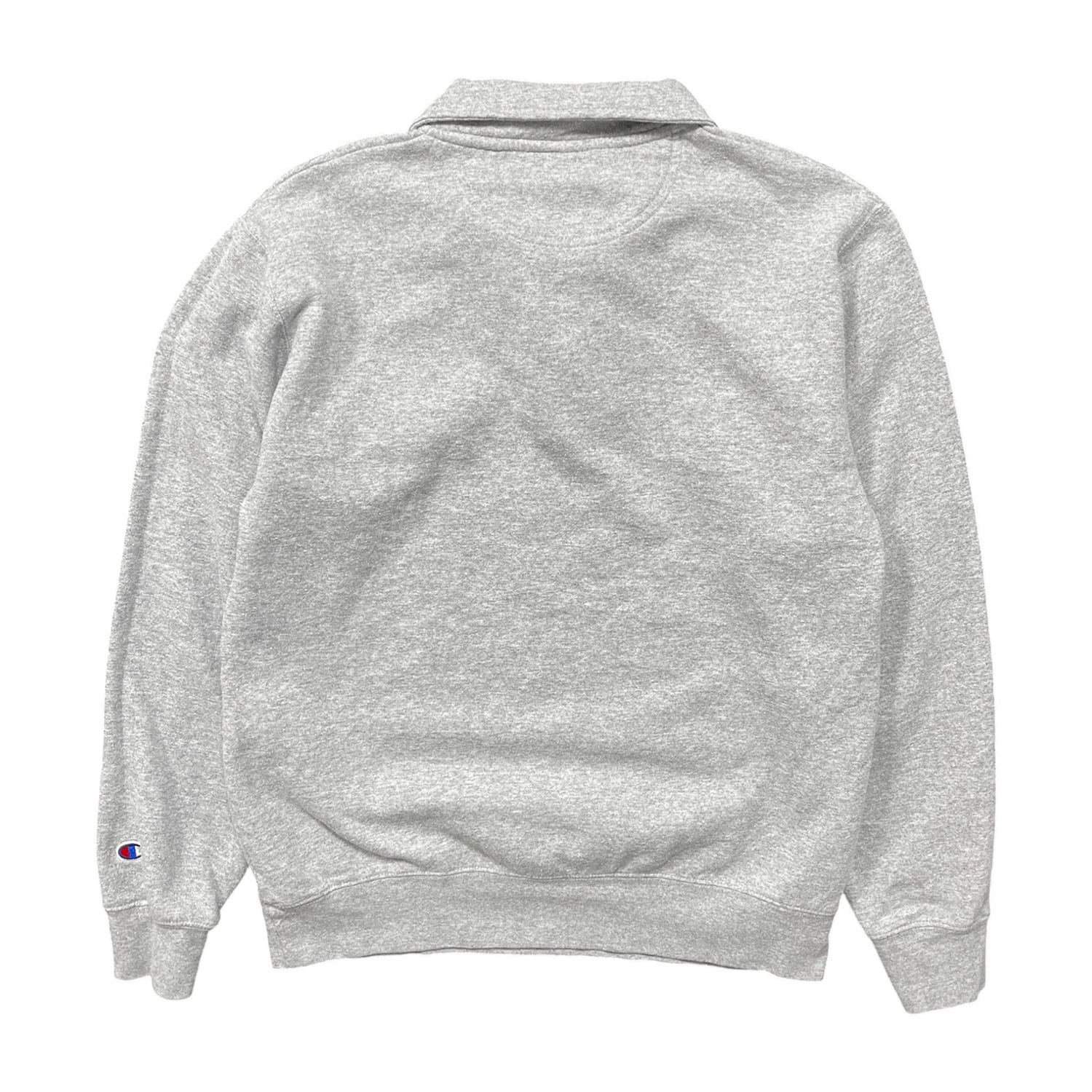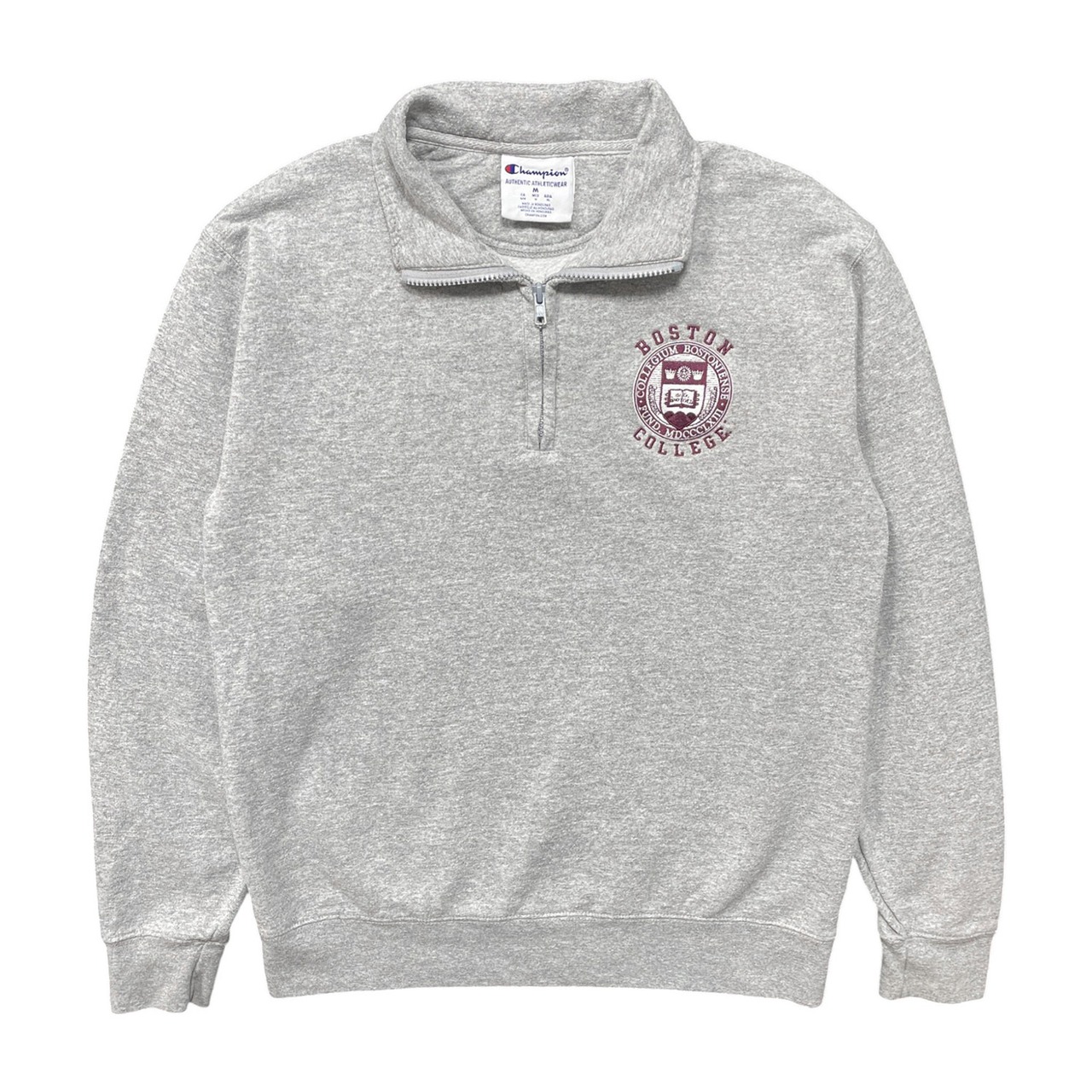 USA 古着 Champion チャンピオン ボストン大学 カレッジ ハーフジップ スウェット トレーナー 刺繍 メンズM グレー カレッジロゴ BD3626