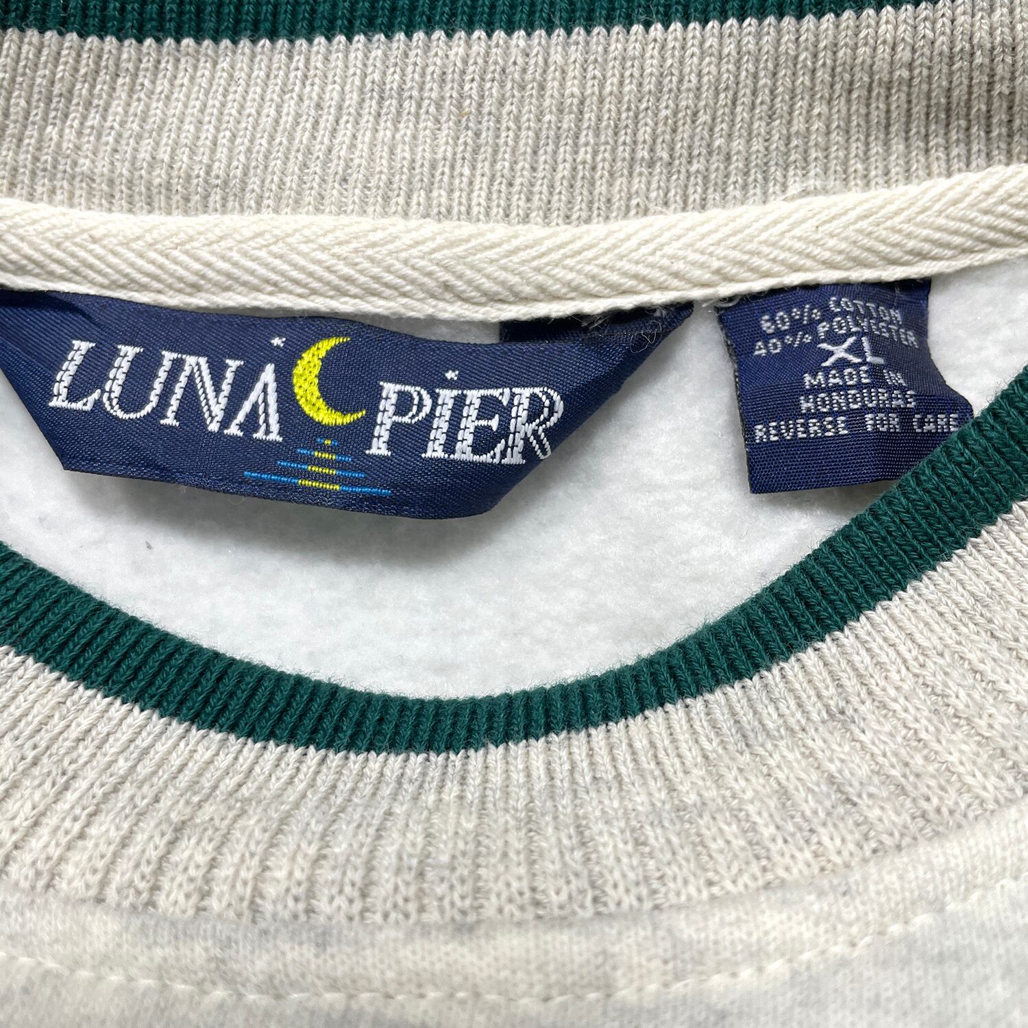 USA 古着 90S LUNA PIER ルナピア 西部砂糖協同組合 ヴィンテージ クルーネック スウェット トレーナー 刺繍 メンズXL グレー ワンポイント BD3634