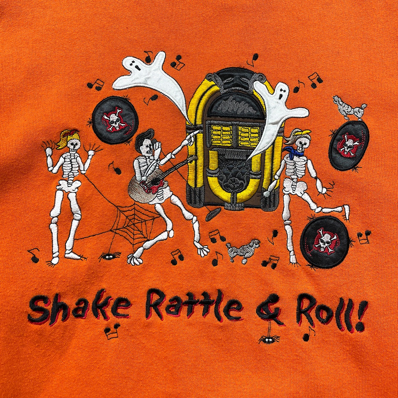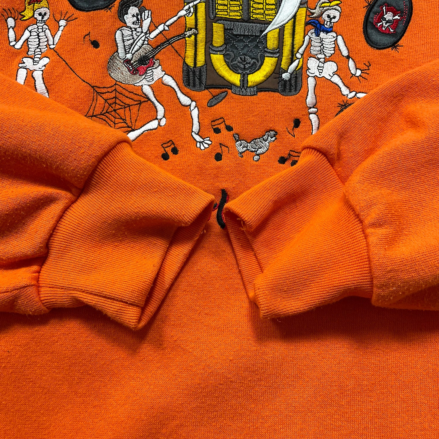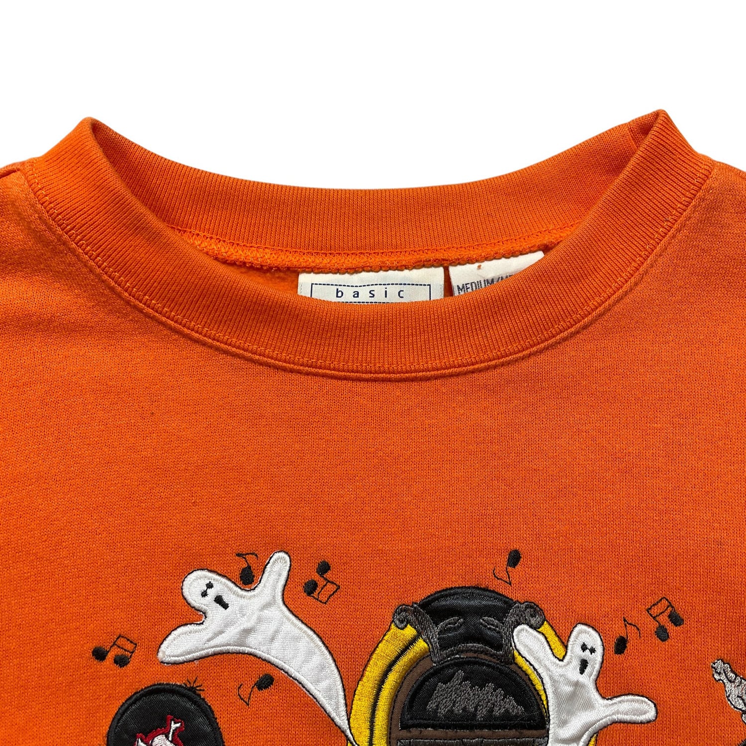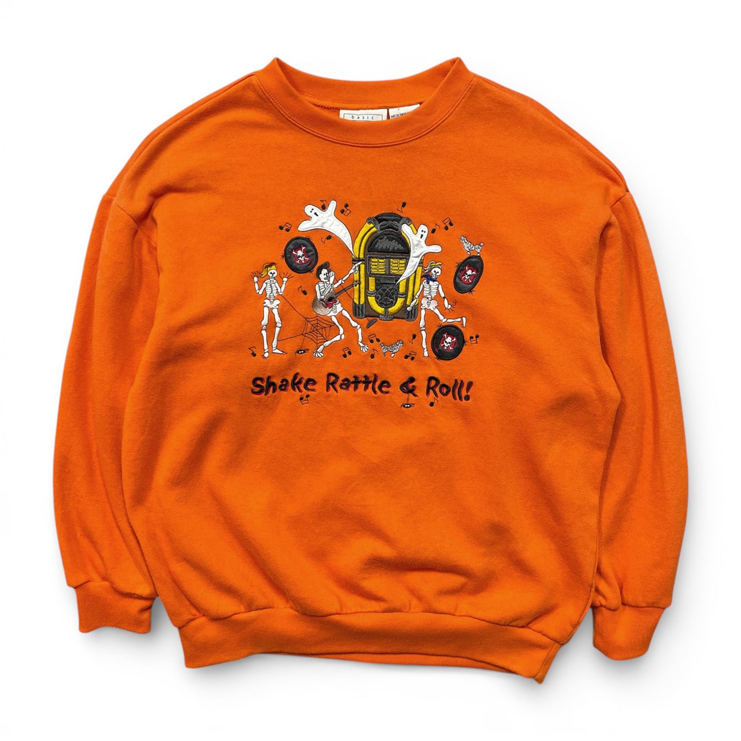USA 古着 90S basic EDITIONS ハロウィン ヴィンテージ クルーネック スウェット トレーナー ガイコツ 刺繍 メンズM オレンジ BD3636