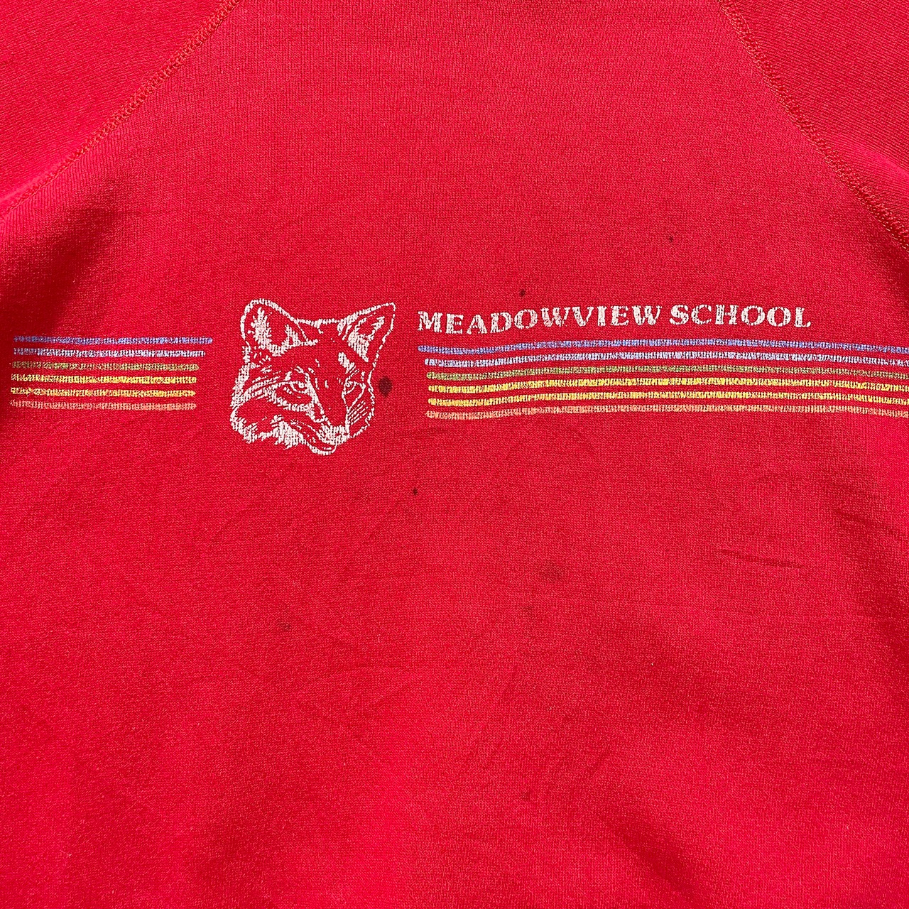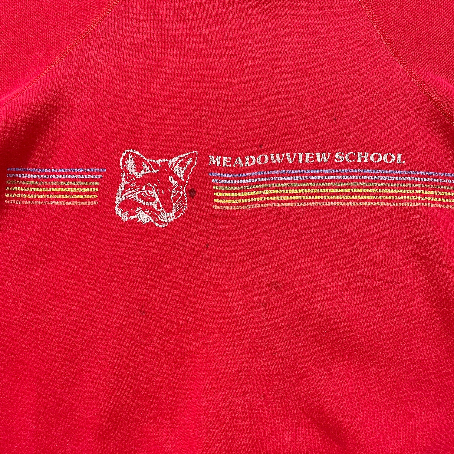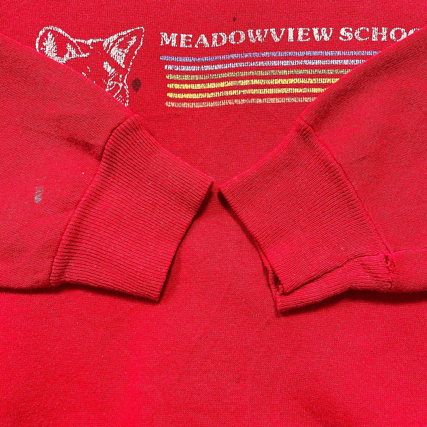 古着 USA製 80S Velva Sheen ベルバシーン メドウビュー学校 ヴィンテージ クルーネック スウェット トレーナー プリント メンズL レッド BD3638
