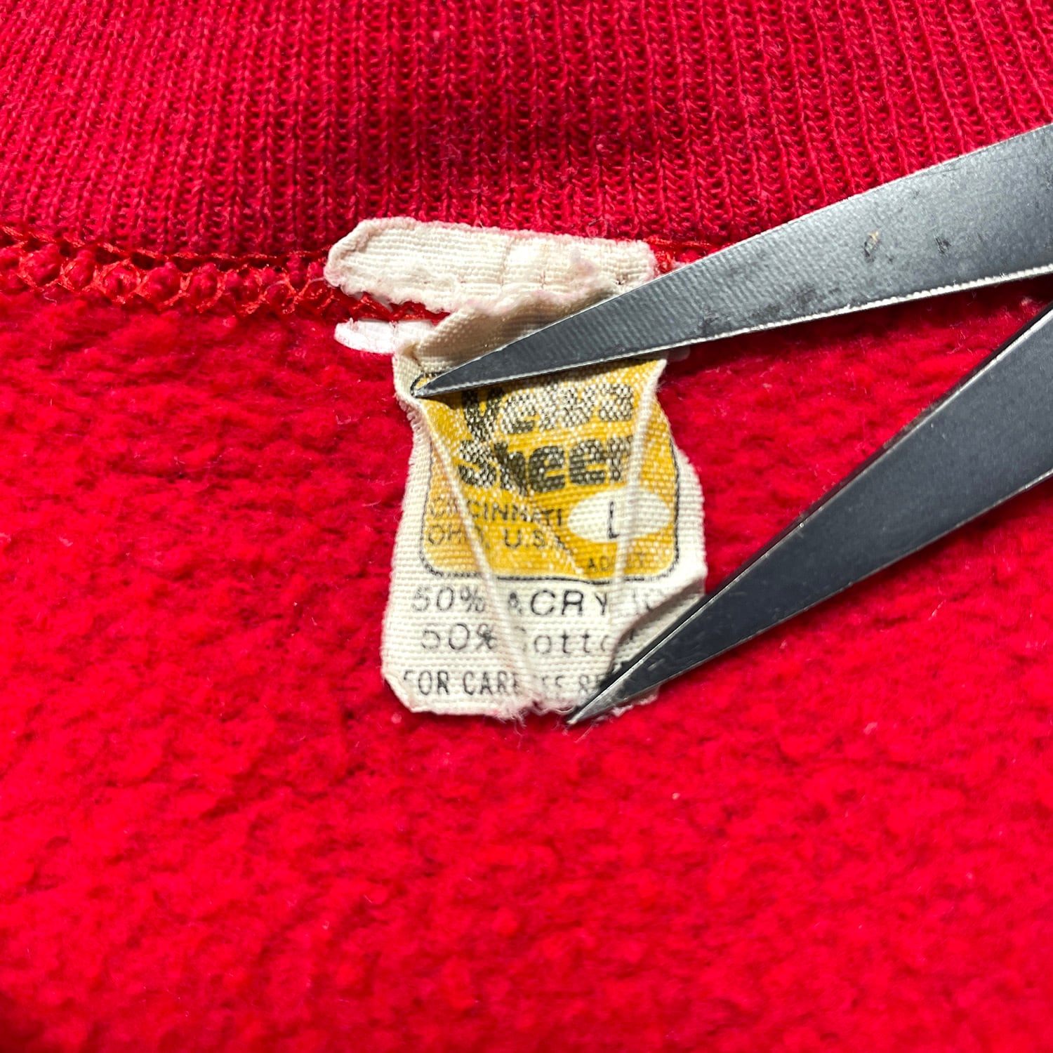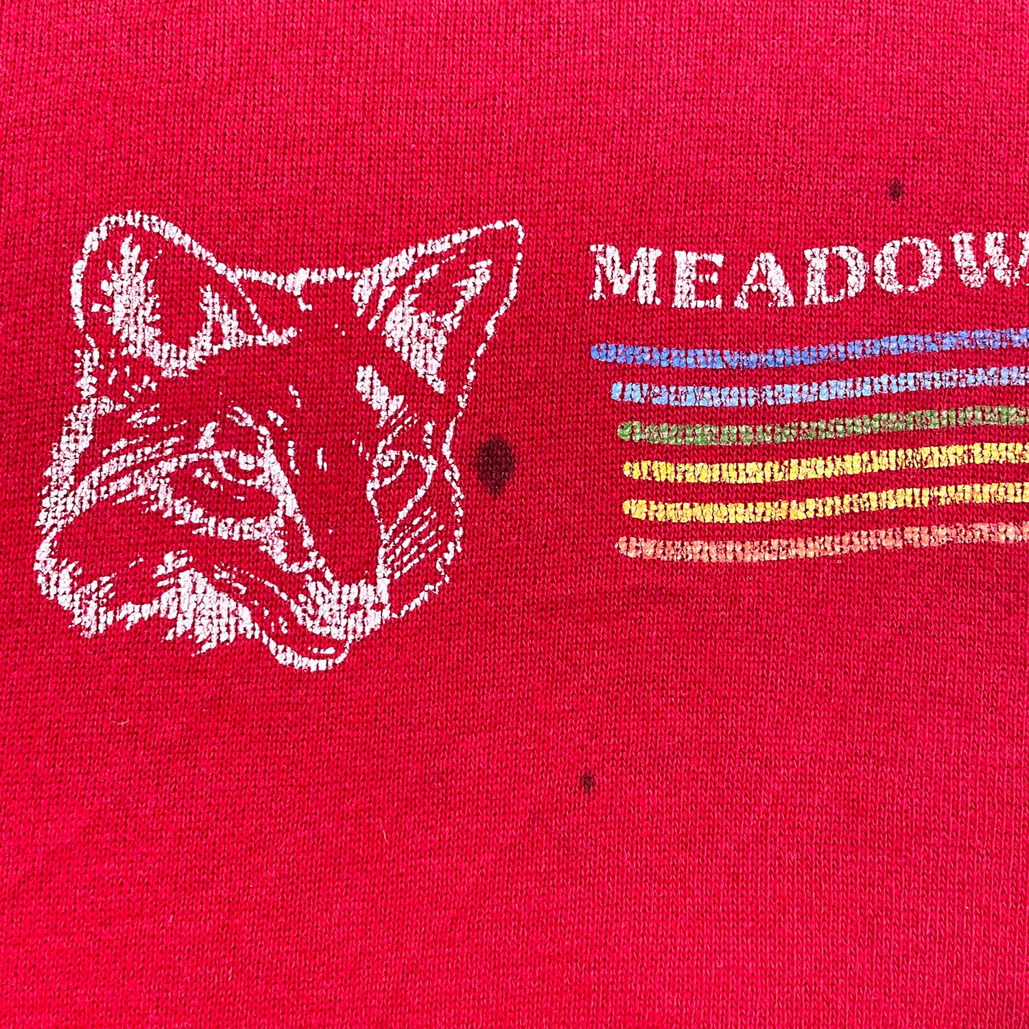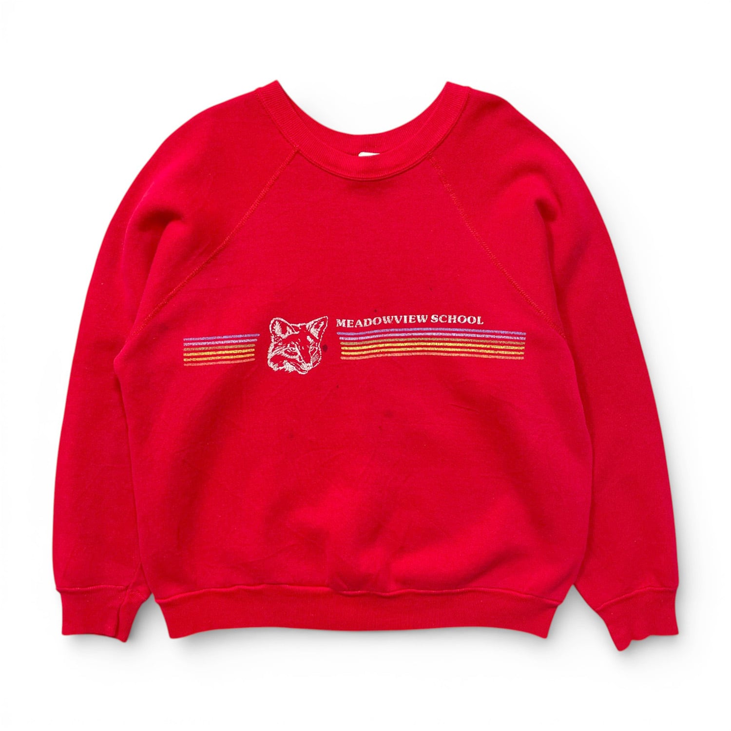 古着 USA製 80S Velva Sheen ベルバシーン メドウビュー学校 ヴィンテージ クルーネック スウェット トレーナー プリント メンズL レッド BD3638