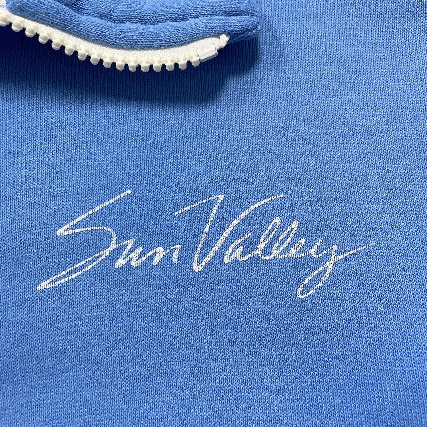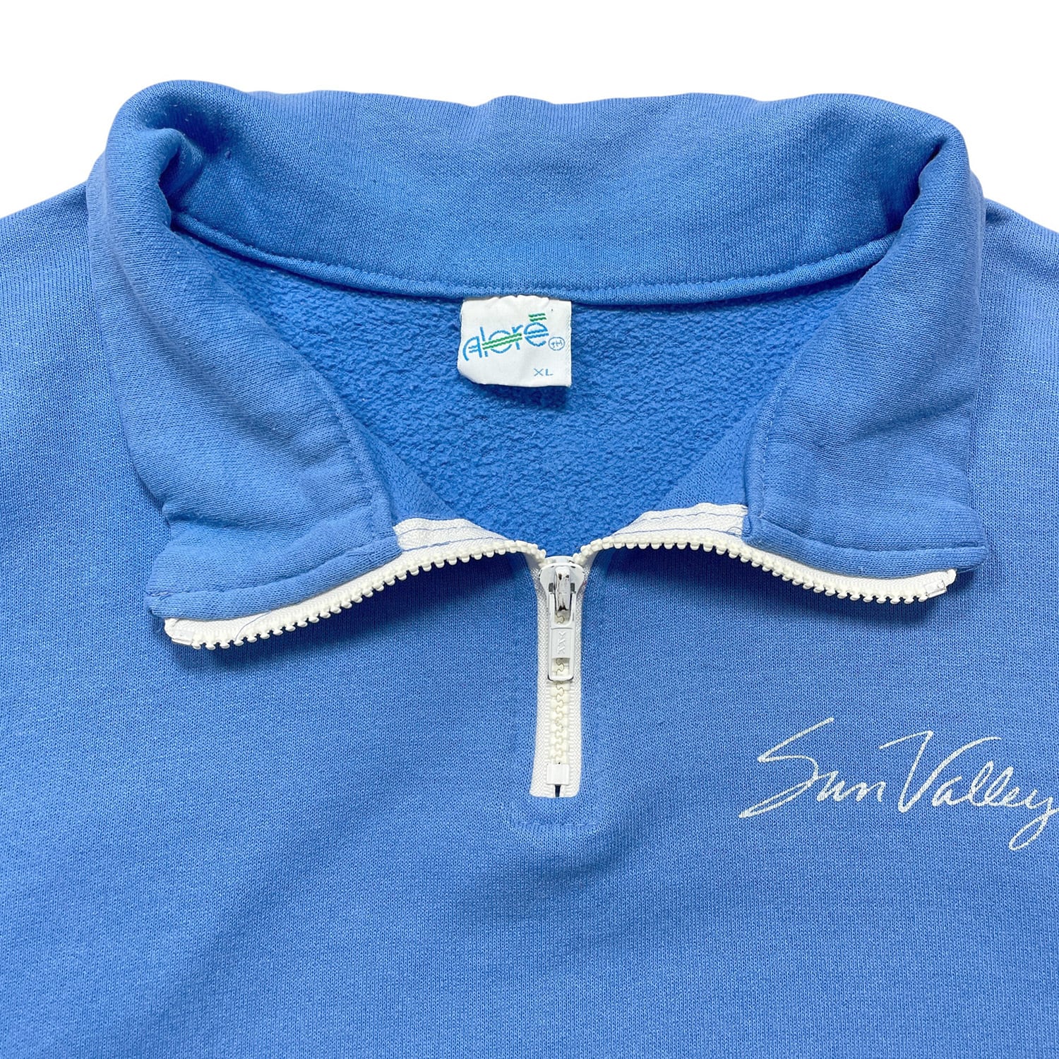 古着 USA製 90S Alore アローレ Sun Valley サンバレー ヴィンテージ ハーフジップ スウェット トレーナー プリント メンズXL ブルー BD3646