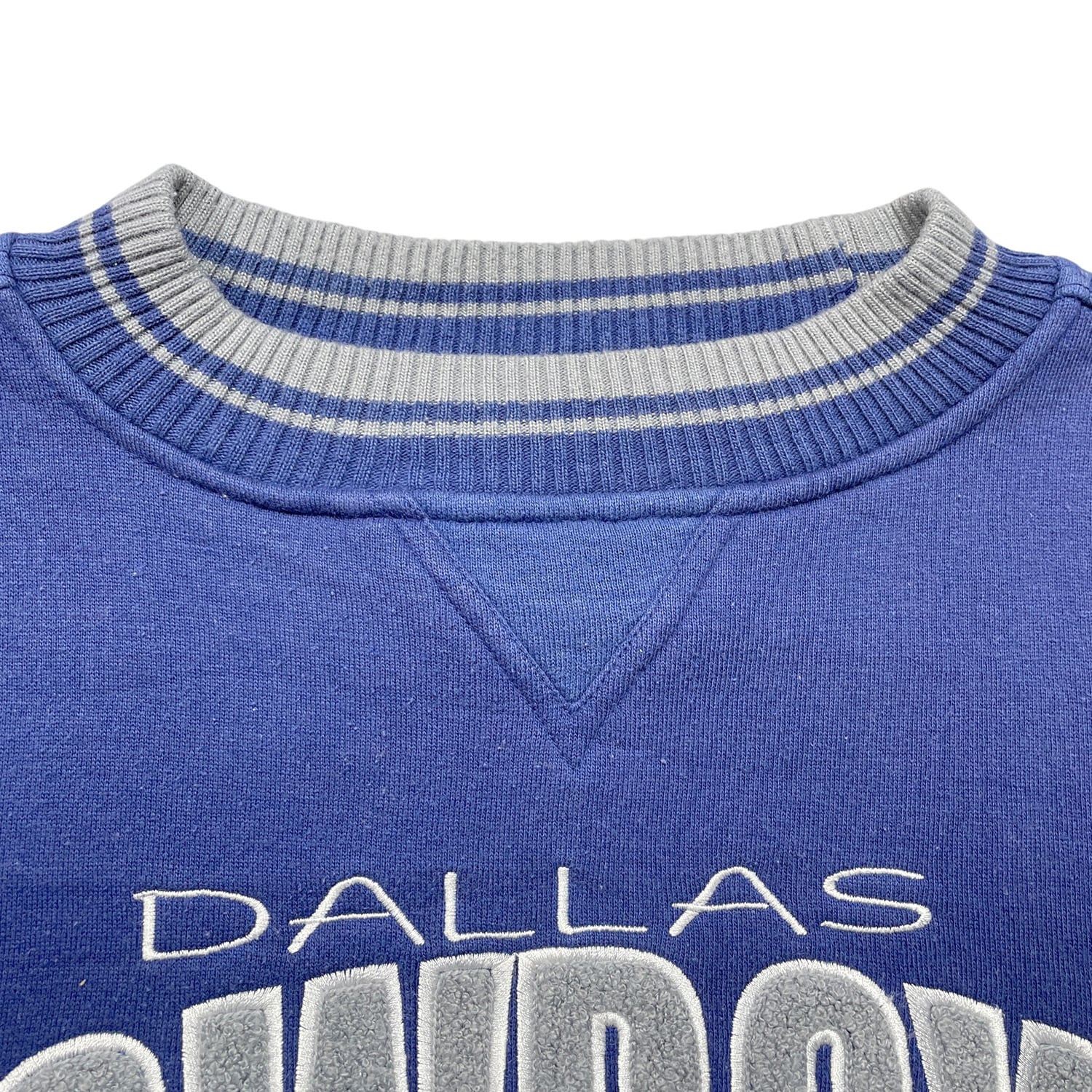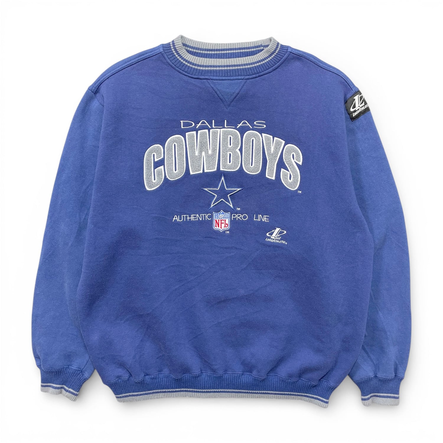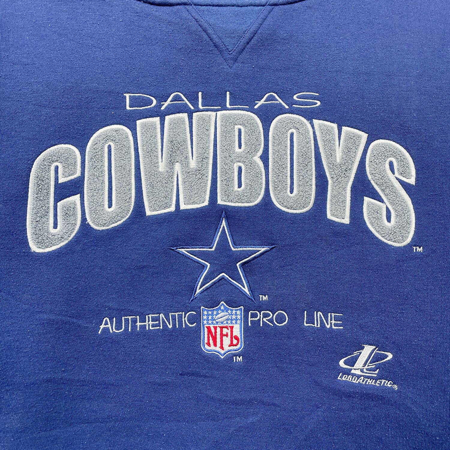 USA 古着 90S LOGO ATHLETIC NFL ダラスカウボーイズ ヴィンテージ 前V クルーネック スウェット トレーナー 刺繍 メンズXL ネイビー ヘビーウェイト BD3647