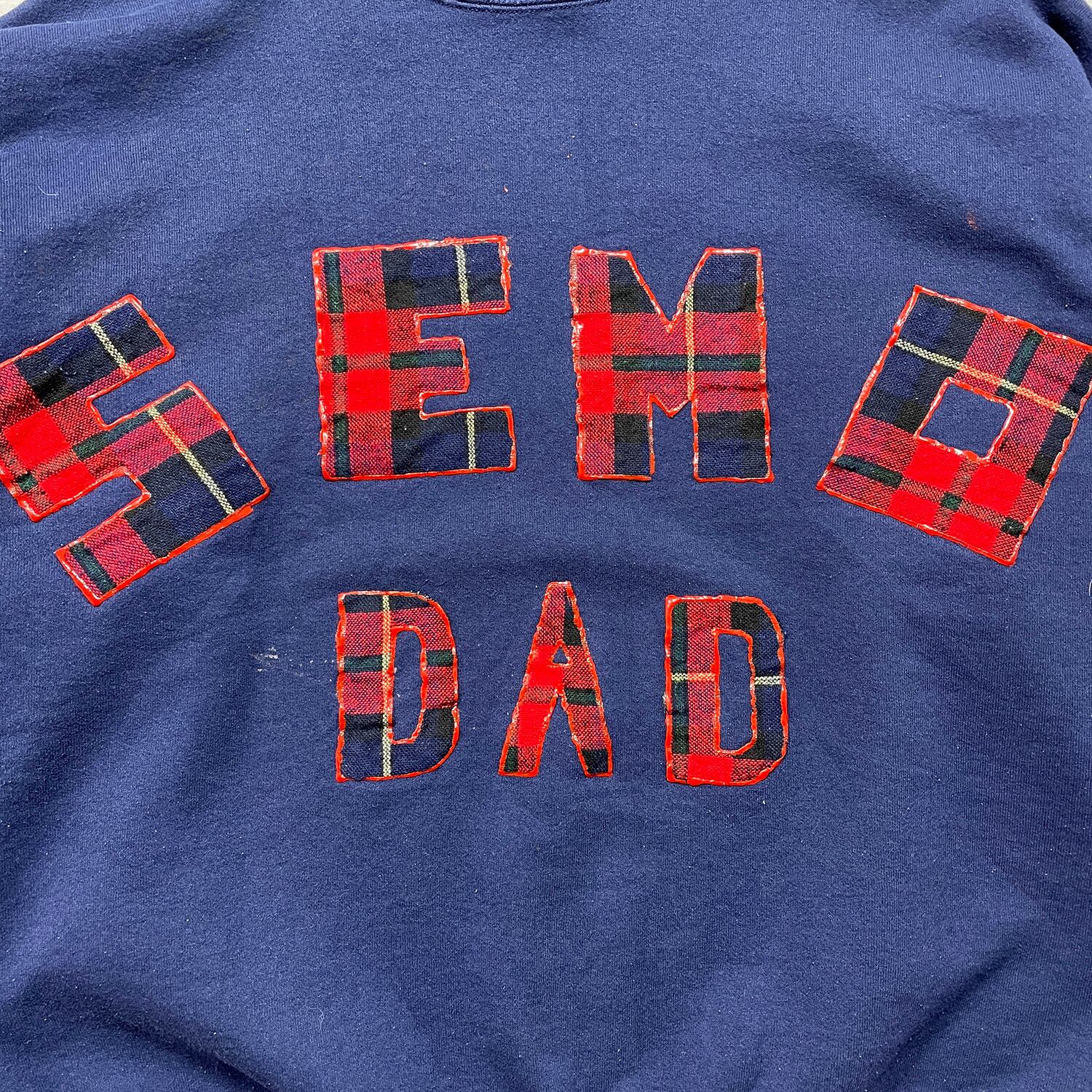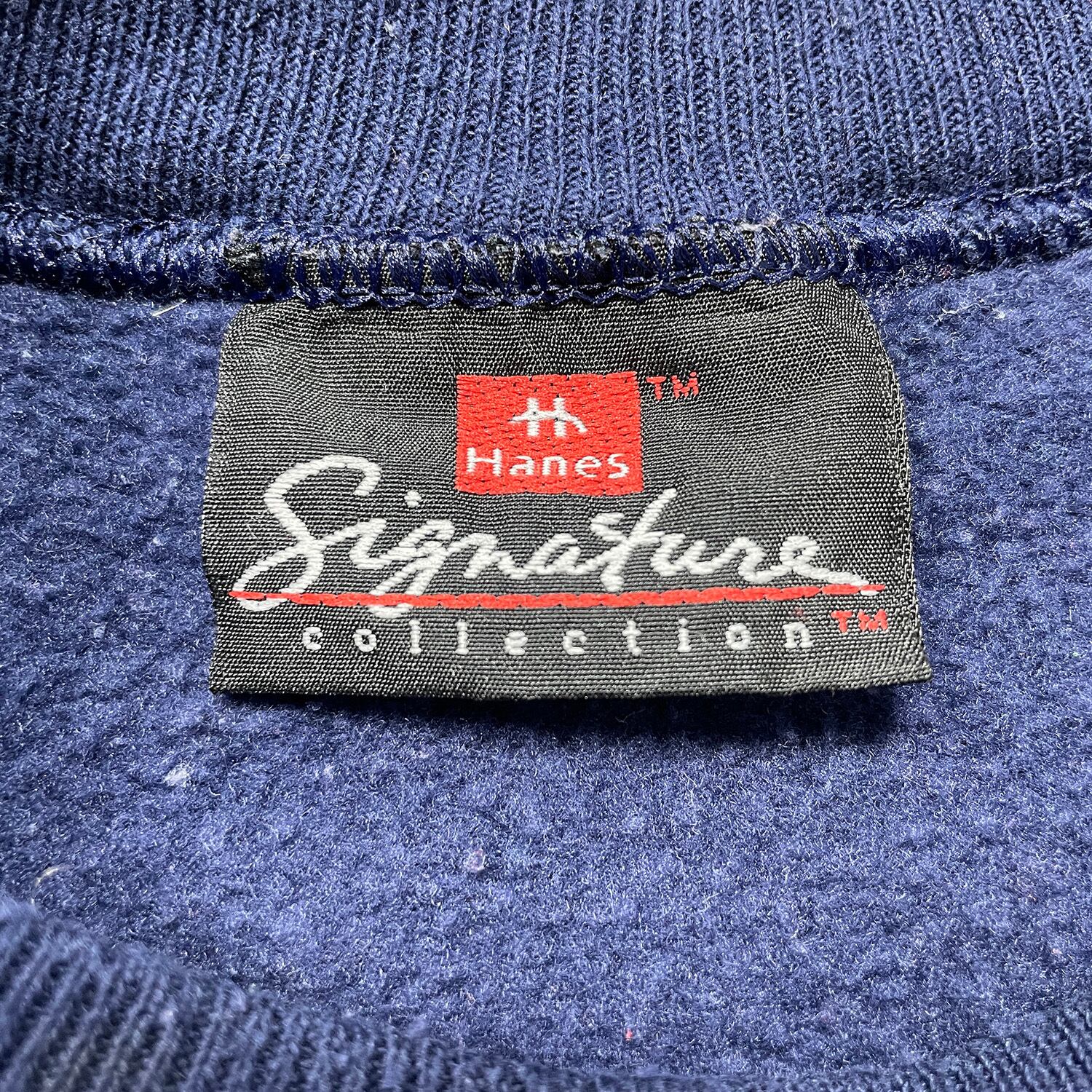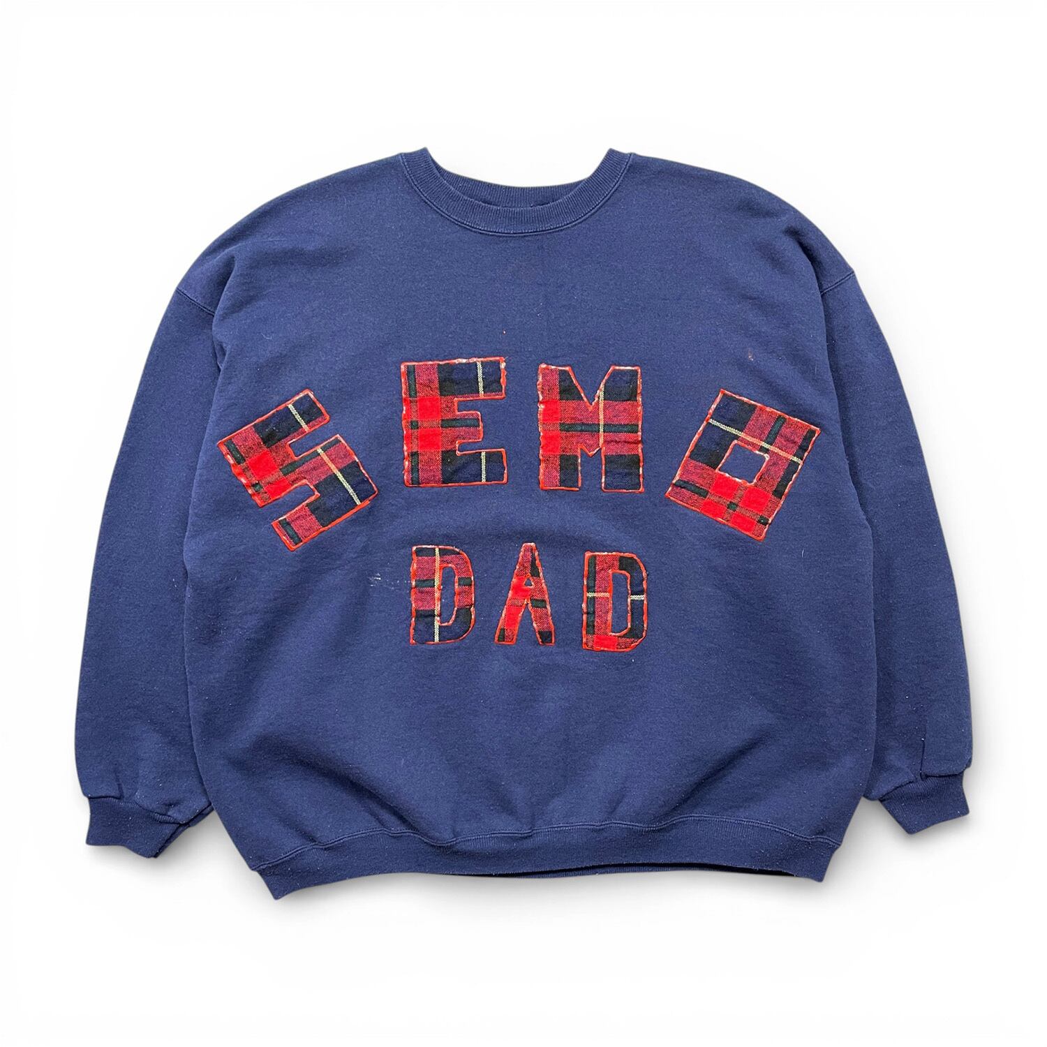 USA 古着 90S Hanes ヘインズ SEMO DAD ハンドペイント ヴィンテージ クルーネック スウェット トレーナー ワッペン メンズXL相当 ネイビー BD3656
