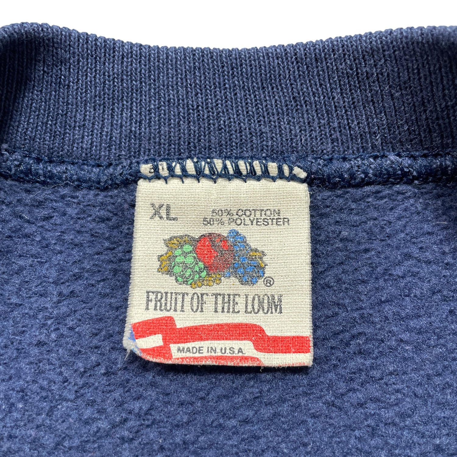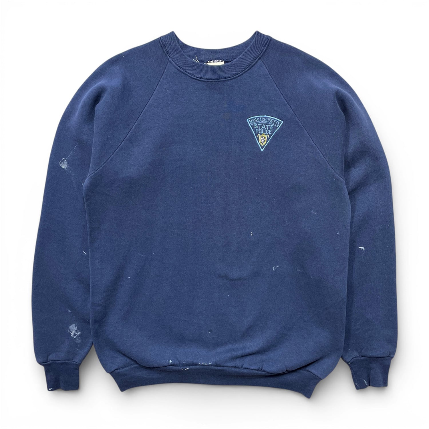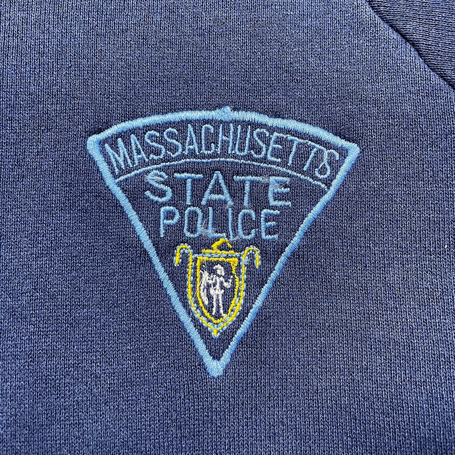 古着 USA製 90S FRUIT OF THE LOOM フルーツオブザルーム マサチューセッツ州警察 クルーネック スウェット トレーナー 刺繍 メンズXL ネイビー BD3657