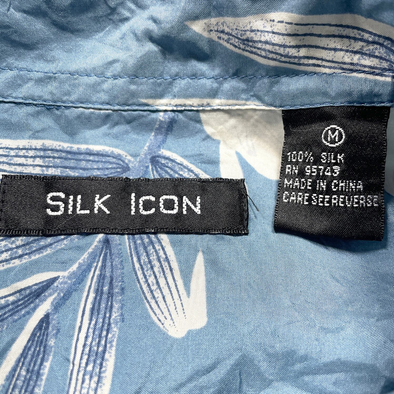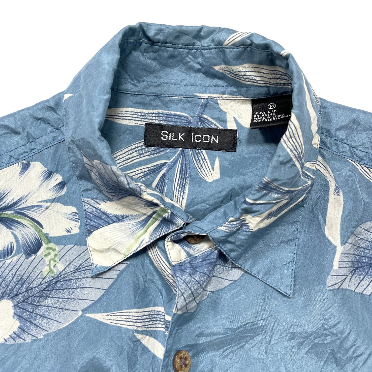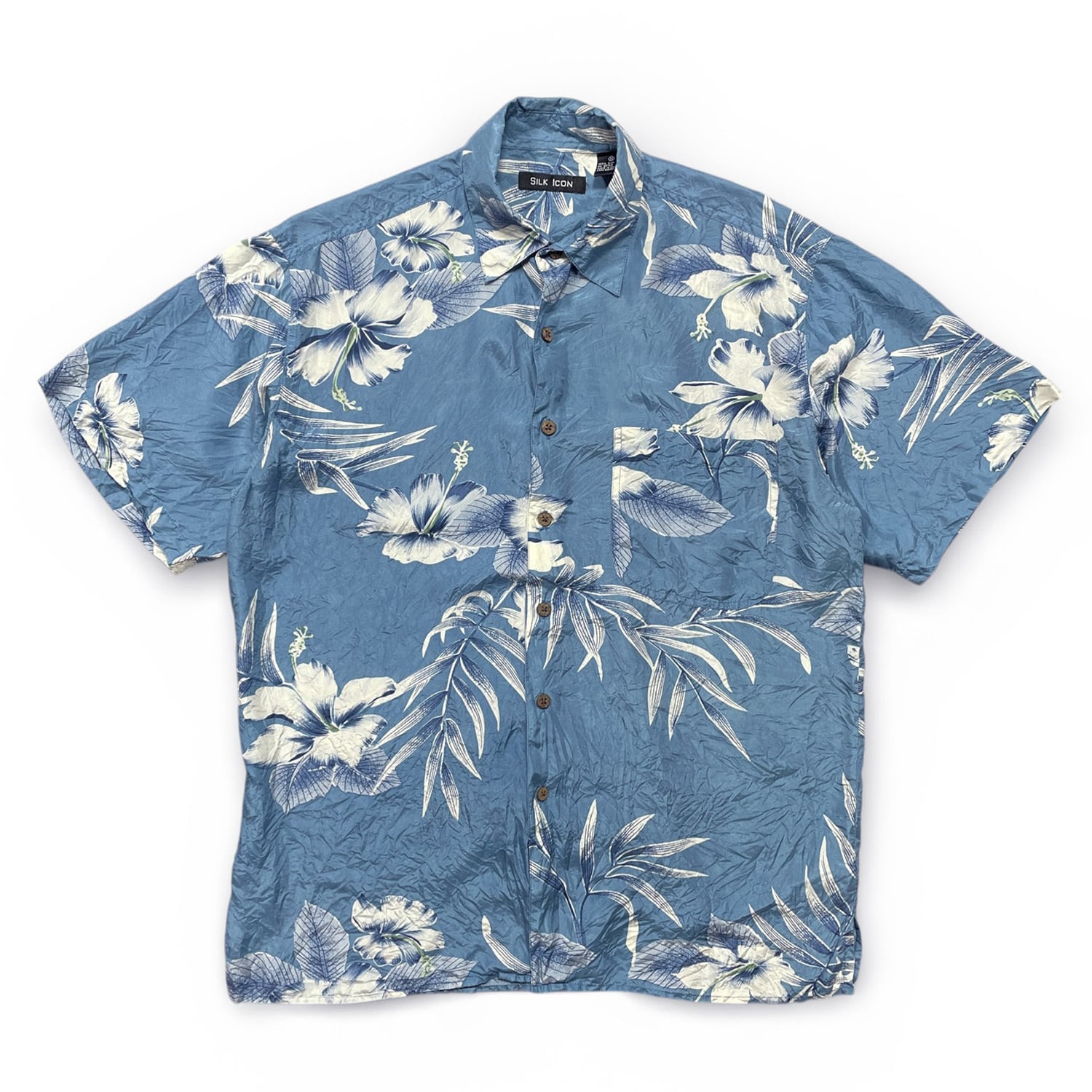 USA 古着 SILK ICON シルクアイコン ヴィンテージ シルク ハワイアンシャツ アロハシャツ ハイビスカス柄 メンズM BF3858