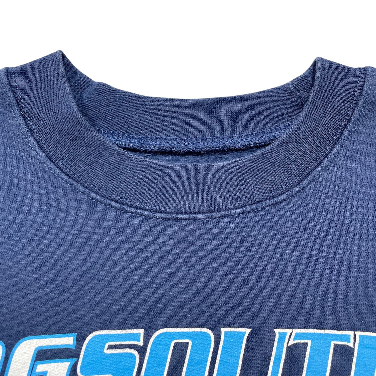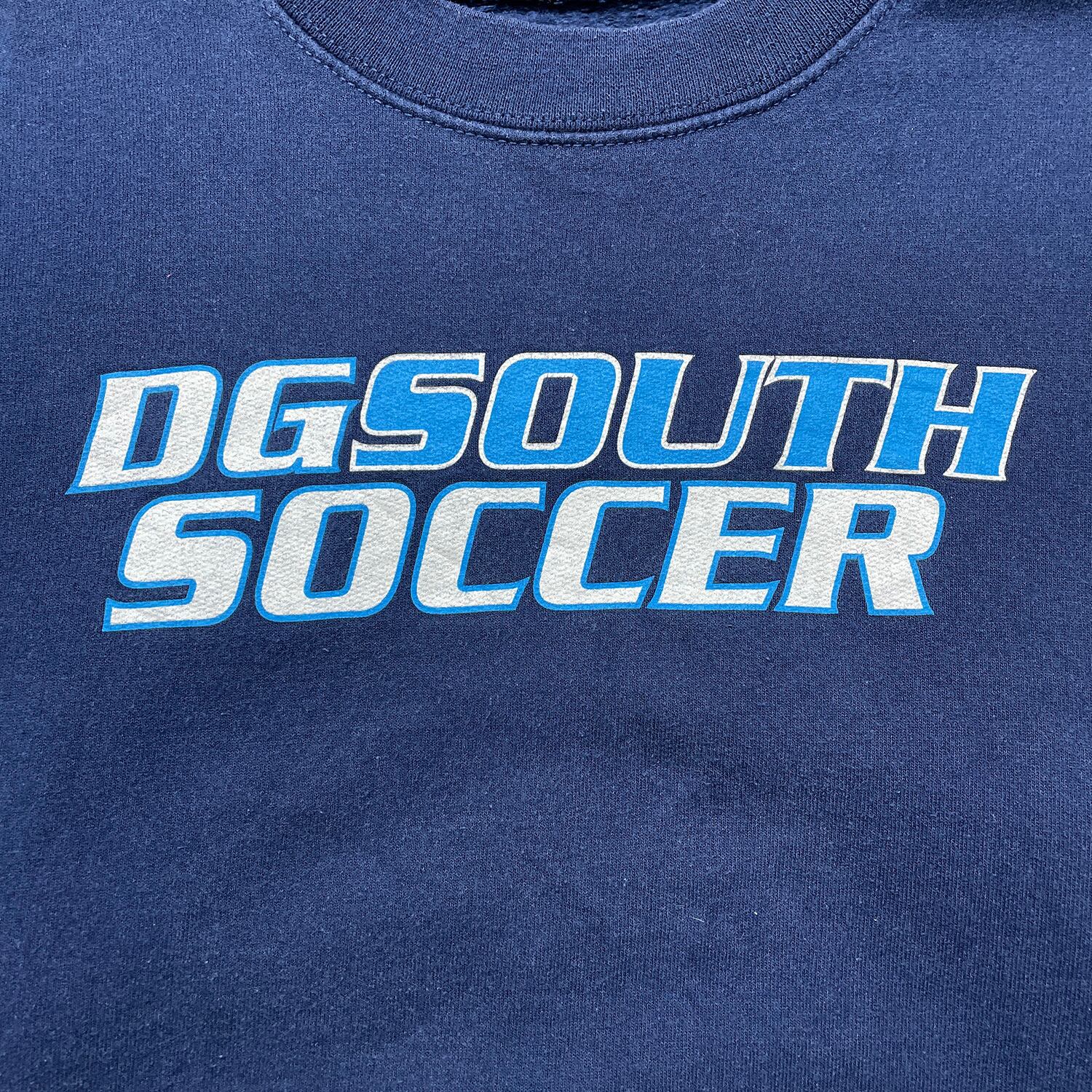 USA 古着 00S DGS SOUTH SOCCER サッカー クルーネック スウェット トレーナー プリント メンズL 相当 ネイビー BD3663