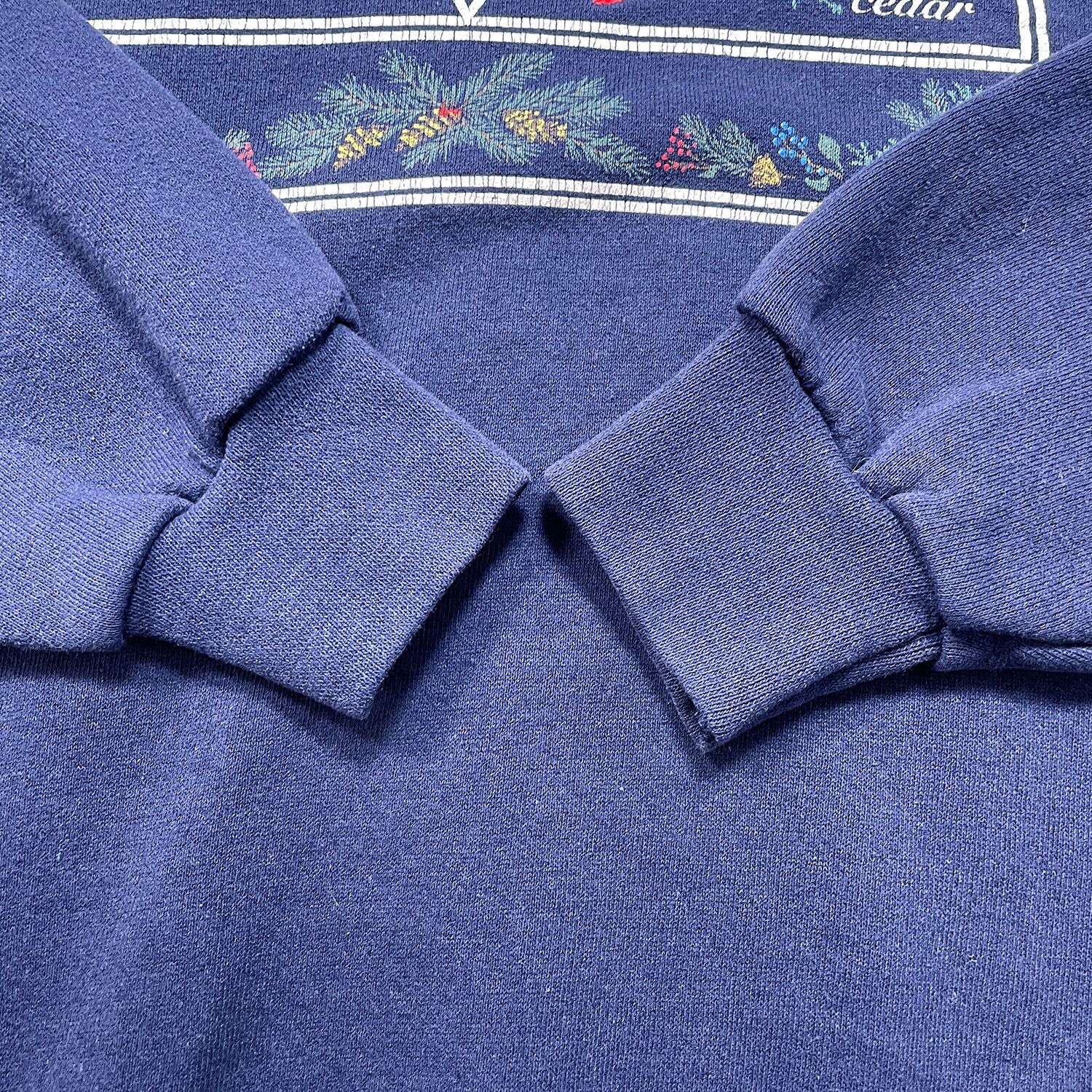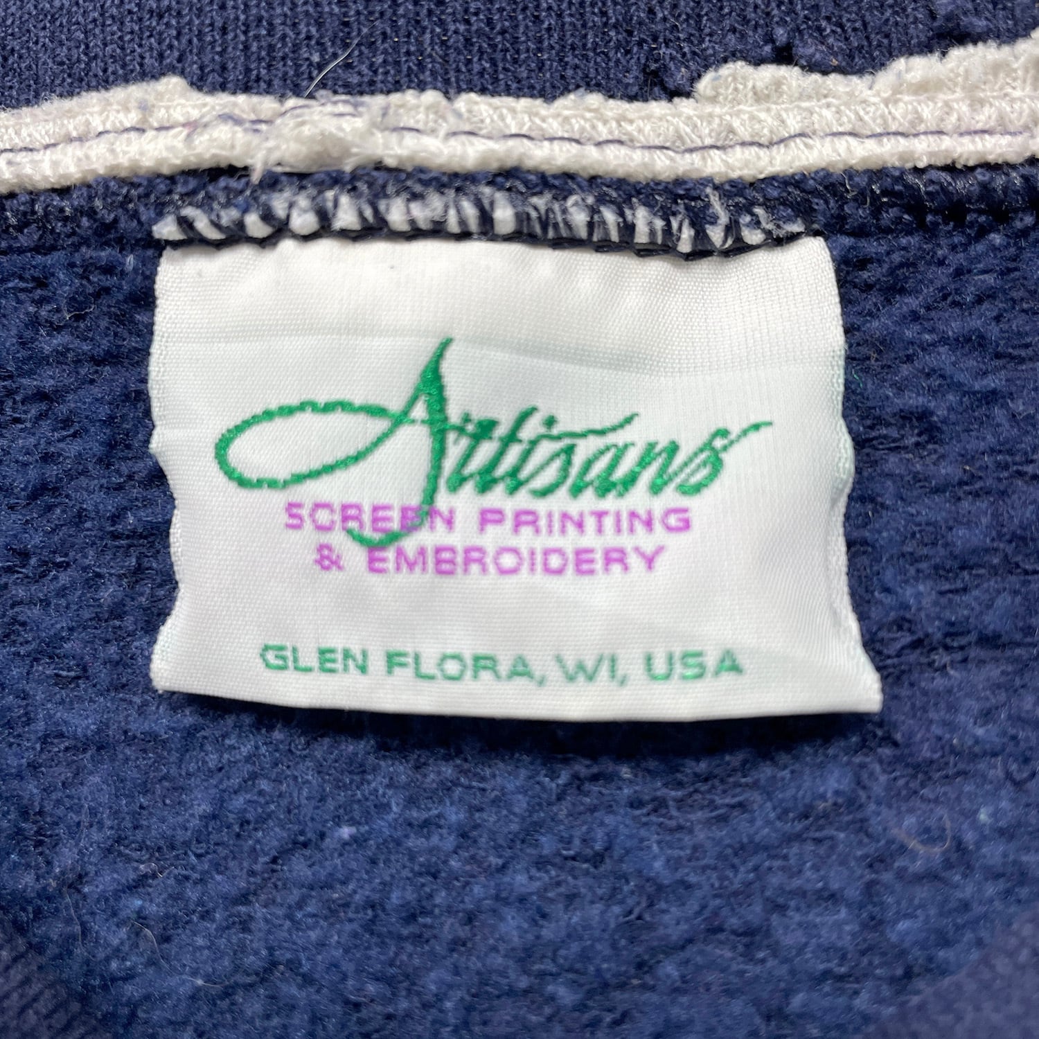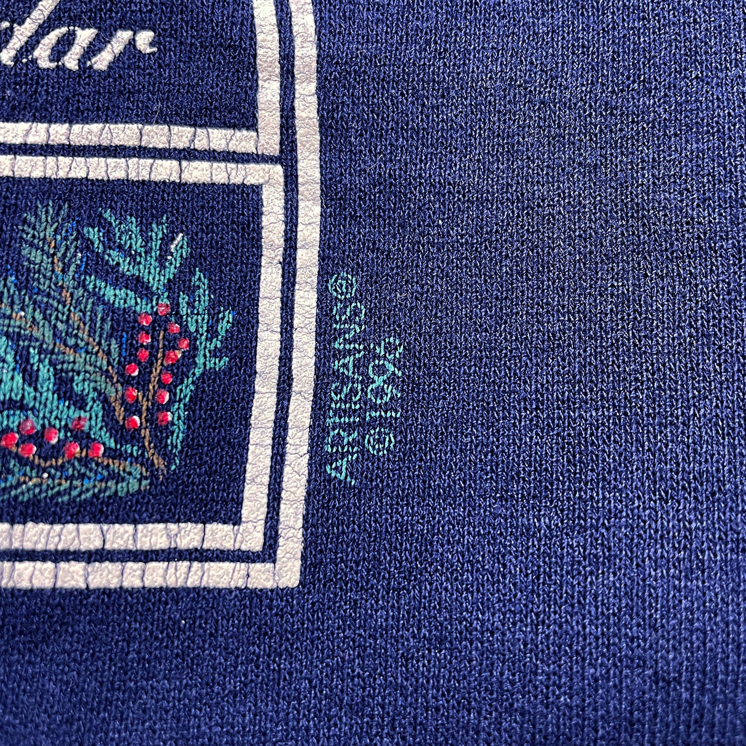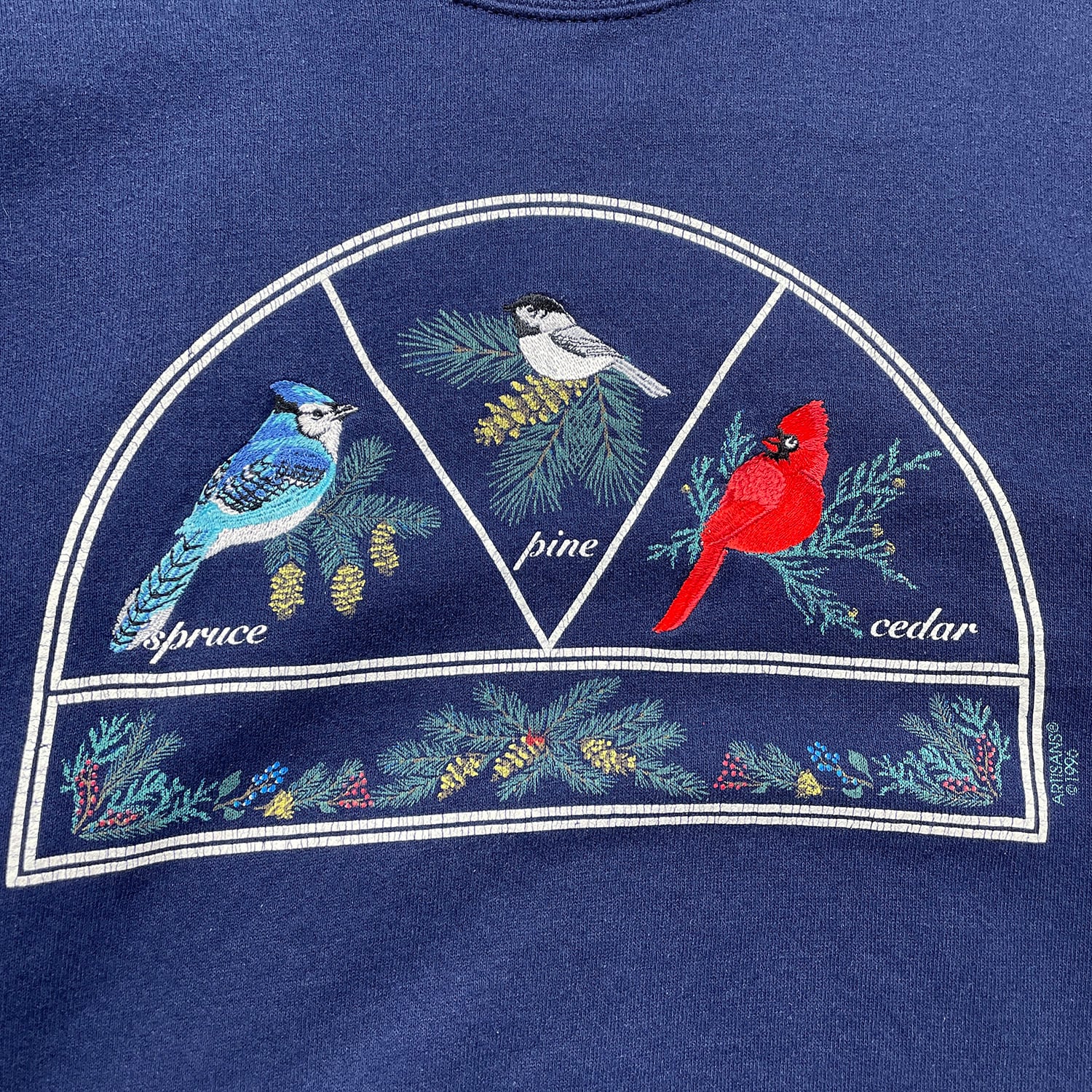 古着 USA製 90S Artisans アルティザン 鳥 アニマル ヴィンテージ クルーネック スウェット トレーナー プリント メンズXL ネイビー カーディナル BD3664