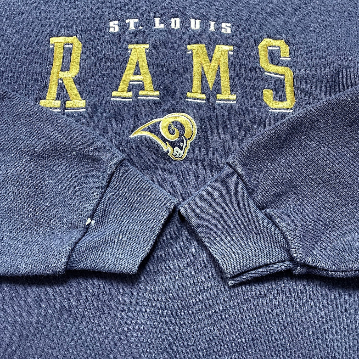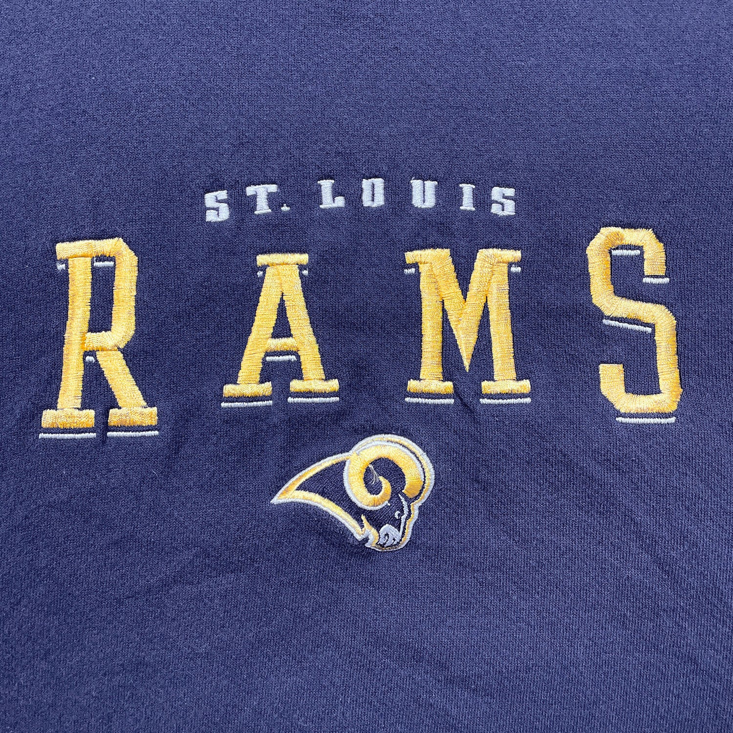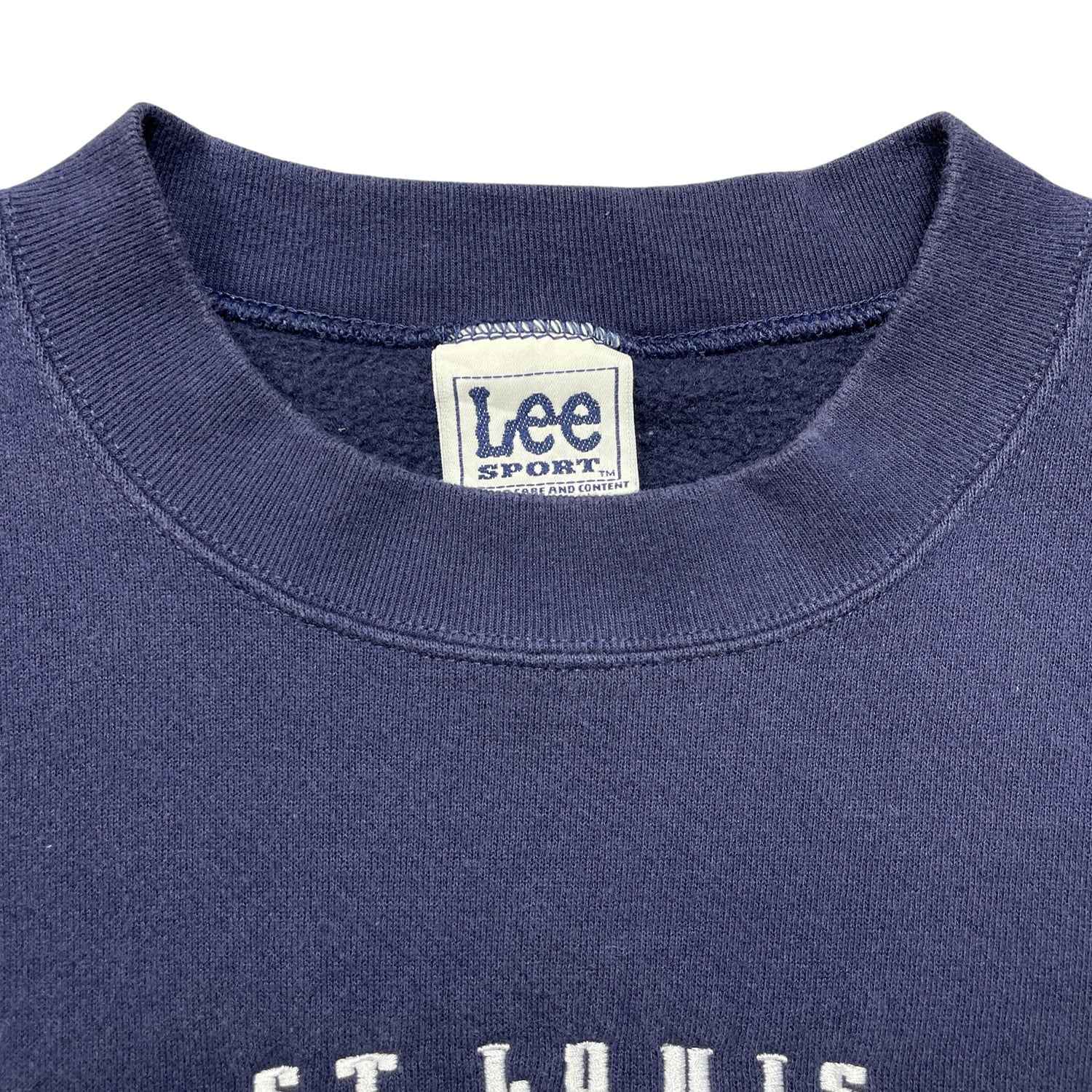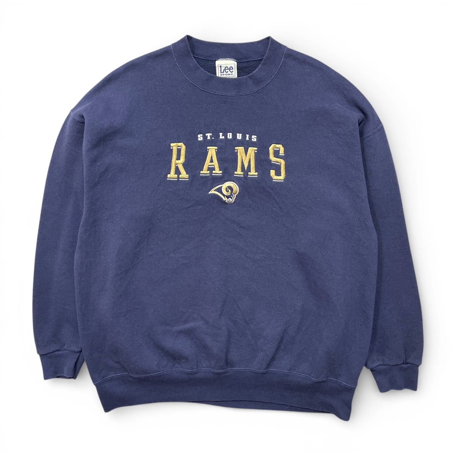USA 古着 メキシコ製 90S Lee SPORT NFL バドワイザー セントルイスラムズ クルーネック スウェット トレーナー 刺繍 メンズXL ネイビー BD3668