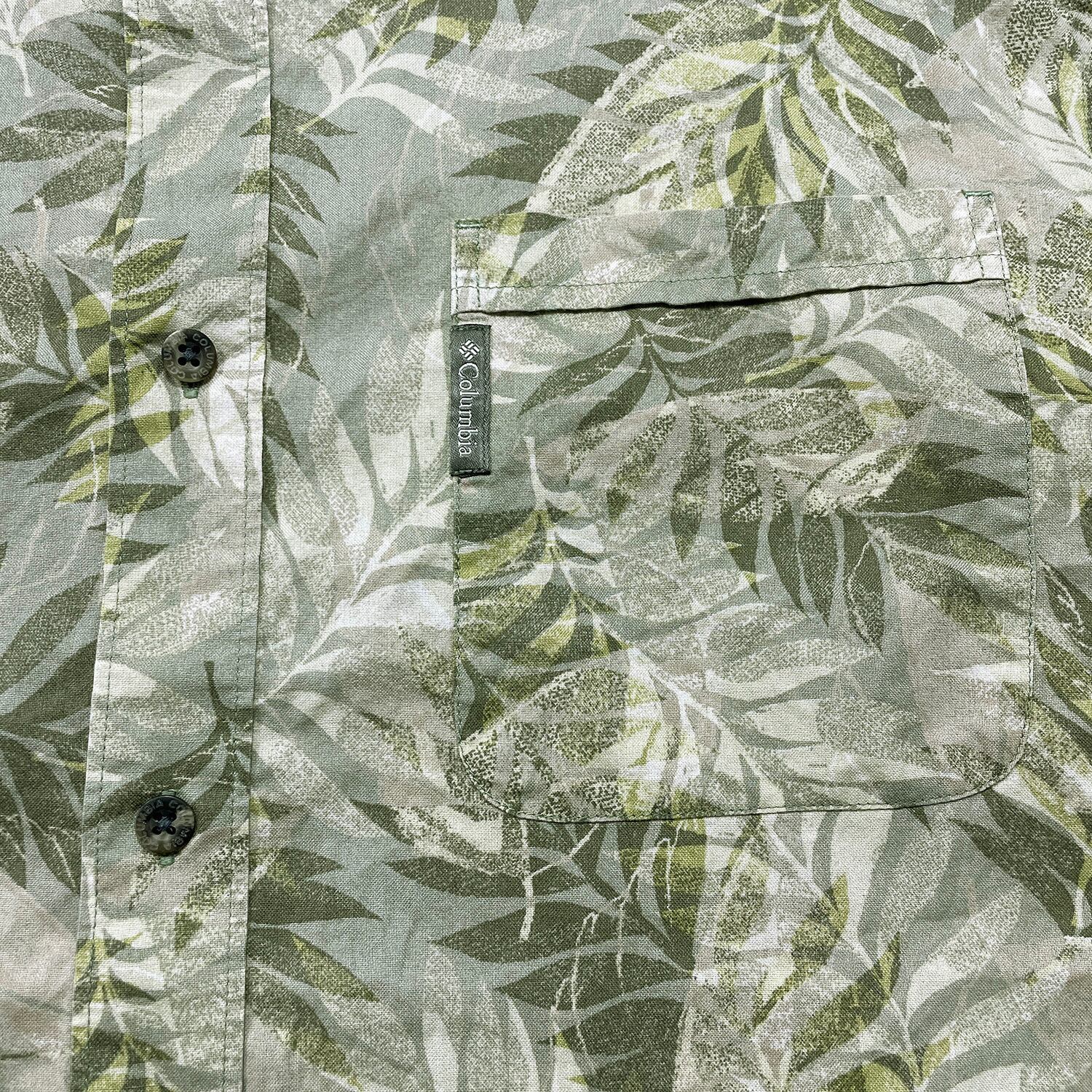 USA 古着 Columbia コロンビア アウトドア コットン ハワイアンシャツ アロハシャツ リーフ柄 メンズXL BF3863