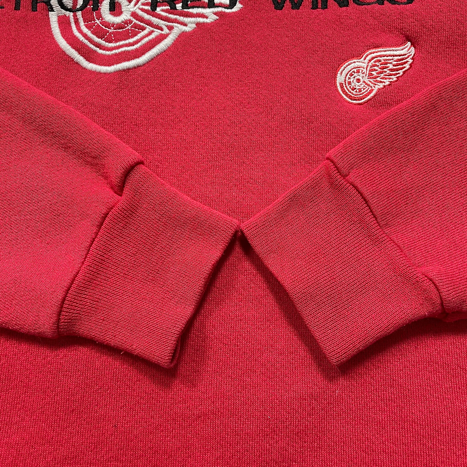 USA 古着 90S LOGO ATHLETIC レッドウィングス ヴィンテージ クルーネック スウェット トレーナー 刺繍 メンズL 相当 レッド NHL BD3608